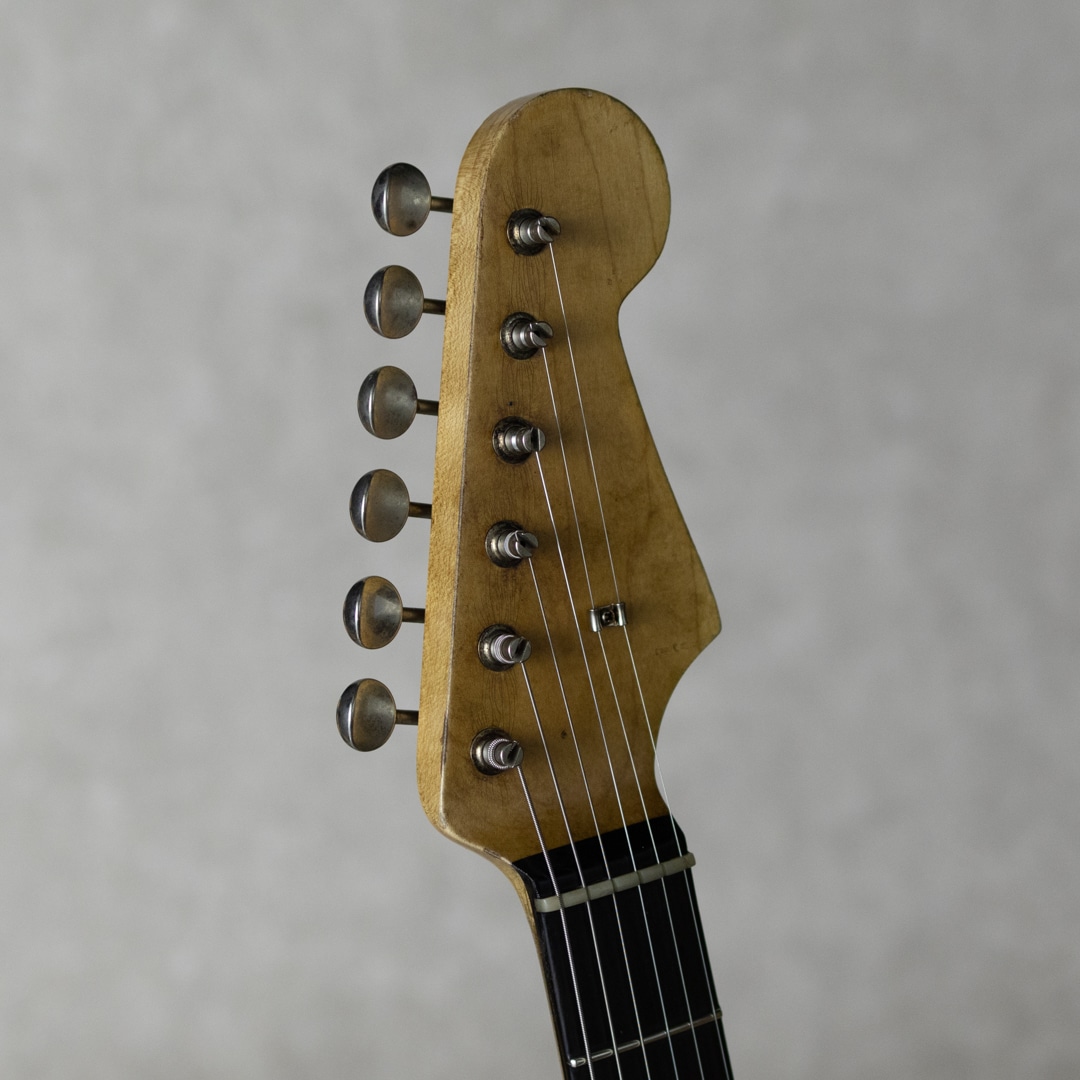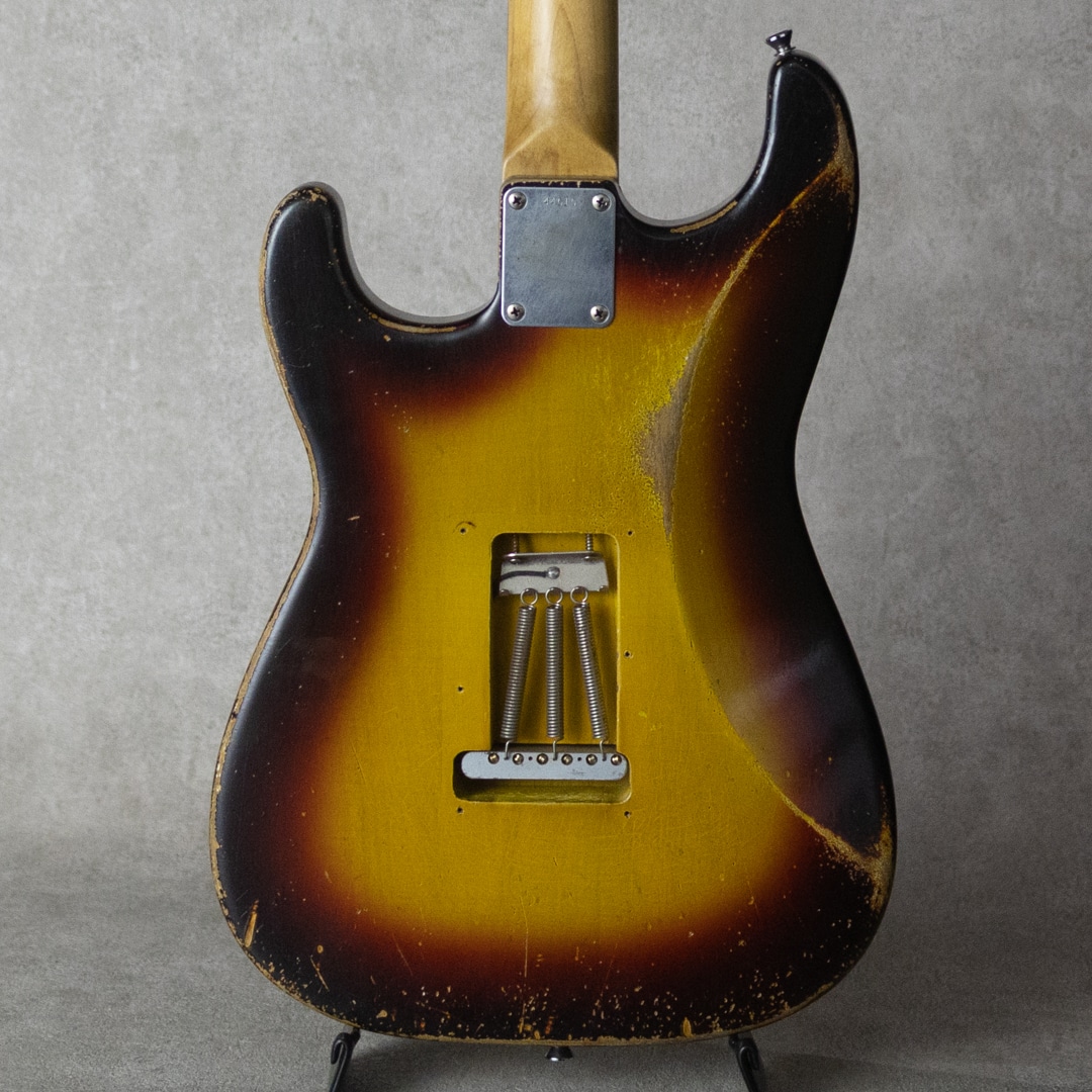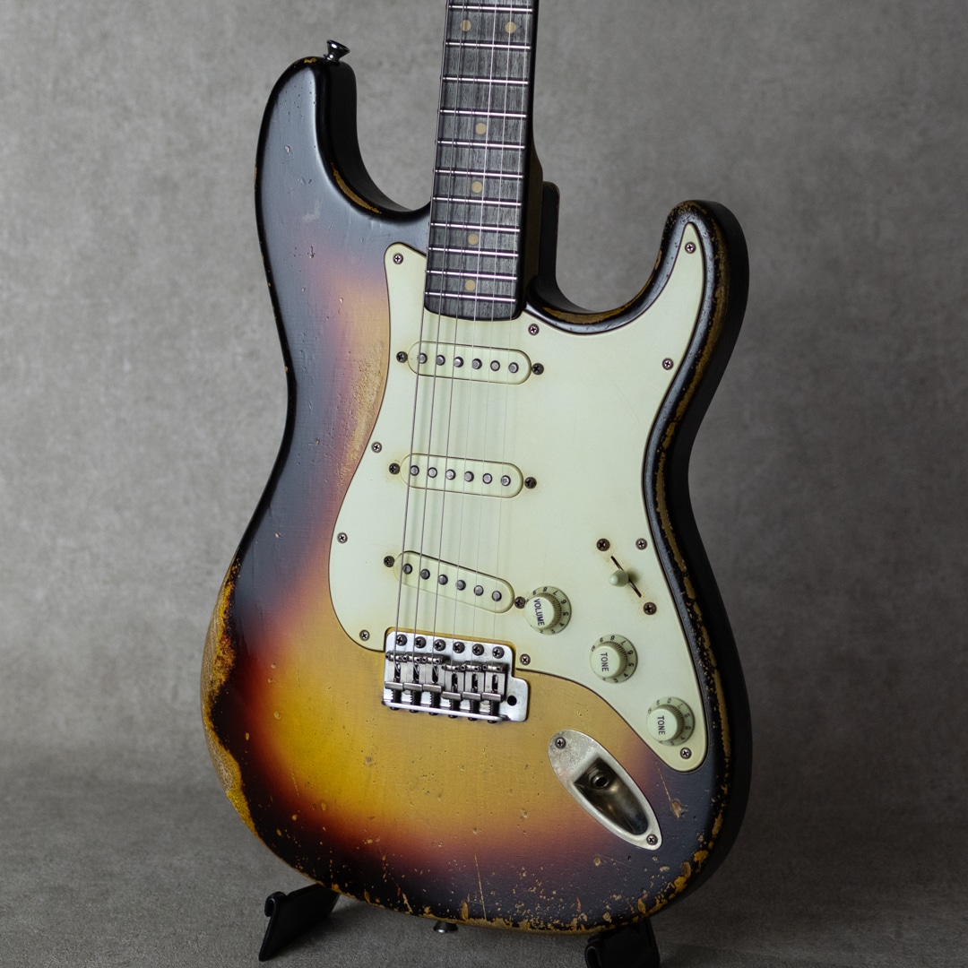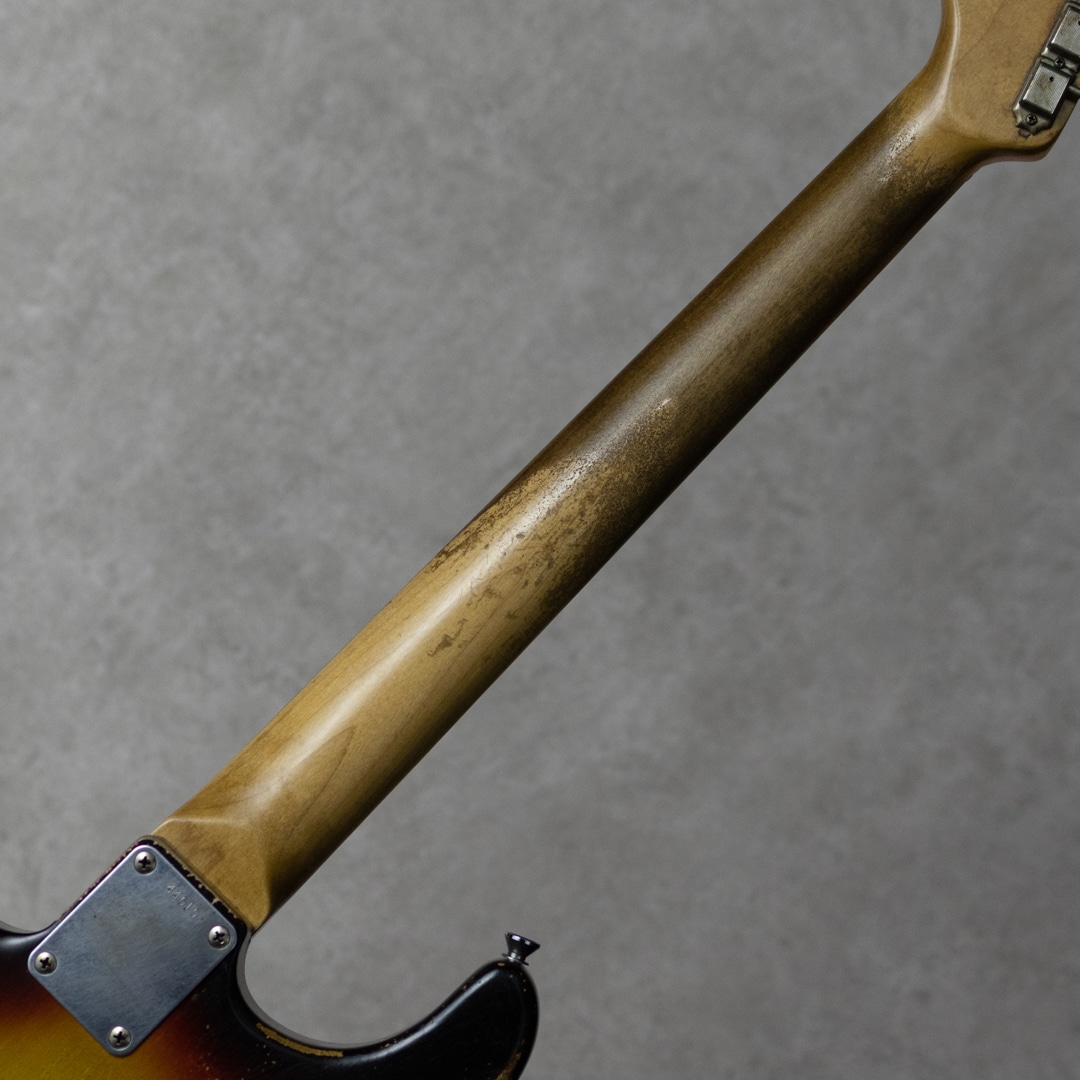 "THE BLACKGUARD BOOK"の著書でもあるNacho Banos氏による、究極のBlackguard Replicaブランド"Nacho Guitars”。年間の製作本数は非常に少なく日本国内への入荷数も限られており、カタログモデルといった概念は無く1本1本個性を宿したギターをワンオフで製作するようなスタイルが貫かれています。同じ年代・特徴のモデルであっても、それぞれが個性を持った外観・弾き心地・そしてサウンドが表現されております。本器は、”Early 60s Contour Body #44010 Heavy Aging Sunburst Medium C Neck”。オリジナル・ブラックガードを知り尽くしたNacho氏の経験値を元に製作される、圧巻の完成度を誇る 60’sレプリカの1本。スラブローズウッド指板、メイプルネック、アッシュボディのウッドスペック。オールドを知り尽くしたNacho氏ならではの雰囲気あるヘビーエイジド加工が施された3トーンサンバーストカラー。ミディアムCシェイプに仕上げられたネックは細すぎず薄すぎない握り心地の良いネックシェイプです。本物さながらの経年したハードウェア、褪色感を再現したエイジングカラーの3plyミントグリーンPGは、その作り込みを愛でるだけでも楽しめる仕上がり。9.5”ラジアス指板、ミディアムフレット、Early60’sスタイルトレモロブリッジ、スチールサドル、Early 60’sスタイルピックアップ。ピックアップセレクターワイヤリングは5wayで、ネックPUトーン、センターPU&ブリッジPUトーンです。ファットで野太いレスポンス、倍音感にあふれる甘いトーンから、ベルトーンの美しいハーフトーンまで、このスタイルに求められるサウンドを遺憾なく発揮してくれます。ストイックにブラックガードを愛したNacho氏ながら、指板ラジアスやピックアップワイヤリングなどはモダンで使いやすいセットをセレクトしており、より実戦向きで使えるビンテージレプリカに仕上げられています。オリジナルビンテージと見まごうほどの雰囲気と仕上がりの話題と人気を集めるスペイン発”Nacho Guitars”。オリジナルハードケース、ブリッジカバー、オリジナル・レザーバック、スペックシート、当機の画像データが入ったUSBとUSB用の木箱、レザーストラップ付属