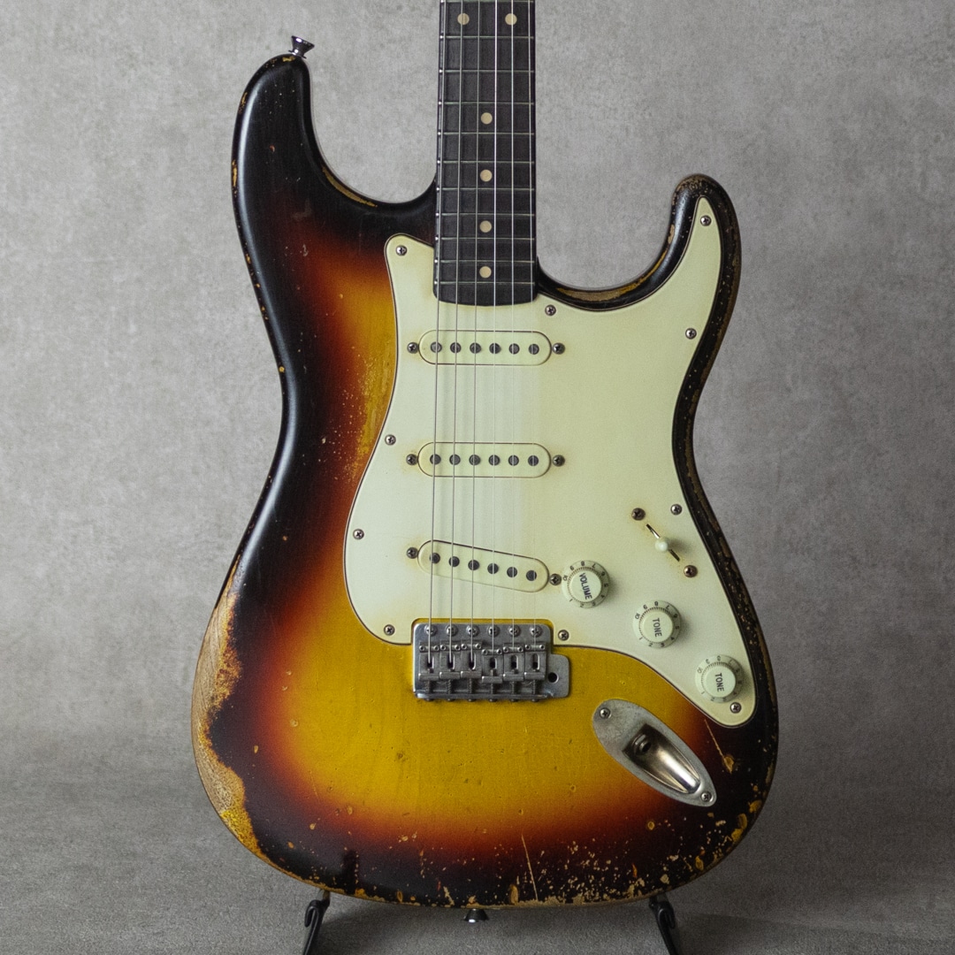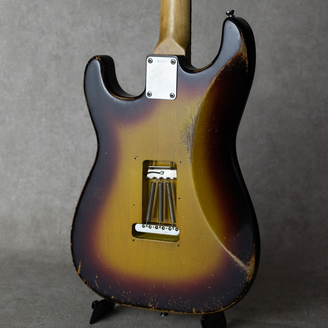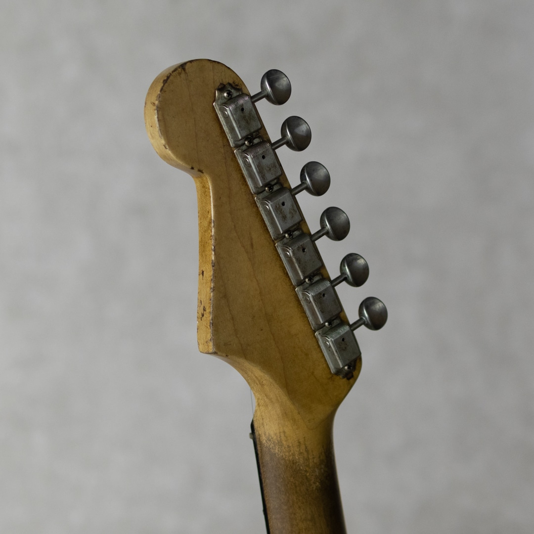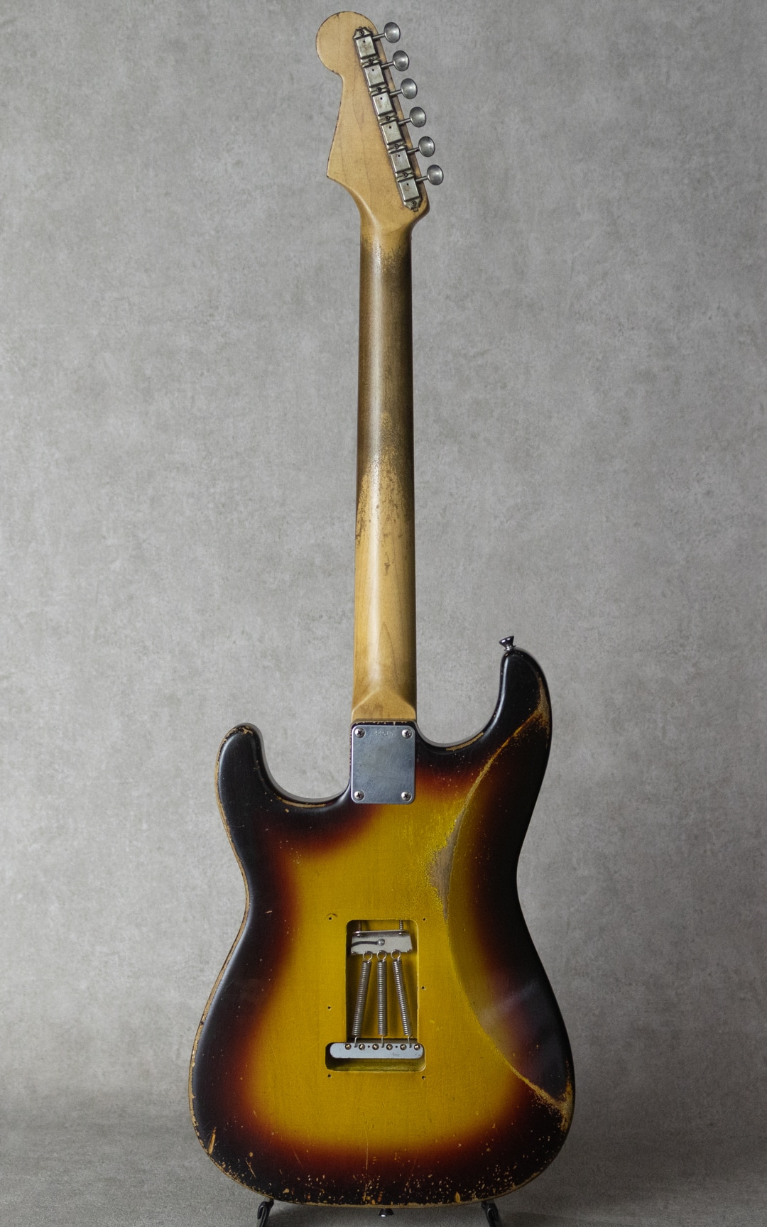 "THE BLACKGUARD BOOK"の著書でもあるNacho Banos氏による、究極のBlackguard Replicaブランド"Nacho Guitars”。年間の製作本数は非常に少なく日本国内への入荷数も限られており、カタログモデルといった概念は無く1本1本個性を宿したギターをワンオフで製作するようなスタイルが貫かれています。同じ年代・特徴のモデルであっても、それぞれが個性を持った外観・弾き心地・そしてサウンドが表現されております。本器は、”Early 60s Contour Body #44010 Heavy Aging Sunburst Medium C Neck”。オリジナル・ブラックガードを知り尽くしたNacho氏の経験値を元に製作される、圧巻の完成度を誇る 60’sレプリカの1本。スラブローズウッド指板、メイプルネック、アッシュボディのウッドスペック。オールドを知り尽くしたNacho氏ならではの雰囲気あるヘビーエイジド加工が施された3トーンサンバーストカラー。ミディアムCシェイプに仕上げられたネックは細すぎず薄すぎない握り心地の良いネックシェイプです。本物さながらの経年したハードウェア、褪色感を再現したエイジングカラーの3plyミントグリーンPGは、その作り込みを愛でるだけでも楽しめる仕上がり。9.5”ラジアス指板、ミディアムフレット、Early60’sスタイルトレモロブリッジ、スチールサドル、Early 60’sスタイルピックアップ。ピックアップセレクターワイヤリングは5wayで、ネックPUトーン、センターPU&ブリッジPUトーンです。ファットで野太いレスポンス、倍音感にあふれる甘いトーンから、ベルトーンの美しいハーフトーンまで、このスタイルに求められるサウンドを遺憾なく発揮してくれます。ストイックにブラックガードを愛したNacho氏ながら、指板ラジアスやピックアップワイヤリングなどはモダンで使いやすいセットをセレクトしており、より実戦向きで使えるビンテージレプリカに仕上げられています。オリジナルビンテージと見まごうほどの雰囲気と仕上がりの話題と人気を集めるスペイン発”Nacho Guitars”。オリジナルハードケース、ブリッジカバー、オリジナル・レザーバック、スペックシート、当機の画像データが入ったUSBとUSB用の木箱、レザーストラップ付属