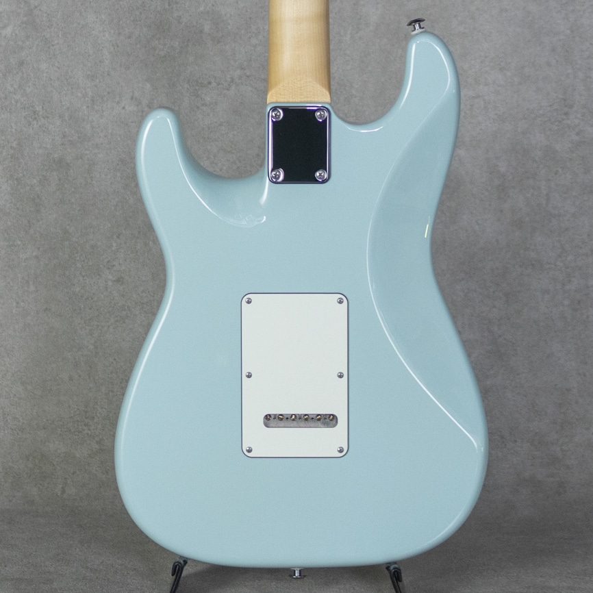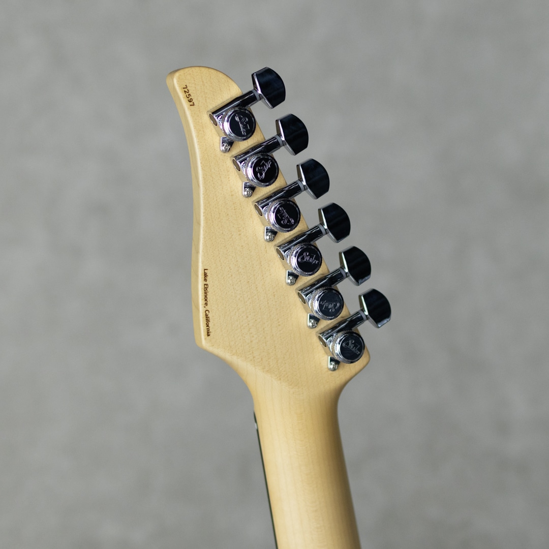 数多くのミュージシャンから支持を集め、多大なキャリアを持つJohn Suhr(ジョン・サー)。1997年より設立されたJS Technologies Inc/JSTにて、ギターはもちろん、アンプ、ペダル、ピックアップなど多岐にわたりプロデュースしています。職人の勘に頼ることを排し、テクノロジーやデータを駆使したアカデミックなアプローチを採用しながらも、常にプレイヤーズファーストの観点に立つことを忘れずに、プレイヤーの期待に応えることを目指した楽器作り。そう言った楽器製作哲学に基づき製作される楽器は、数多くのプレイヤーを魅了し続けます。本器は、”Classic S w/Rosewood Fingerboard SSS Sonic Blue”。現代に融け込む最新のビンテージフィールを持つように設計された、トラッドな外観に最新エレクトロニックテクノロジーを内包する最進化型モデル。ビンテージ/クラシックフィーリングとモダンパフォーマンスが組み合わさった"Classic S”モデルに、SSSレイアウトを採用した1本。アルダー2pcsボディ、柾目で目取りされたメイプルネックにインディアンローズウッド指板のウッドスペック。塗装には、シンスキン・ポリ塗装のポップでクールなソニックブルーカラーをボディに採用し、ネックは馴染みの良いサテン仕上げ塗装。ネックグリップは60年代 Cシェイプ/Vintage Standardで、若干の肉付きを感じながらも握り心地の良いネックシェイプです。パーチメントカラーの3plyピックガード&PUカバー&コントロールノブ、クレイドットの指板ポジションマーカー、”Suhr Locking”チューナー、”Gotoh 510”2点支持のトレモロユニットと、ヴィンテージストラトを踏襲しながらもモダンで正確な実用性を持たせた仕様。そして、ピックアップには60年代初頭の手巻きシングルコイルを独自に再現し自然なトップエンドのロールオフを体現した”V60LP”を3機マウント。また、Suhrギターで特徴的なハムノイズリダクションシステム“SSC II”を搭載しており、パッシブながらにノイズ低減をサポートしてくれます。艶やかで至極のクリア。素直なでファットなレスポンス。広いダイナミクスレンジを持つビンテージフィールを持つトーン。あらゆるシーンで活躍してくれる、実戦向けのClassic Sです。デラックスギグバッグが付属します。