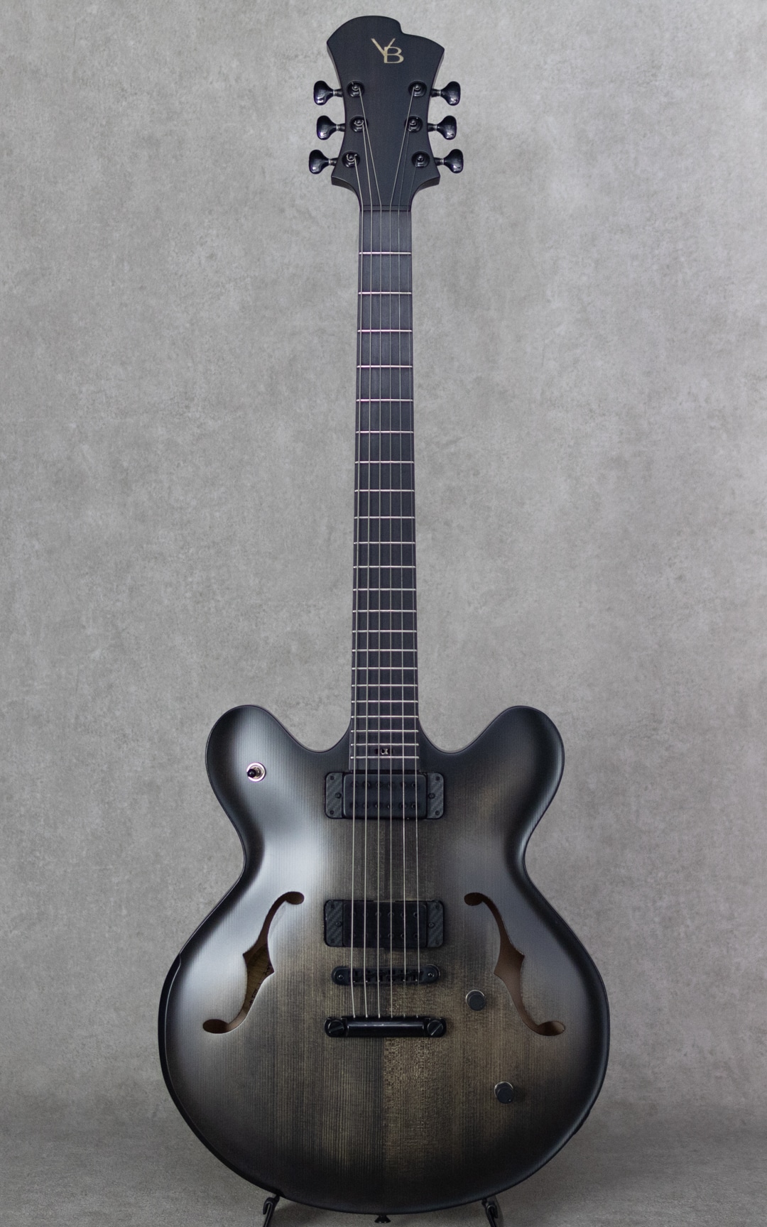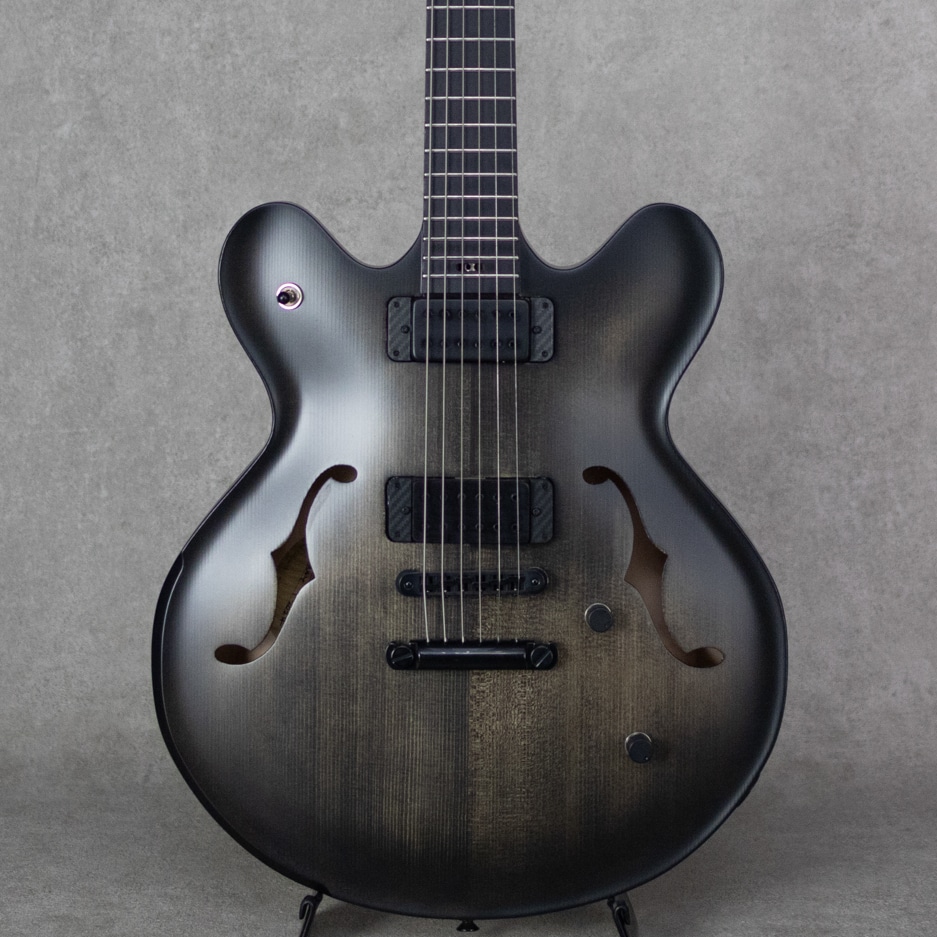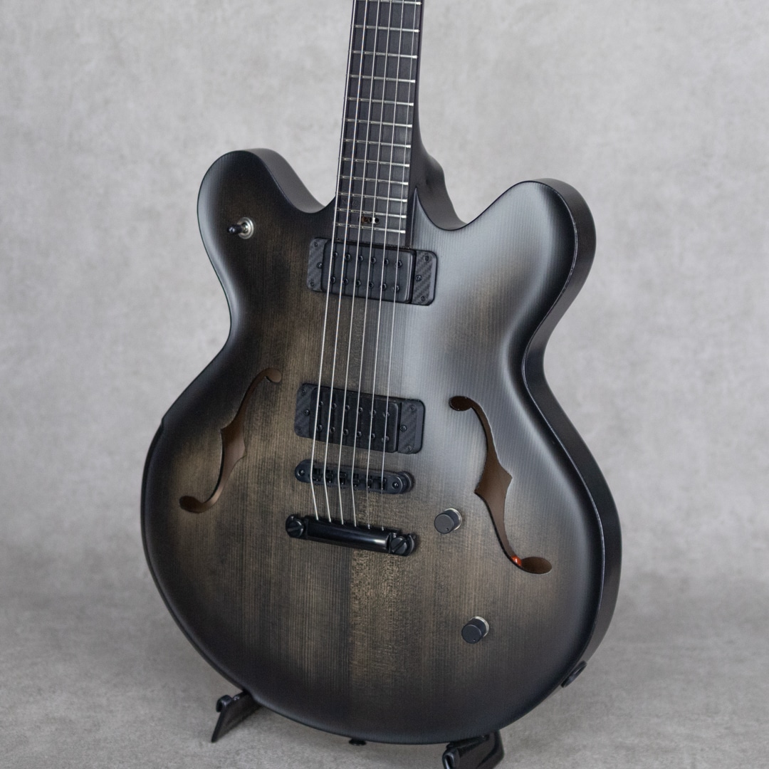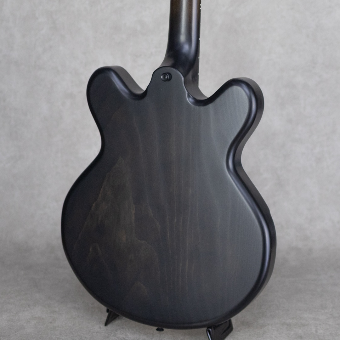 "Victor Baker(ヴィクター・ベイカー)"。自身も卓越したジャズギタリストであり、本拠地とするニューヨークにてアーチトップギター製作開始。ニューヨークの名門と呼ばれるジャズクラブを渡り歩き、名を挙げたベイカーがギター製作に着手したのは2000年。多くのギタリストに愛用されその品質は現場で証明されています。当機はチェンバーセミホロー構造を採用した15インチモデル。ES-335よりも1インチ小振りなボディサイズで、ボディサイドバックはくり抜き構造、リアPU下にはセンターブロックも無く、ホロー構造領域の多い豊かな生鳴りと軽量なウェイトを実現した設計。ヨーロピアン・スプルーストップ、サイド&バックにはシトカ・スプルース、エボニー指板にといったウッドスペックを採用。塗装はサテン仕上げ、重量は2.72kgと軽量でかつ心地よいフィット感を持った見事な仕上がりとなっております。ピックアップにはケント・アームストロングPickupを2機搭載。クリアで粘りのあるトーンで芯もしっかり太く、立ち上がりの音圧感とスピード感も非常に心地よいものがあります。バランス良く各弦が鳴る出音が素晴らしく、程よいエアー感を纏いながらタッチに対しても非常に自然に反応する上質の響きを聞かせてくれます。ストレスなくプレイできる持ち心地とプレイアビリティの高さも申し分無しのモデルです。Reunion Blues製Gig Caseが付属します。