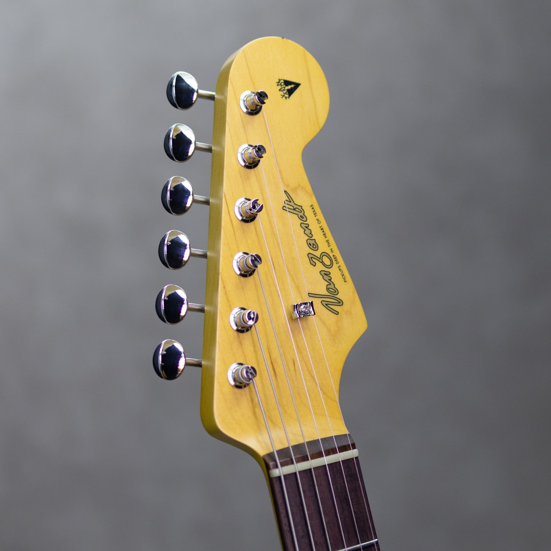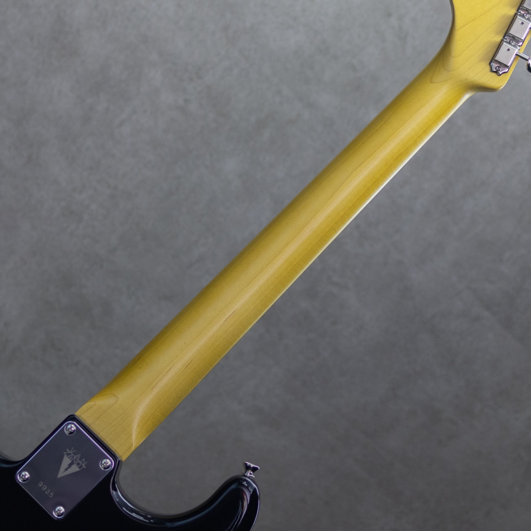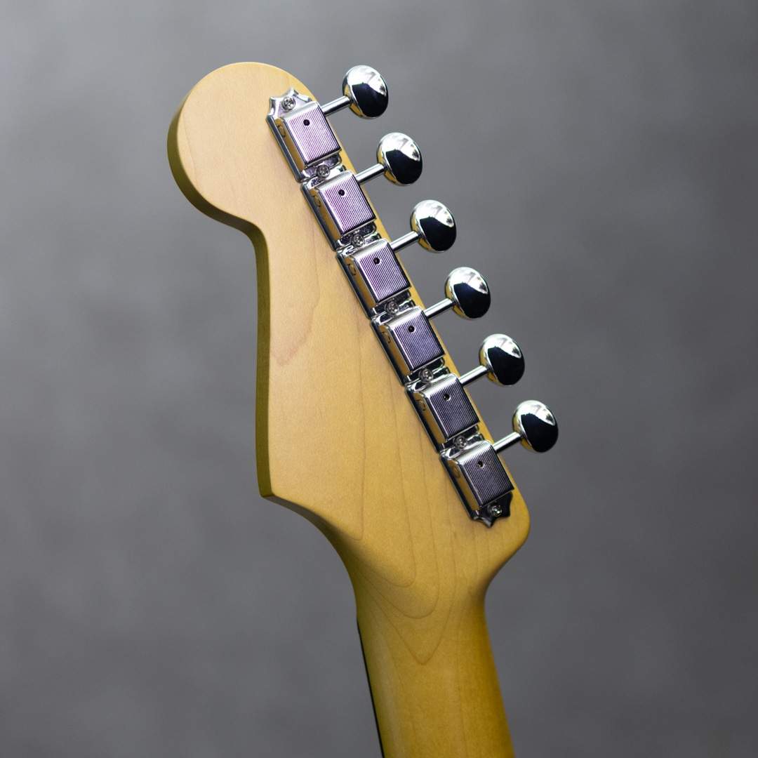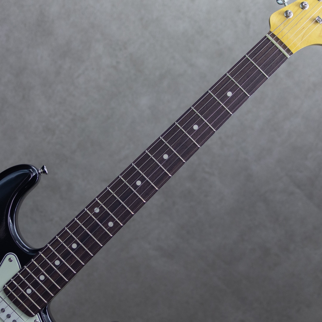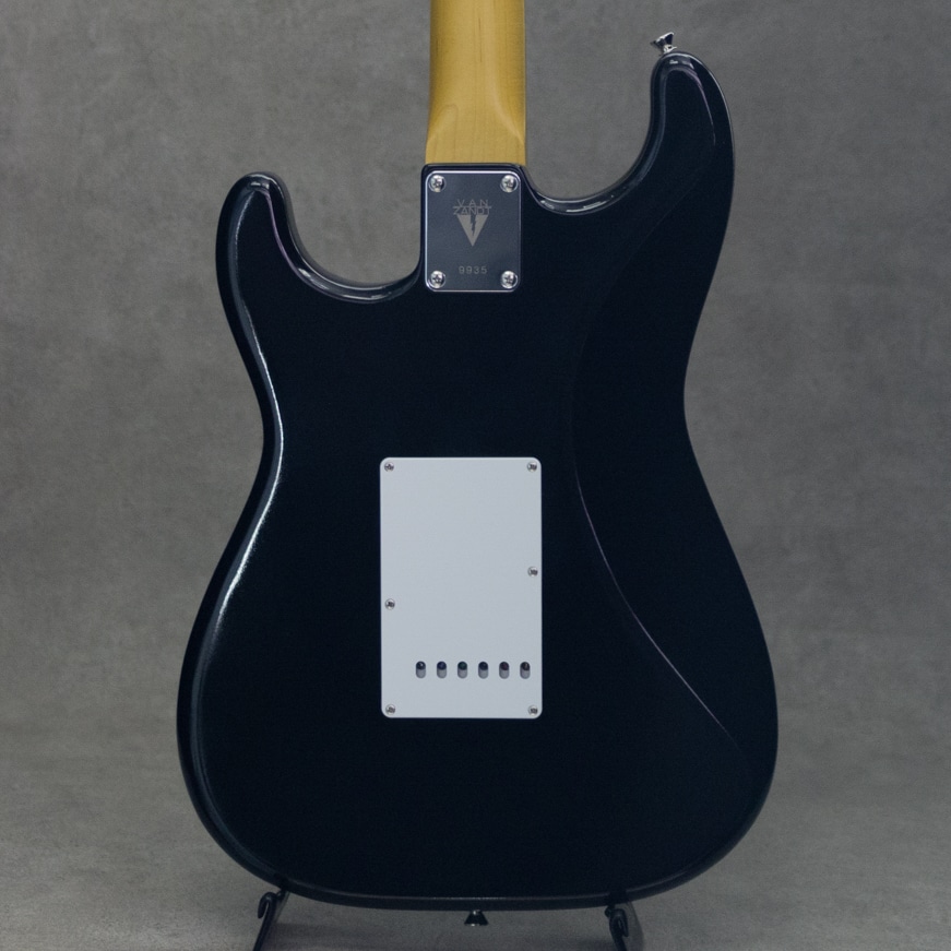 “Neo Vintage”を感じさせる”Vanzandt”。数多くのミュージシャンから愛されたテキサス生まれの”Van Zandt”ピックアップを搭載し、国産の確かな技術で作り上げられるギターは、その価格以上のクオリティを感じずにはいられない実力派ギター。本器は60年代モデルを踏襲した”STV-R2 Black”。ピックアップに"Van Zandt” TrueVintageを搭載したショップセミオーダーモデル。アルダー2pcsボディ、こだわりの板目取りメイプルネックにインディアンローズウッドスラブ指板のウッドスペックといった王道スペック。ネックグリップは22フレット仕様の60 Style Oval Cシェイプで、厚すぎず薄すぎない弾き心地の良いネックシェイプ。通常モデルのピックアップは”Van Zandt”Bluesx3が搭載されておりますが、本器では”TrueVintage"×3のセットを搭載。トーンコンデンサーにはヴァンザントオリジナルレプリカコンデンサーを使用。”TrueVintage"ピックアップによるクリアで乾いた響きは、より奥行きのあるベルトーンを思わせるレンジの広い響きが魅力。繊細で表現力のあるフロントやハーフトーンでのファットでメロウなトーンから、タイトなボトムで芯の明瞭さが心地よい枯れ感のリアサウンドなど、手元のニュアンスを遺憾なく出力してお楽しみいただける1本です。