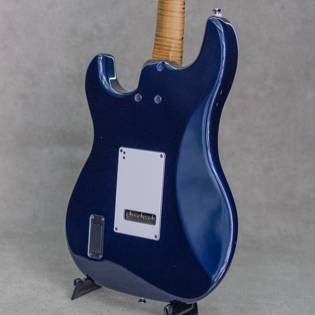 愛知県弥富市の工房にてオールハンドメイドされるTruth。先鋭的な設計思想を積極的に取り入れたスペックによって、"今までにない"魅力溢れるプロダクトを生み続けています。本器TST-201はアルダー2pcボディ、5Aローステッドフレイムメイプルネック・指板、コンパウンドラジアス、ステンレスフレット、ニトロセルロースラッカー仕上げといったマテリアル構成。ハイグレードな材と丁寧なモノづくりが感じられる仕上がりによって、十二分な満足感で楽しませてくれる完成度。ローステッドネック+ステンレスフレットによる明瞭で発音の美しい出力ながら、ボディの鳴感も気持ちよく、オーガニックな輪郭の柔らかさを持った楽器としての品質の高さをしっかりと担保しています。しかし本器をより決定的にキャラクターづけている仕様こそが、独自設計のピックアップとアクティブサーキット。特徴的なピックアップはシングルコイル構造ながら、3重構造によってコイルの巻き数を選択できる設計。コントロールの3段階ミニトグルスイッチ×3がそれぞれ3つのピックアップの巻き数選択になっており、ミニスイッチ真ん中がバランスの取れたデフォルトポジション。より繊細なニュアンスでキレの良い枯れ感が楽しめるローワウンド側と、音圧感を増してファットな出力が便利なオーバーワウンド側、が追加されているイメージ。それぞれのピックアップポジションのキャラクターをしっかりと残しながらも、もっとブライトな分離感が欲しい、もう一つパワー感があれば...などというタイミングに抜群の対応力をもって答えてくれるスペックです。加えてそれらの幅広いサウンドメイクのすべてのポジションを確然たるレンジ感・ローノイズ・高い解像度で出力し、シームレスな操作性に仕上げている"Audio Transfer Circuit"。こちらは9V電池によって駆動するアクティブサーキットですが、トーンのプッシュプルノブを引くことでオフにもでき、敢えてよりトラッドな質感のパッシブトーンという選択肢として、または万が一の電池切れの際にも演奏を続けることができる仕様として使用できます。まさに"ネオモダニック"な仕様が高い実用性で具現化した完成度抜群の一本。ぜひご確認ください。