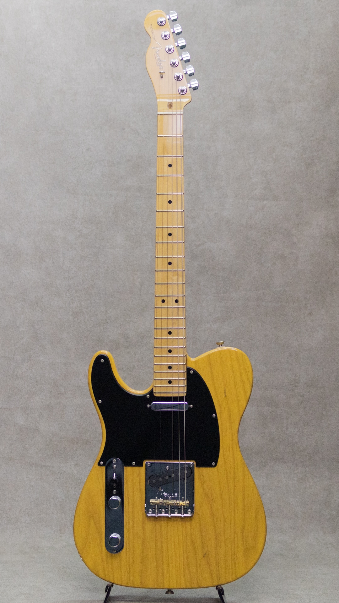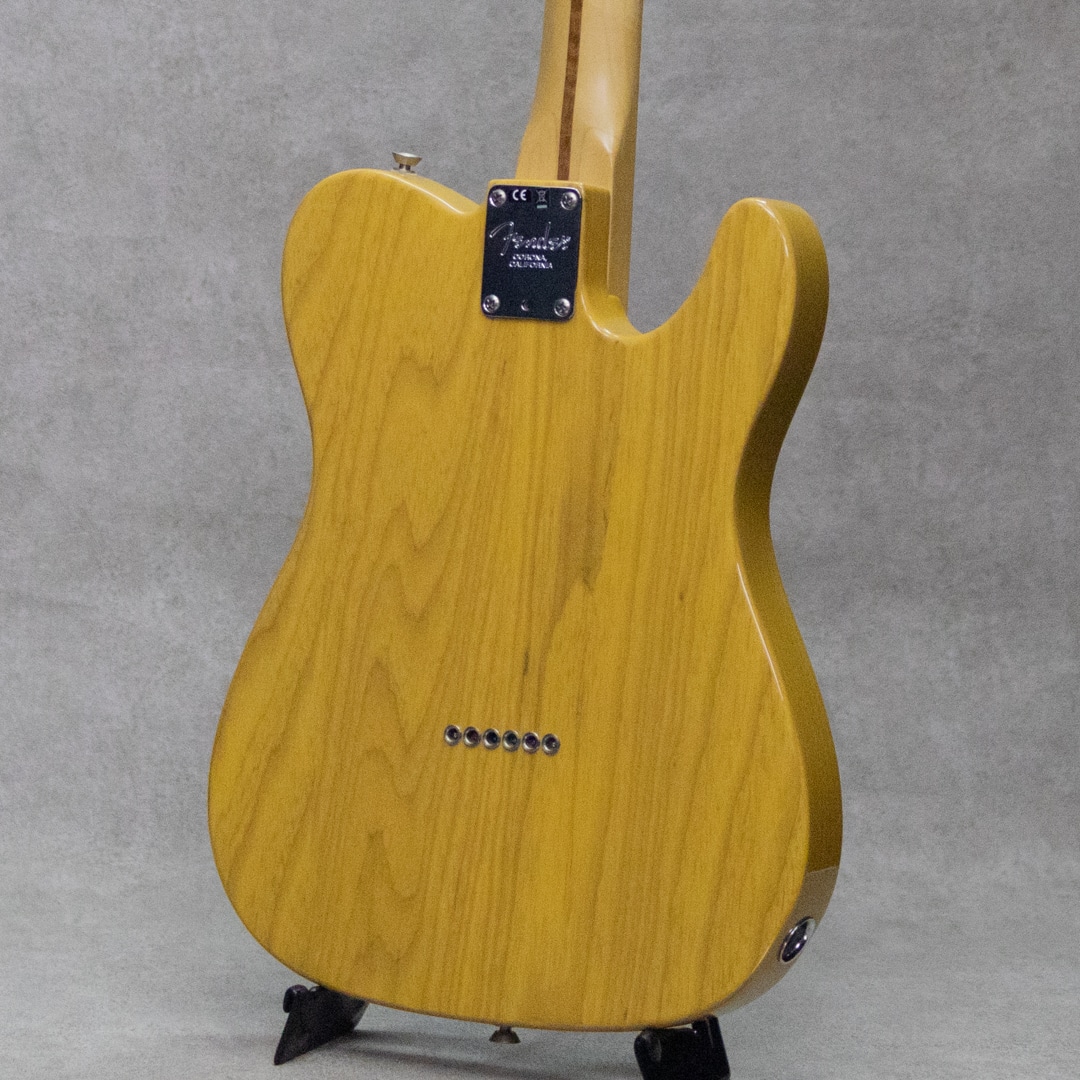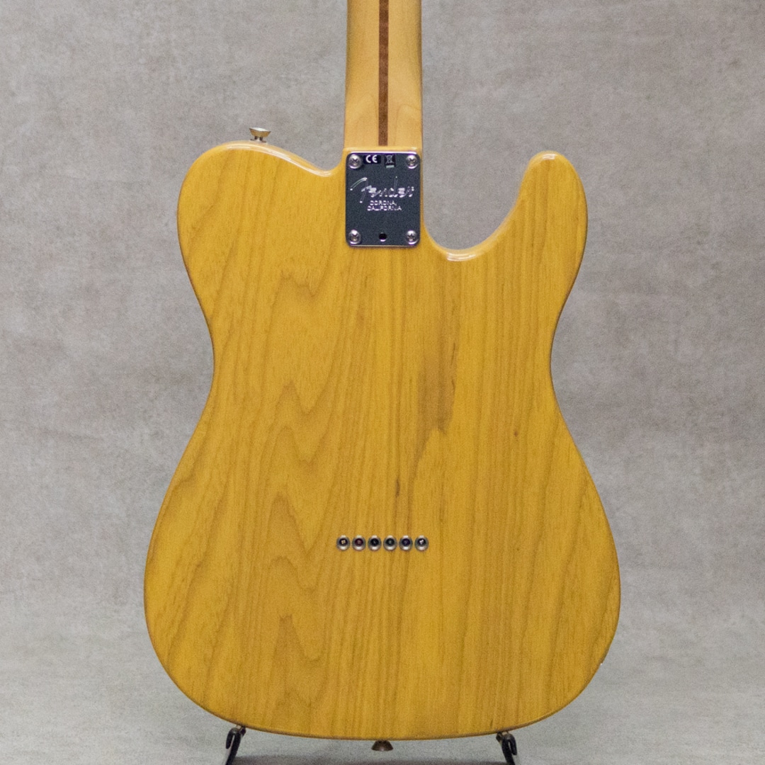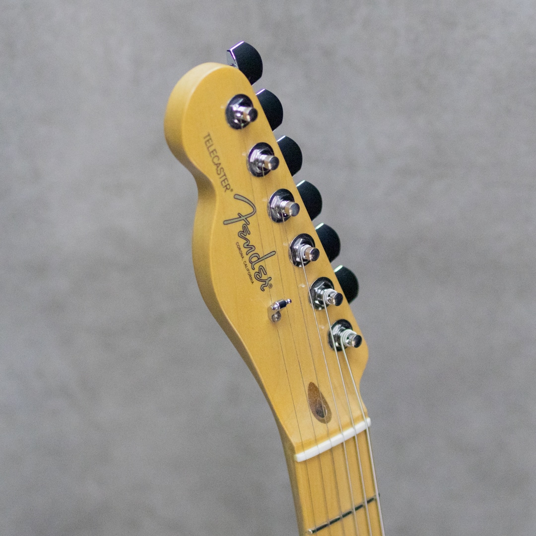 2017年登場の"American Professional"シリーズは、80年代より続くUSA製Fenderのフラッグシップライン"American Standard"の系譜を引継ぎ、更なる高みを目指し登場。新開発のV-Modピックアップ搭載、Deep "C"ネックシェイプ、ナロウトールフレット、アッシュボディ、コンペンセイテッドブラスブリッジ、トレブルブリードサーキット搭載。2020年からは現行モデル"American Professional・"が登場しておりますが、"アメプロ・"ではボディ材がアッシュからアルダーへと変更となっている為、特にこのバタースコッチカラーのイメージにマッチしたアッシュのキャラクターは、サウンド的にも杢の映えるルックス的にも、本器、旧モデル"アメプロ”を選ぶ大きな要素と言えるでしょう。Fenderピックアップ開発の雄、Tim Shawによって開発されたV-Modピックアップは、各ポジションのみにならず、一つのピックアップの中でも複数種類のマグネットを採用し、より綿密に計算された完成度の高い仕上がりを楽しませてくれます。テレキャスター用シングルコイルでは6?4弦にアルニコ・、3?1弦にはアルニコ・を採用。伝統的なテレキャスターのクリアでクリスピーな明瞭さ、歯切れの良いキャラクターをしっかりと持ちながらもリードプレイでもしっかりと抜けるミッドの甘さ、ふくよかな倍音を伴った太い単音とがうまく共存。ヴィンテージアプローチを残しつつ高出力化をして幅広い対応力、より普遍的なスタンダードとしてのクオリティを感じさせる仕上がりです。こちら細かな拭き傷、ハードウェアの僅かなくすみ等はあるものの、顕著な使用感は感じさせ際美品中古品。ロッドの調整を含めネックのコンディションもとても良好。中古市場でも珍しいレフトハンド、お見逃しなく。オリジナルハードケースが付属。