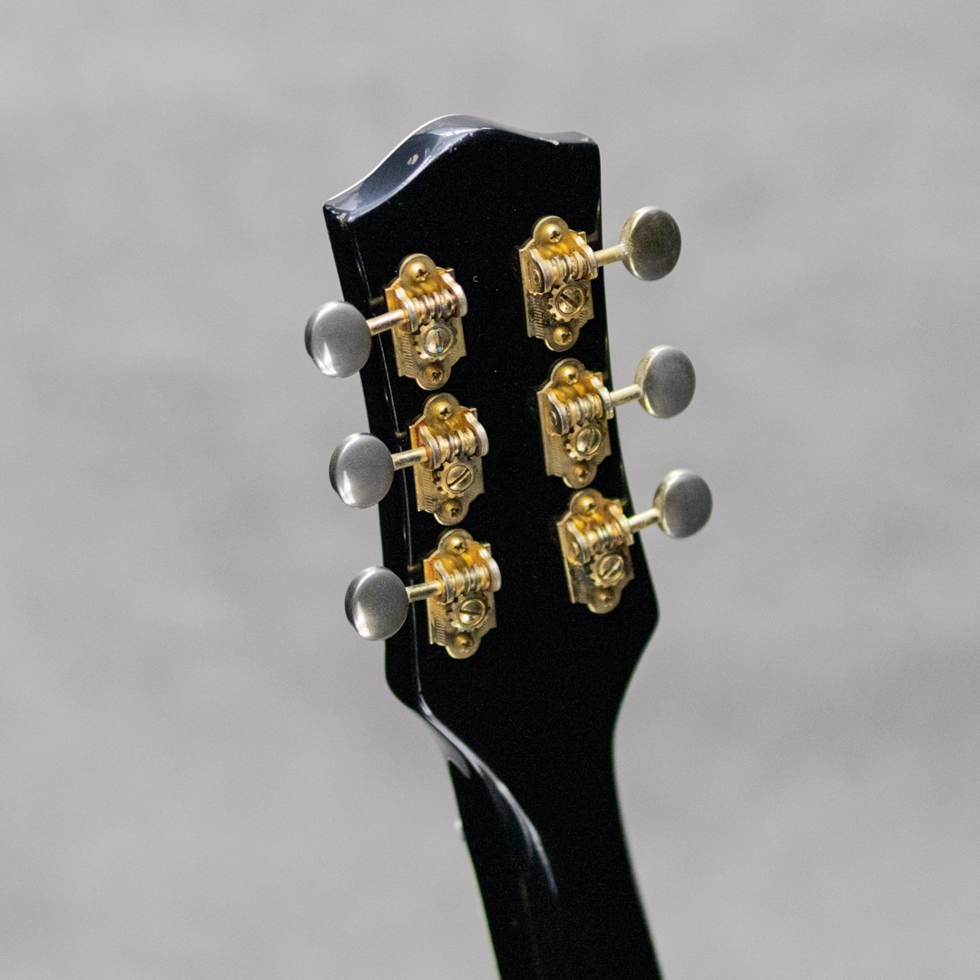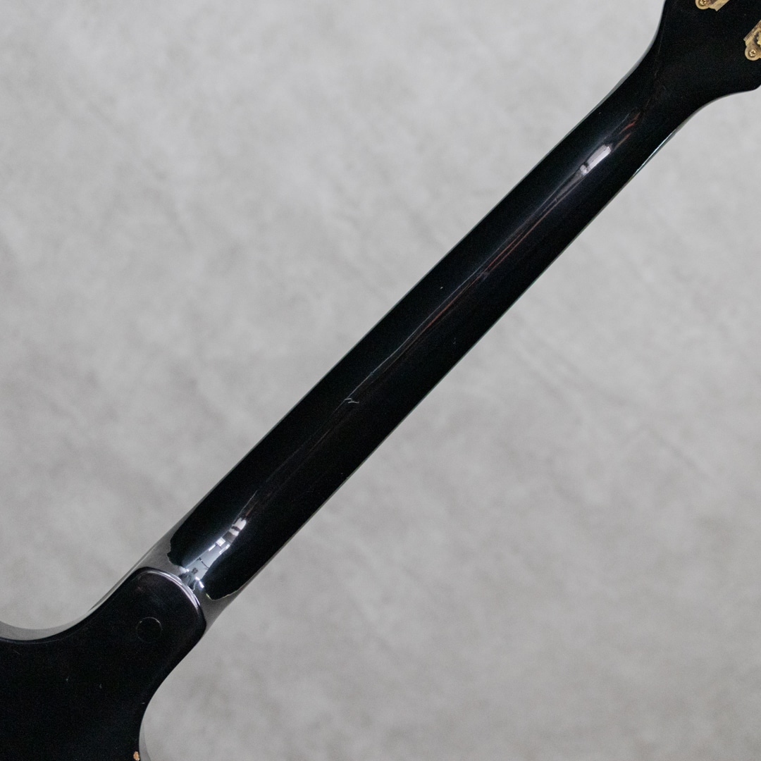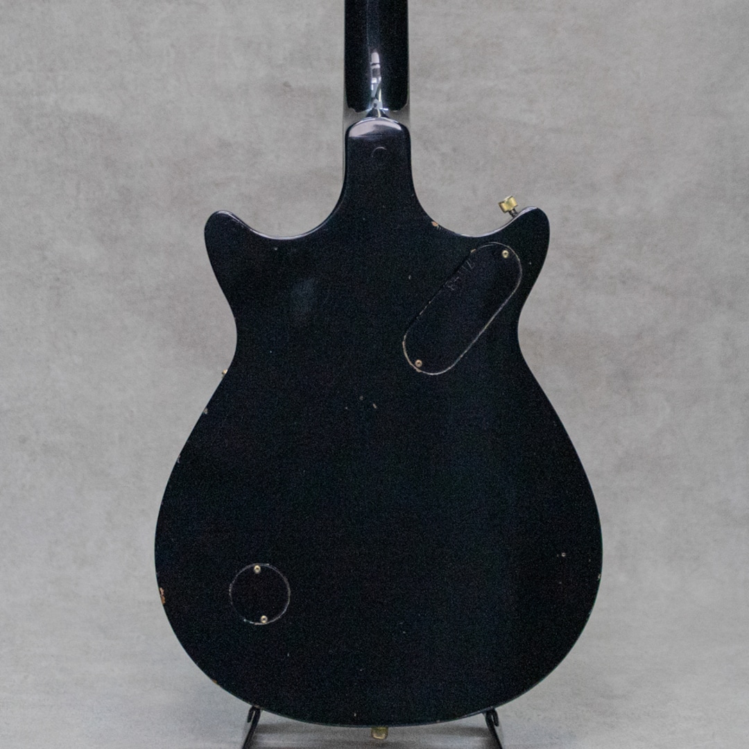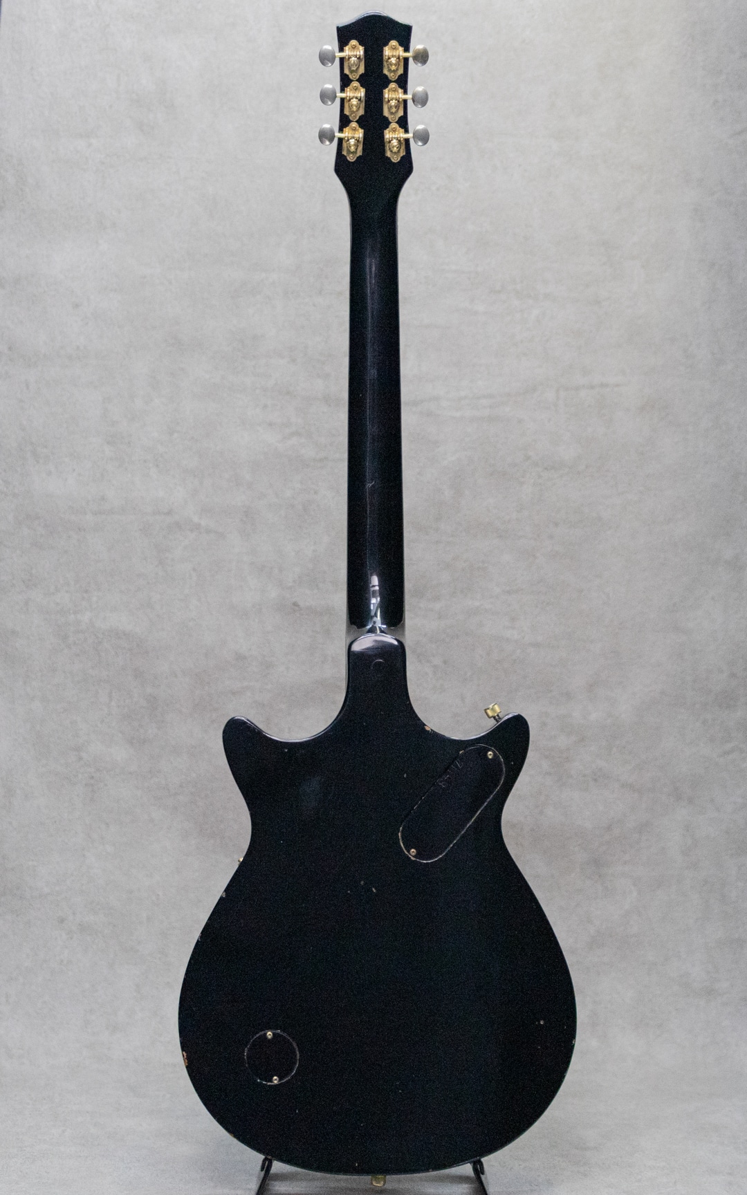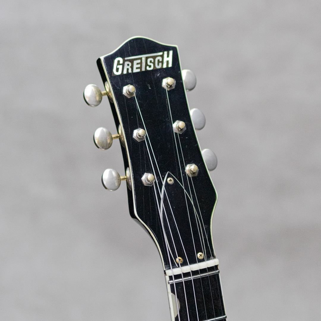 50年代、60年代のGretschエレクトリックモデルを代表する”Jet”シリーズ。Gibson "Les Paul Model"に対抗するかたちで登場し、1953年シングルカットスタイルにてブラックトップの”6128 Duo-Jet”を発売。54年にはスパークルトップの”6129 Silver Jet"、そして55年にはオリエンタルレッドカラーの”6131 Jet Firebird”の登場へと発展していきます。その後1958年にはDeArmondのシングルコイルピックアップからハムバッキングの"Filter'tron"を採用、1961年ダブルカットスタイルへとデザイン変更。完全にソリッド構造の製品開発に舵を切ったGibsonに対し、”Jet"シリーズでは他モデルより中空部を減らすデザインながらに楽器然とした構造に拘りを持ち続けたスペックは、搭載ハードウェアとも相まってグレッチ特有の存在感と魅力を醸成してゆくこととなります。本器はダブルカットスタイルにトレモロを搭載した"6131 Jet Firebird”。1964年製Vintage品。パッと目を惹く赤いボディにゴールドパーツ、独創的な配置された各コントロール類など抜群に存在感を放つルックスは、まさにGretschらしさを助長させ存分に楽しませてくれるモデルです。ピックアップにはGretsch”Filter'tron”x2を搭載。PUでよく使われるアルニコマグネットではなくフェライトマグネットを使用したこのPUは、より高音域のクリアで歯切れの良い出力が特徴的で、ホロウ構造を持ったボディの響きとのマッチングにより迫力と厚みのあるグッドサウンドを紡ぎ出します。いくらかの小傷や若干の打痕は見られますが、大きく損ねるダメージはなく良好な本器。ネックの状態も良好で、近年にリフレットされておりプレイコンディションも良くまだまだ安心してお楽しみいただける1本。ダブルカットスタイルにバーンズトレモロが目を惹く1本。是非お手元でお楽しみください。オリジナルハードケース付属