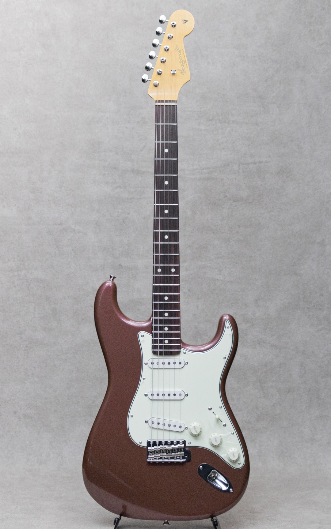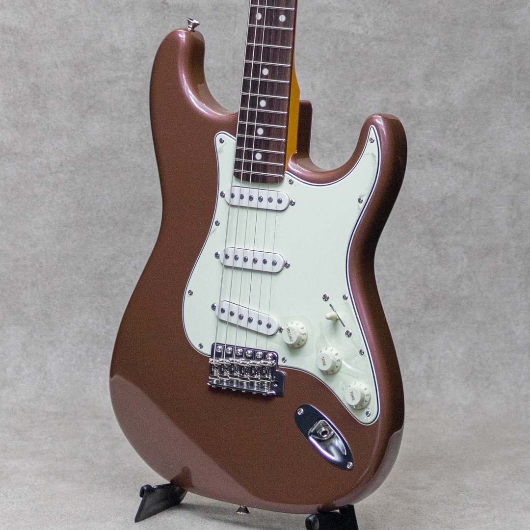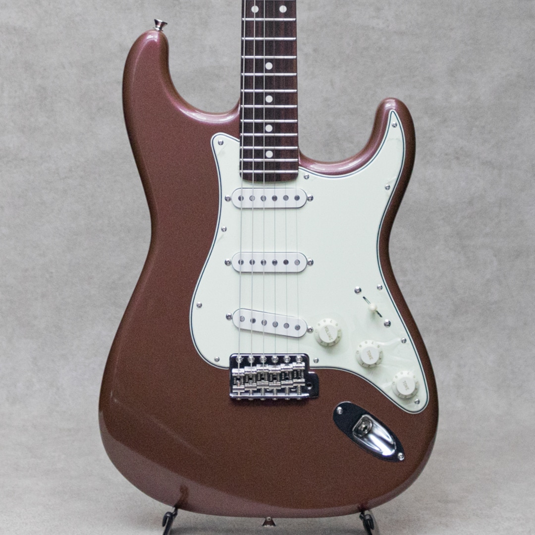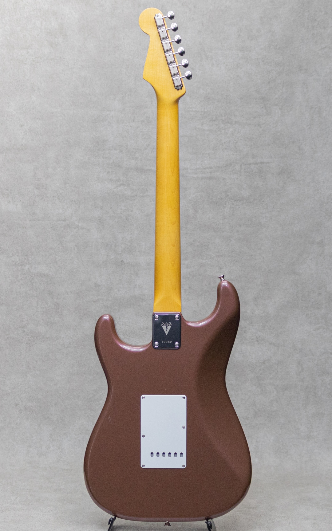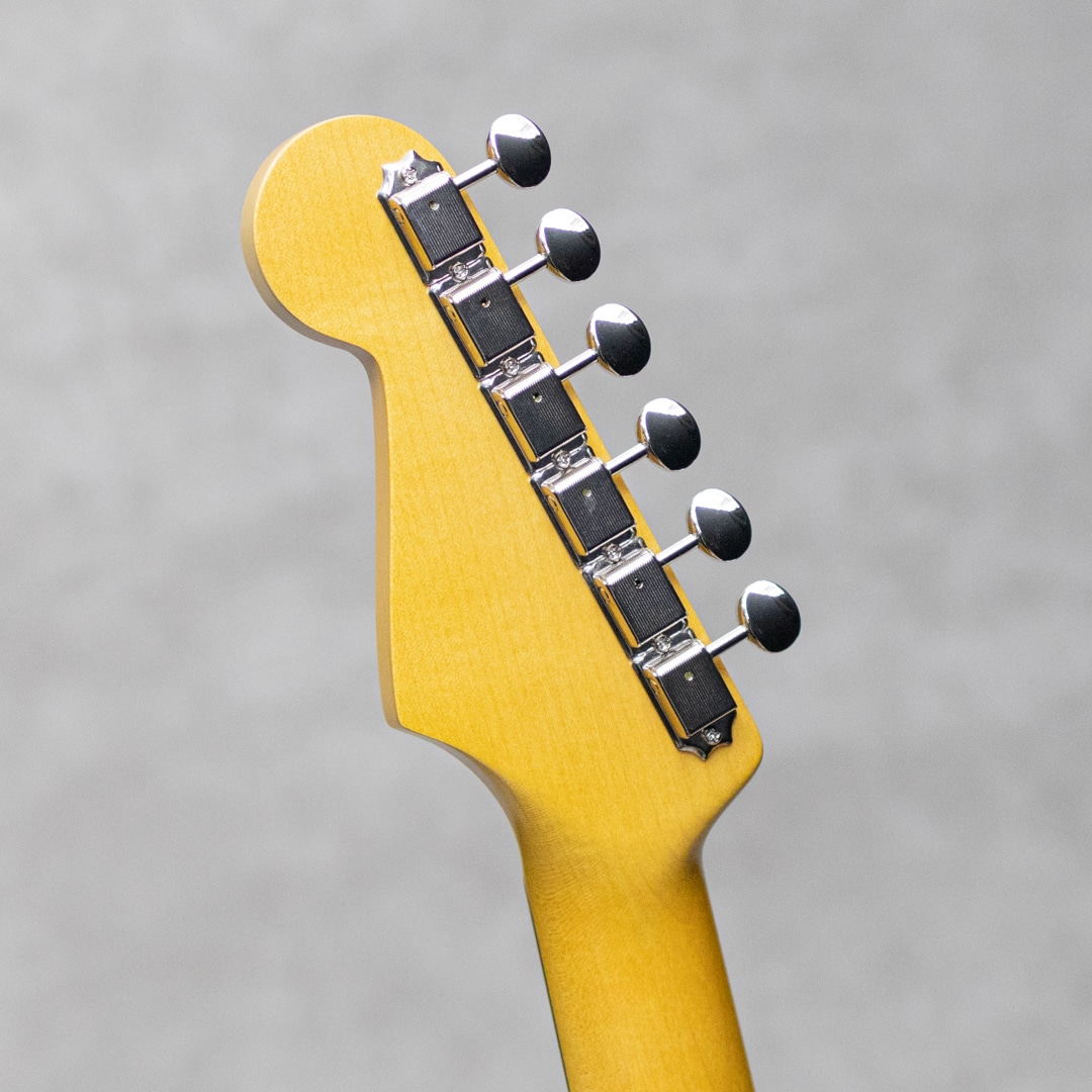 “Neo Vintage”を感じさせる”Vanzandt”。数多くのミュージシャンから愛されたテキサス生まれの”Van Zandt”ピックアップを搭載し、国産の確かな技術で作り上げられるギターは、その価格以上のクオリティを感じずにはいられない実力派ギター。本器は60年代モデルを踏襲した”STV-R2 Burgundy Mist”。ピックアップに"Van Zandt” TrueVintage&Bluesを搭載したショップセミオーダーモデル。アルダー2pcsボディ、クオーターソーン目取りのメイプルネックにインディアンローズウッドスラブ指板のウッドスペックといった王道スペック。ネックグリップは22フレット仕様の60 Style Oval Cシェイプで、厚すぎず薄すぎない弾き心地の良いネックシェイプ。通常モデルのピックアップは”Van Zandt”Bluesx3が搭載されておりますが、本器にはフロントPU&センターPUに”Van Zandt”TrueVintageを、リアPUには”Van Zandt”Bluesを搭載。トーンコンデンサーにはヴァンザントオリジナルレプリカコンデンサーを使用。フロント・センター時のクリアで乾いた響きは、より奥行きのあるベルトーンを思わせるレンジの広い響きで、リア時のパンチのあるミッドの効いたサウンドはドライブサウンドにも持ってこいです。より繊細で表現力のあるフロントやハーフトーンでファットでメロウなトーンから、エッジの効いたアグレッシブなパワー感の得られるリアサウンドまで幅広いサウンドメイクを可能にしてくれる1本です。