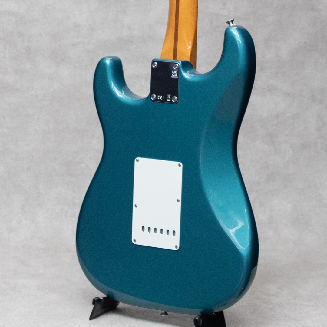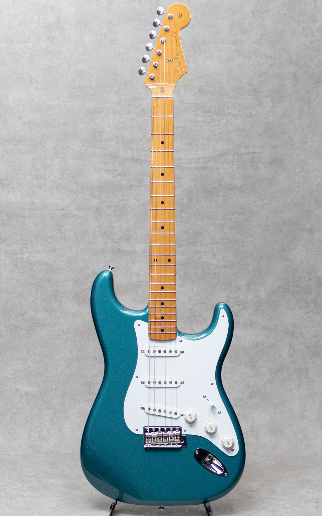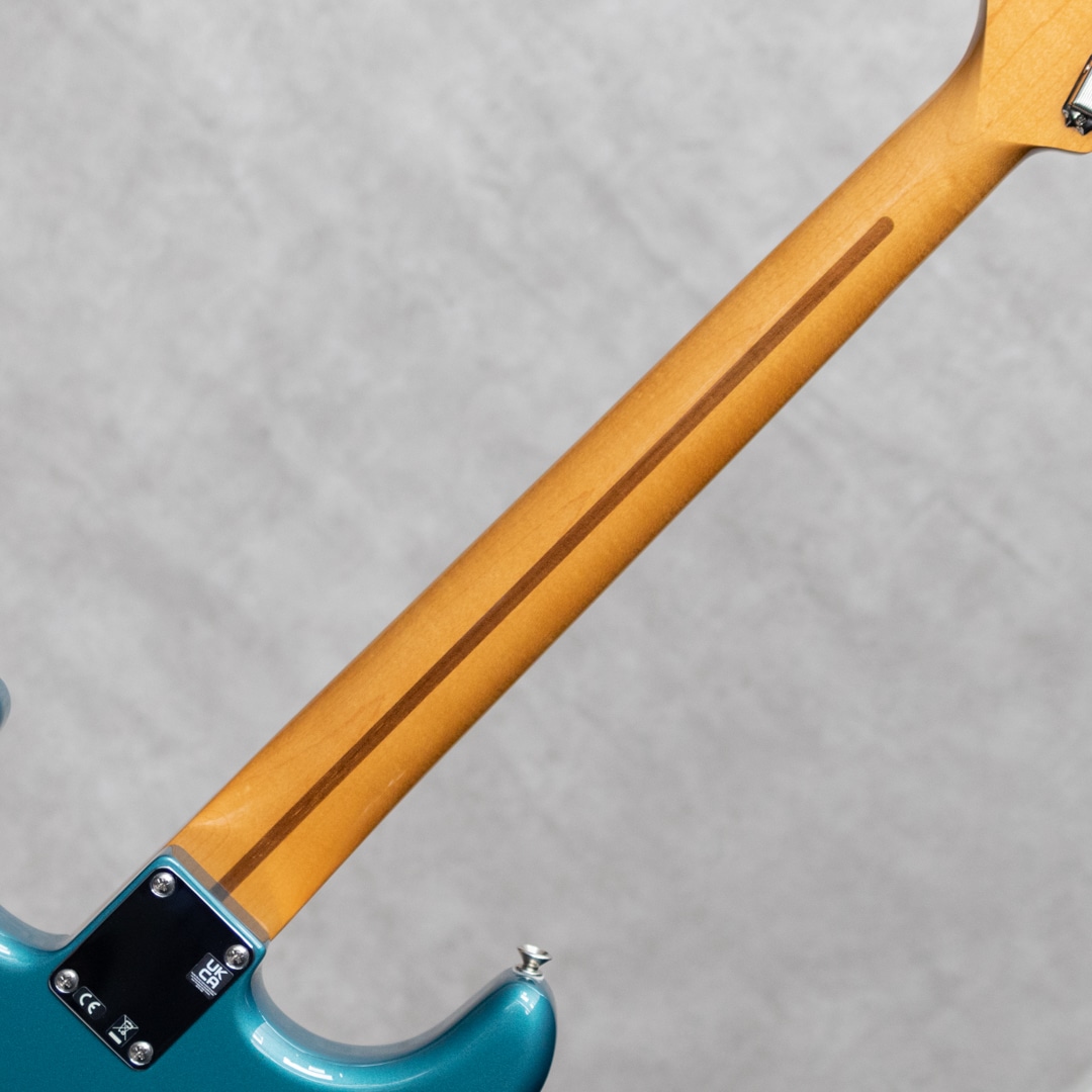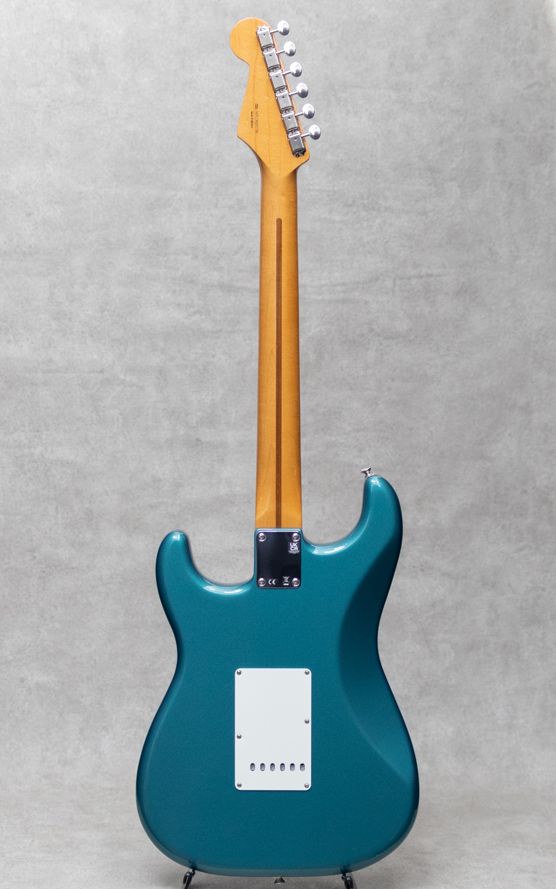 1986年に誕生した”American Standard Series”。時代の流れを汲みながら進化してきたUSAの核となるシリーズで、上位モデルとして”Plus”モデルや”American Deluxe”などが派生しラインナップされていきます。現在は”American Professional Series”へと続きまだまだ進化を遂げるモダン・レギュラーフェンダーのコアライン。本器は、”American Standard Stratocaster Burgandy Mist Metalic/Rosewood Matching Head”。FSR(Factory Special Run)にて限定発売されていた美しいバーガンディカラーのマッチングヘッドモデル。1995年製USED品。アルダーボディ、サテンフィニッシュのメイプルネックにインディアンローズウッドスラブ指板の定番ウッドスペック。ストラト系譜より産まれた純血のモダンモデル。9.5”R指板のつば出し22fネックに2ストリングガイド、2点支持のアメリカンスタンダードトレモロ、ダイカストサドルを装備。アメリカンスタンダードピックアップx3、0.022uFフィルムコンデンサー搭載。トーン回路は、フロントトーンとミドル・リアに配線されたTBX回路が搭載されています。モダンながらしっかりと受け継ぐフェンダートーン。ブライトで軽快なカッティングサウンドから、しっかりとコシのあるロックなフィールまで、しっかりと網羅してくれます。キャビティ内は導電塗料でシールディングもされており、積極的にサウンドメイクもしていただけます。ヘッド部の極小の塗装チッピングや若干の小傷が見られますが、30年近くの経年感を感じさせないグッドコンディションの本器。ネック裏に塗装のヒビ割れが見られますが、現在はしっかりと補修され引っ掛かりなどもなくプレイいただけます。塗装や金属パーツも光沢を保っておりとてもキレイな印象です。プラスチックパーツも経年で焼けて良い雰囲気。ネックまわりも良好で、ネックトラスロッドも正常に機能し低いアクションでセットアップできております。クールな外観と操作性の良いレギュラーモデルのストラト。ガンガンプレイいただきたい1本です。ブラックトーレックスのフェンダーハードケース、オリジナルトレモアームが付属します。