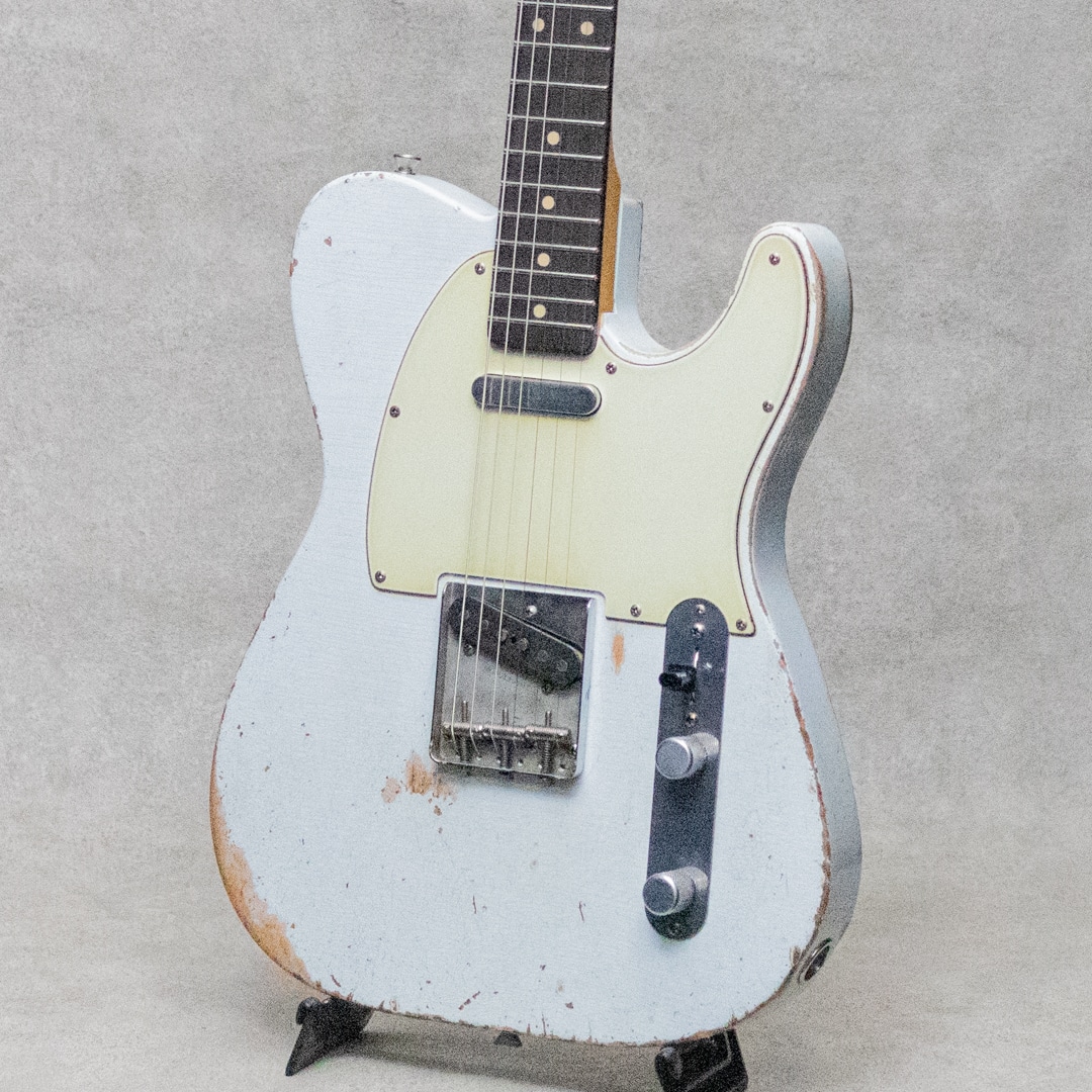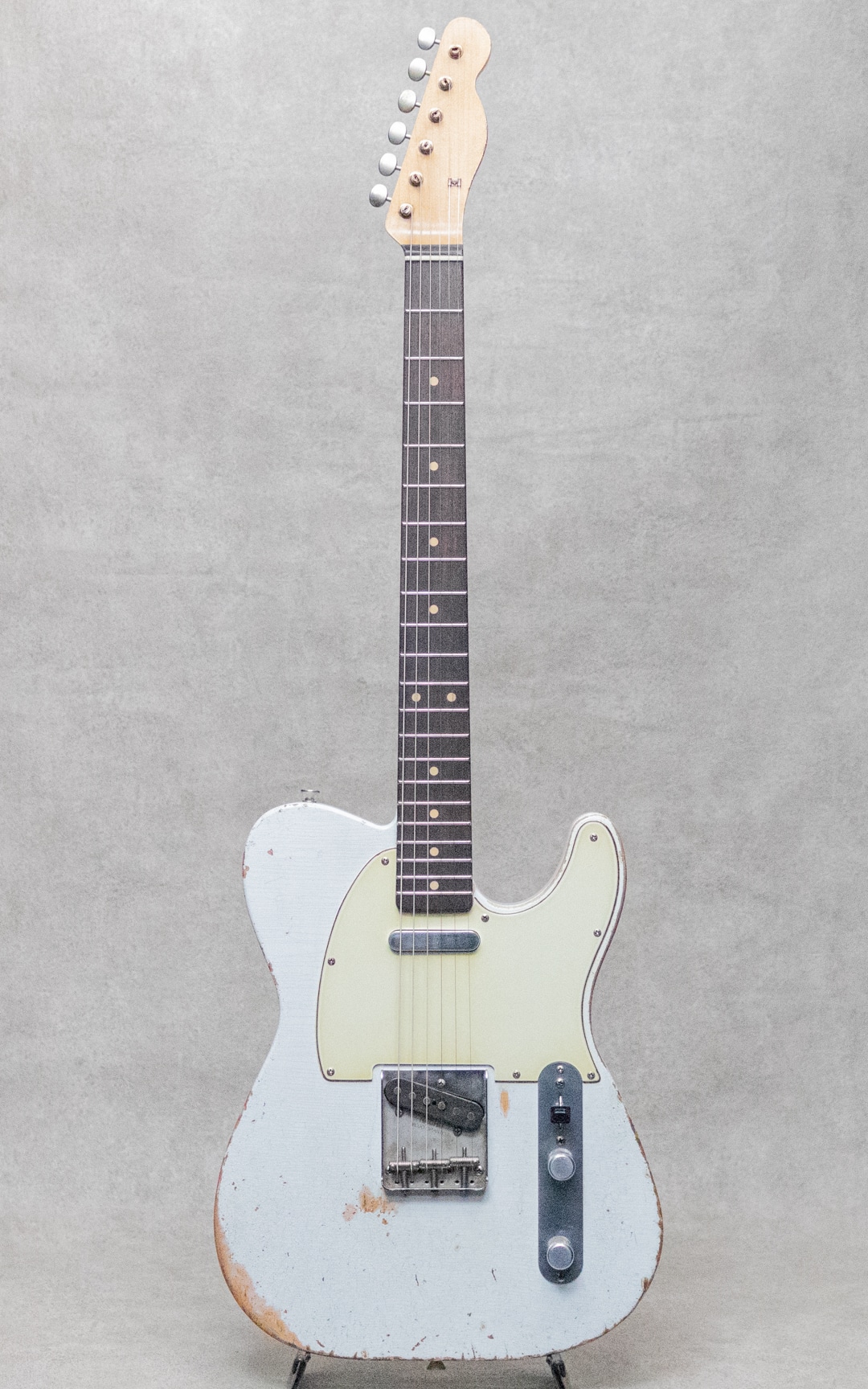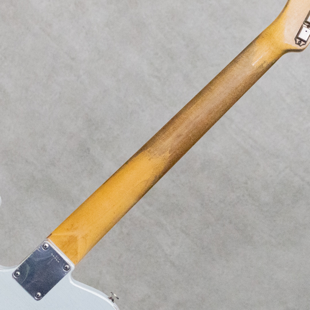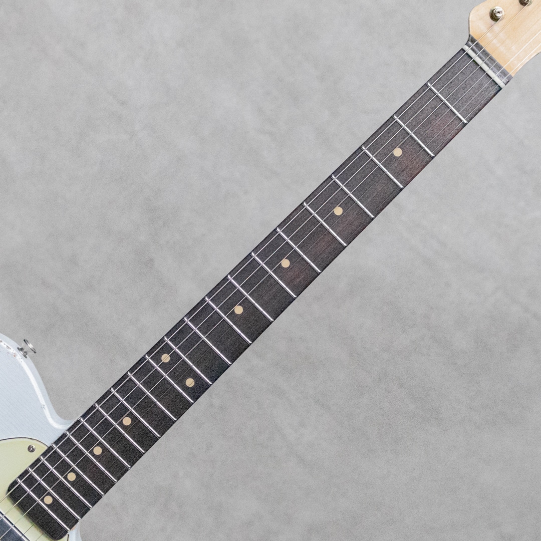 "THE BLACKGUARD BOOK"の著書でもあるNacho Banos氏による、究極のBlackguard Replicaブランド"Nacho Guitars”。年間の製作本数は非常に少なく日本国内への入荷数も限られており、カタログモデルといった概念は無く1本1本個性を宿したギターをワンオフで製作するようなスタイルが貫かれています。同じ年代・特徴のモデルであっても、それぞれが個性を持った外観・弾き心地・そしてサウンドが表現されております。本器は、”Early 60s Whiteguard #44211 Heavy Aging Sonic Blue Rosewood FB Medium C Neck”。オリジナル・ブラックガードを知り尽くしたNacho氏の経験値を元に製作される、圧巻の完成度を誇る至高の60'sレプリカの1本。スラブローズウッド指板、メイプルネック、アルダーボディのウッドスペック。オールドを知り尽くしたNacho氏ならではの貫禄あるヘビーエイジド加工が施された雰囲気抜群のソニックブルーカラー。ミディアムCシェイプに仕上げられたネックは細すぎず薄すぎない握り心地の良いネックシェイプです。本物さながらの経年したハードウェア、褪色感を再現したエイジング加工の3plyミントグリーンPGは、その作り込みを愛でるだけでも楽しめる仕上がり。9.5”ラジアス指板、ミディアムフレット、60sスタイルブリッジ、スチールサドル、Early 60’sスタイル”Nacho"ピックアップ。ピックアップセレクターワイヤリングは3wayで、ネックPU、センターPU&ブリッジPUのシリーズ接続、ブリッジPUで、マスターボリューム、マスタートーンです。しっかりとキレのある立ち上がりと付随する倍音。コンターボディモデルとは異なるこの時期のこのモデルならではのファットで艶やかな響き。ストイックにブラックガードを愛したNacho氏ながら、指板ラジアスやピックアップワイヤリングなどはモダンで使いやすいセットをセレクトしており、より実戦向きで使えるビンテージレプリカに仕上げられています。オリジナルビンテージと見まごうほどの雰囲気と仕上がりの話題と人気を集めるスペイン発”Nacho Guitars”。オリジナルハードケース、ブリッジカバー、50年代当時のFender資料のコピー、スペック等が封入されたブックレット、オリジナル・レザーバック、スペックシート、当機の画像データが入ったUSBとUSB用の木箱、レザーストラップ付属