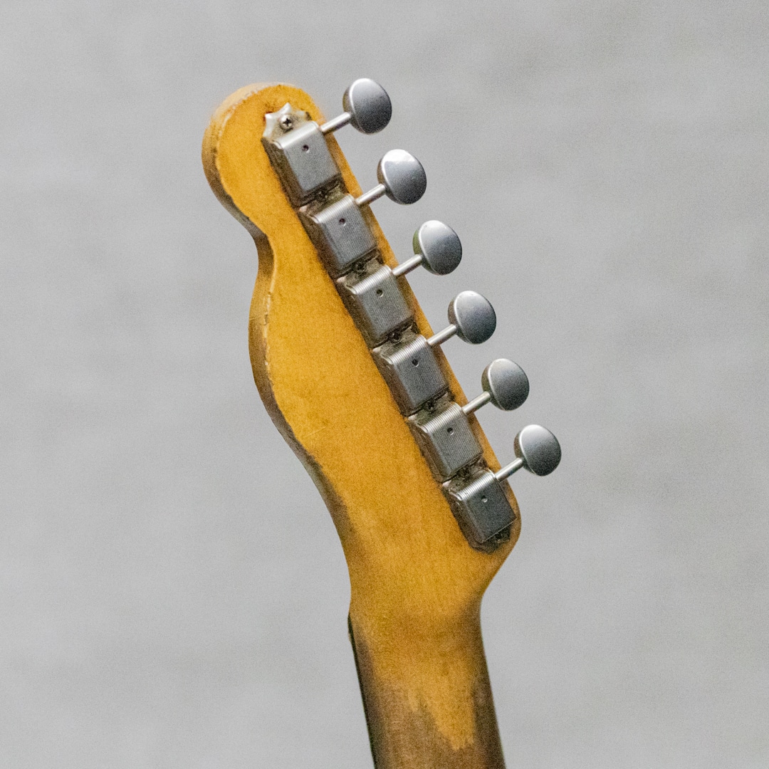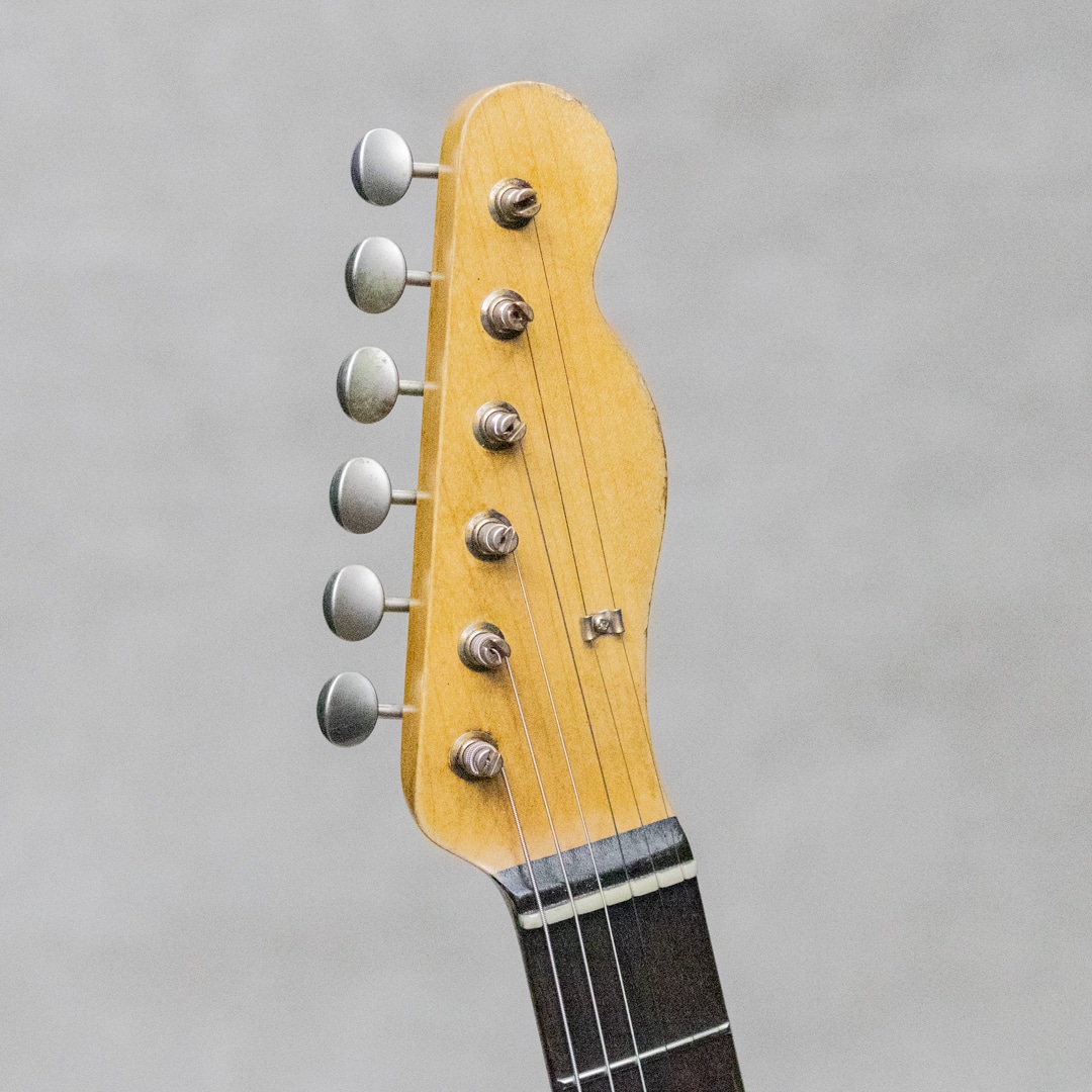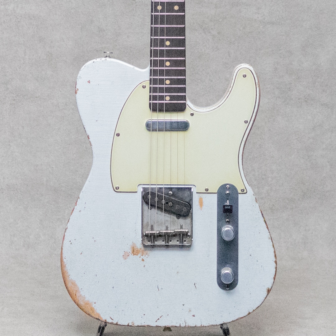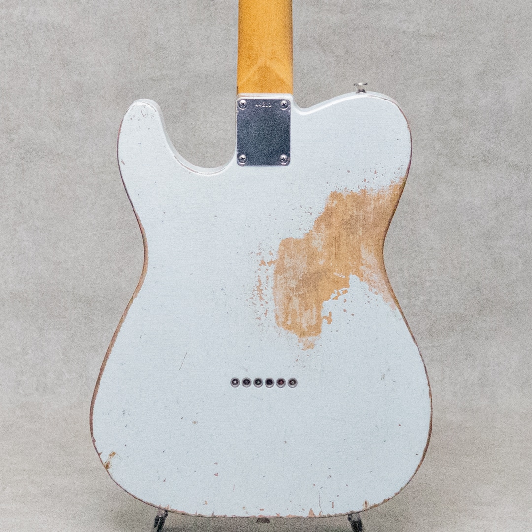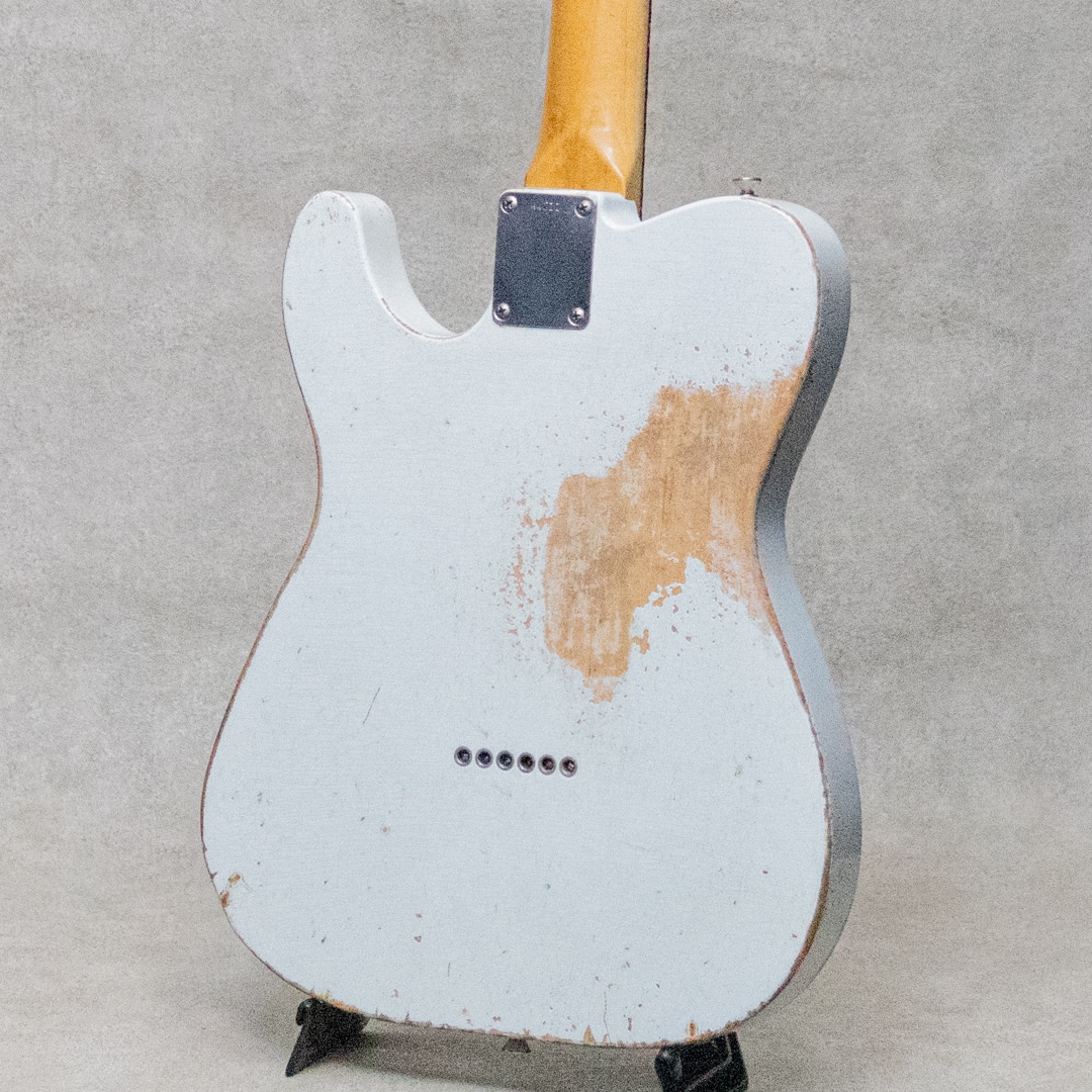 "THE BLACKGUARD BOOK"の著書でもあるNacho Banos氏による、究極のBlackguard Replicaブランド"Nacho Guitars”。年間の製作本数は非常に少なく日本国内への入荷数も限られており、カタログモデルといった概念は無く1本1本個性を宿したギターをワンオフで製作するようなスタイルが貫かれています。同じ年代・特徴のモデルであっても、それぞれが個性を持った外観・弾き心地・そしてサウンドが表現されております。本器は、”Early 60s Whiteguard #44211 Heavy Aging Sonic Blue Rosewood FB Medium C Neck”。オリジナル・ブラックガードを知り尽くしたNacho氏の経験値を元に製作される、圧巻の完成度を誇る至高の60'sレプリカの1本。スラブローズウッド指板、メイプルネック、アルダーボディのウッドスペック。オールドを知り尽くしたNacho氏ならではの貫禄あるヘビーエイジド加工が施された雰囲気抜群のソニックブルーカラー。ミディアムCシェイプに仕上げられたネックは細すぎず薄すぎない握り心地の良いネックシェイプです。本物さながらの経年したハードウェア、褪色感を再現したエイジング加工の3plyミントグリーンPGは、その作り込みを愛でるだけでも楽しめる仕上がり。9.5”ラジアス指板、ミディアムフレット、60sスタイルブリッジ、スチールサドル、Early 60’sスタイル”Nacho"ピックアップ。ピックアップセレクターワイヤリングは3wayで、ネックPU、センターPU&ブリッジPUのシリーズ接続、ブリッジPUで、マスターボリューム、マスタートーンです。しっかりとキレのある立ち上がりと付随する倍音。コンターボディモデルとは異なるこの時期のこのモデルならではのファットで艶やかな響き。ストイックにブラックガードを愛したNacho氏ながら、指板ラジアスやピックアップワイヤリングなどはモダンで使いやすいセットをセレクトしており、より実戦向きで使えるビンテージレプリカに仕上げられています。オリジナルビンテージと見まごうほどの雰囲気と仕上がりの話題と人気を集めるスペイン発”Nacho Guitars”。オリジナルハードケース、ブリッジカバー、50年代当時のFender資料のコピー、スペック等が封入されたブックレット、オリジナル・レザーバック、スペックシート、当機の画像データが入ったUSBとUSB用の木箱、レザーストラップ付属