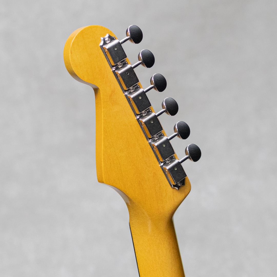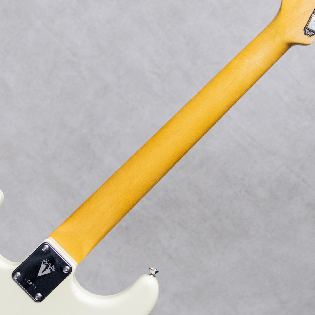 “Neo Vintage”を感じさせる”Vanzandt”。数多くのミュージシャンから愛されたテキサス生まれの”Van Zandt”ピックアップを搭載し、国産の確かな技術で作り上げられるギターは、その価格以上のクオリティを感じずにはいられない実力派ギター。本器は60年代モデルを踏襲した”STV-R2 Vintage White”。グッドルッキンのビンテージホワイトカラー。アルダー2pcsボディ、こだわりの板目取りメイプルネックにインディアンローズウッドスラブ指板のウッドスペックといった王道スペック。ネックグリップは22フレット仕様の60 Style Oval Cシェイプで、厚すぎず薄すぎない弾き心地の良いネックシェイプ。ピックアップは”Van Zandt”Bluesx3を搭載。トーンコンデンサーにはヴァンザントオリジナルレプリカコンデンサーを使用。倍音に溢れ野太く心地よいレスポンス。程よい分離感とレスポンスはブルージーにもファンキーにも魅せてくれます。ハーフトーンのベルトーンは透明感があり、リア時のパンチのあるミッドの効いたサウンドはドライブサウンドにも持ってこいです。フィンガリングニュアンスをしっかりと反映してくれる、力強く頼り甲斐のあるサウンド。繊細で表現力のあるフロントやハーフトーンでファットでメロウなトーンから、エッジの効いたアグレッシブなパワー感の得られるリアサウンドまで幅広いサウンドメイクを可能にしてくれる1本です。