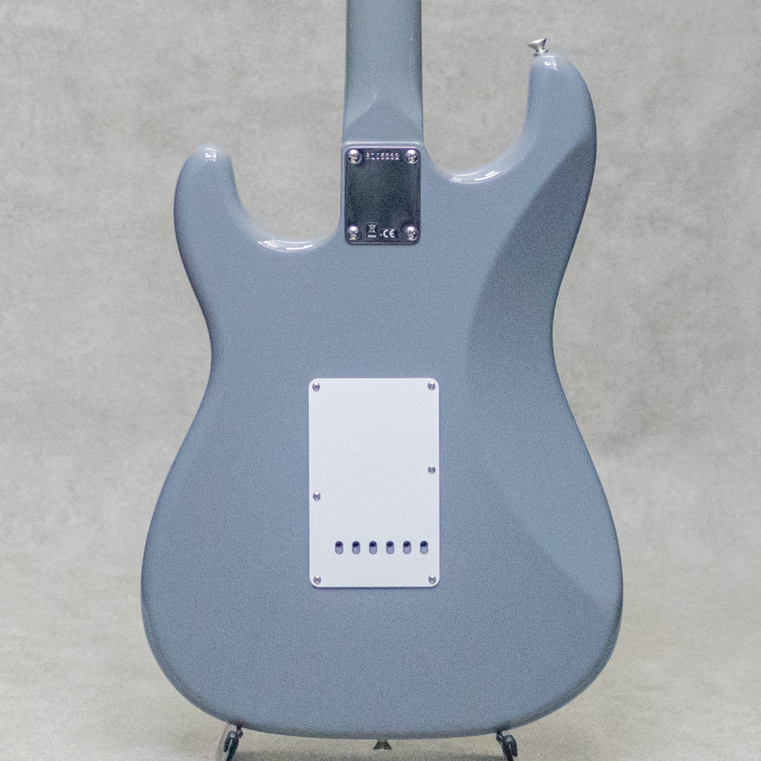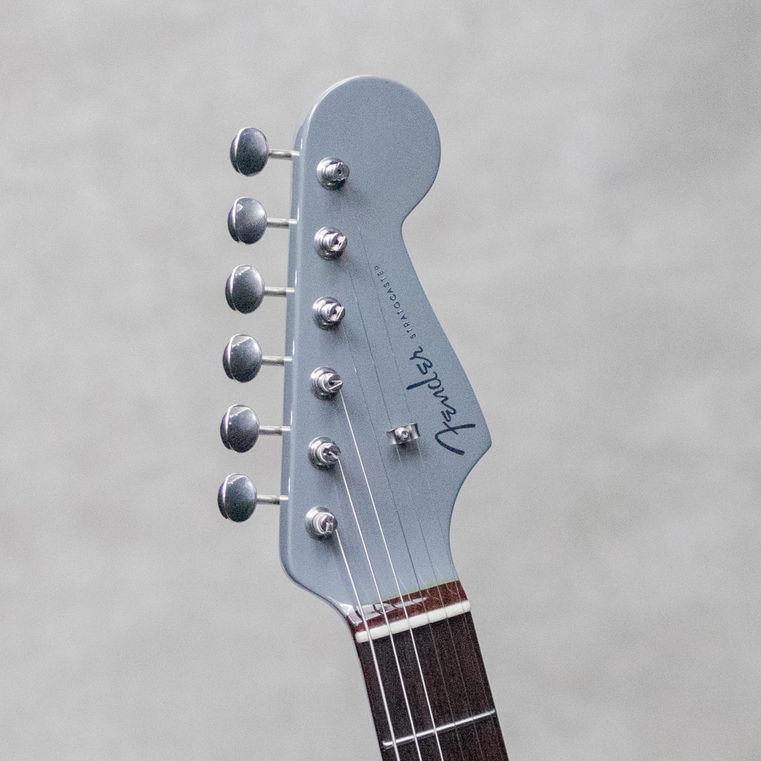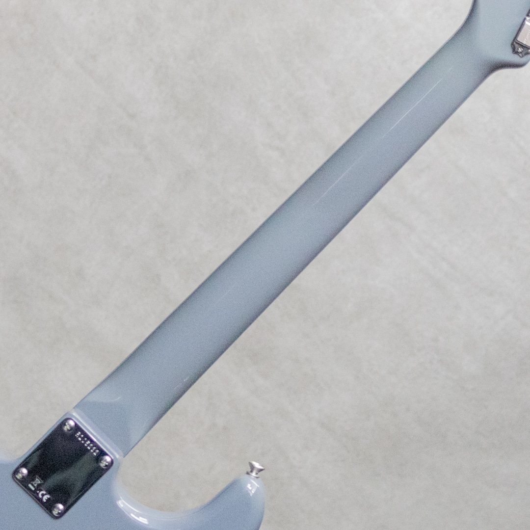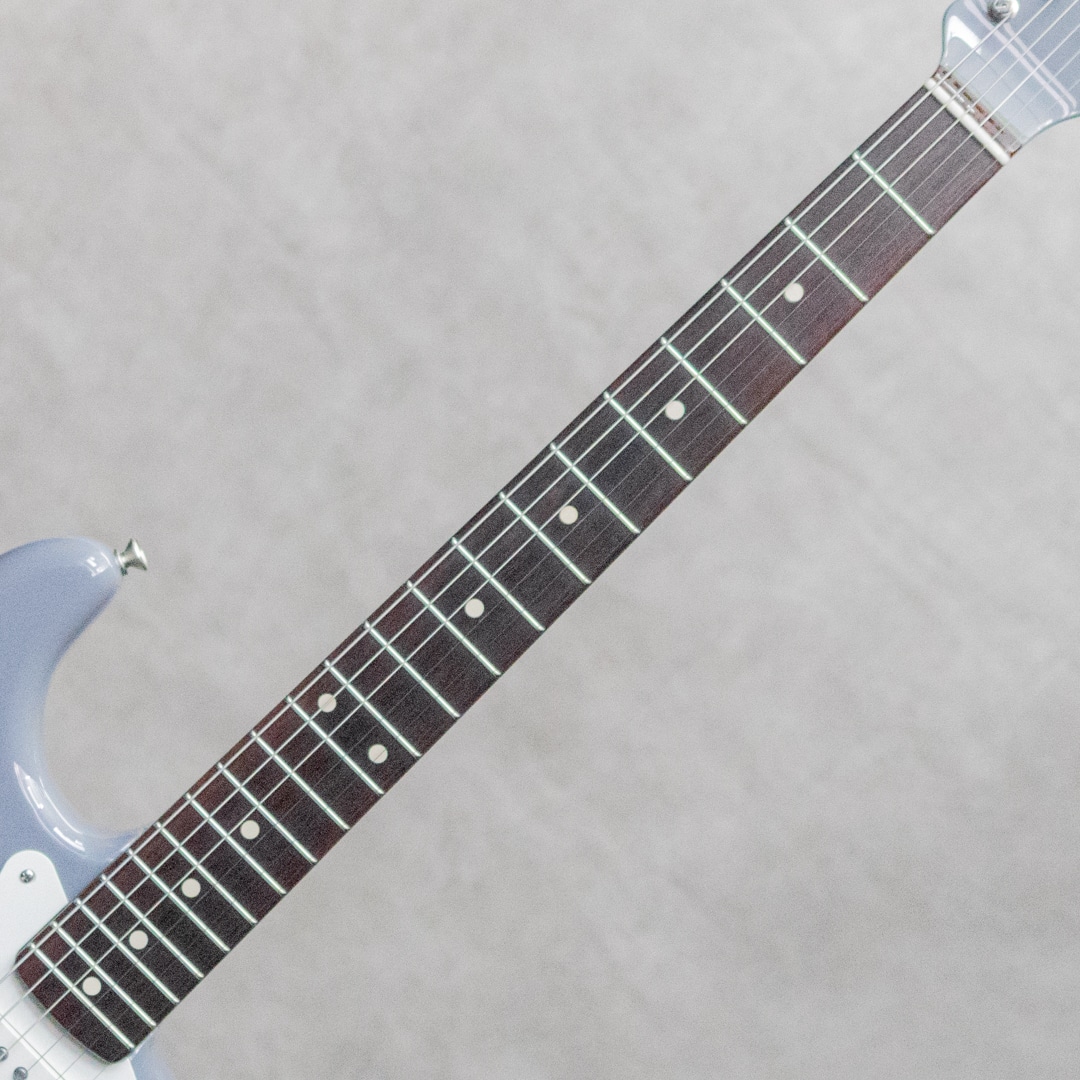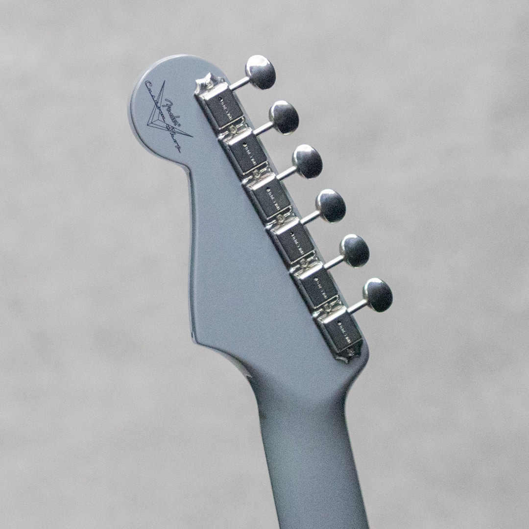“Master Builder Apprentice Custom 1960 Stratocaster NOS Cielo Grey by Nick Saccone”。次期マスタービルダー候補”Nick Saccone(ニック・サッコーン)"によって製作されたカスタムモデル。アルダー2pcsボディ、スラブローズ指板のウッドスペックの王道スペック。指板材にはAAAの極上ローズウッドを指定採用し、ヘッド、ネック裏、ボディを統一のワンカラーフィニッシュで製作された目を惹く1本。ネックグリップは60 Style Oval Cシェイプで、心持ち厚みを感じる手に馴染み良いネックシェイプ。ヘッドロゴはメタルプレートのスパゲティロゴ。ピックアップにはカスタムショップ製ハンドワウンドFAT60sピックアップx3、0.1uFフィルムコンデンサーを搭載。オリジナルではブラックカラーの1plyピックガード&ピックアップカバー&コントロールノブにアクセントのレッドカラーVolumeノブが到着されていましたが、現在はパーチメントホワイトカラーパーツでドレスアップされています。(オリジナルパーツはケース内に保管されています。)コントロールレイアウトはスタンダードな5wayPUセレクターに、マスターボリューム、フロントトーン、ミドルトーン。Fenderカスタムショップのカスタマーサポートやリペアを経て製作現場へ入った”Nick Saccone”。ビッグ・プロジェクトやアーティストサポート、マスタービルダーのアシストなど様々なキャリアを持つマスタービルダーアプレンティスです。キレがありながらもしっかりと倍音をまとった野太い60s ストラトサウンド。NOS(New Old Stock)仕上げならではのグラッシーで艶のあるトーンを持ちながら、過度ではない高次倍音で扱いやすいサウンドの本器。クイックなレスポンスとキレのあるサウンドをしっかりとしたサスティンと野太いアタックで味わわせてくれます。とてもキレイなコンディションで保たれた本器。光にかざせばわかる程度の極小の小傷程度で、ヘッド付け根部にネックハンガーの焼け跡が見られるのが悔しいところですが、以外は塗装剥がれなどもなくグッドコンディションです。ネックまわりも良好で、ネックコンディションもとても良好でトラスロッドの余裕もあり、低いアクションにセットアップしていますがハイフレットまで音詰まりなく演奏面も良好です。フレットはビンテージサイズが使用されており新品時ほどの残りでしっかりとプレイいただけます。クールなシエログレイで統一されたネック&ボディカラーに、ハンドワンドFAT60sPUを搭載した実力派の1本。是非お手元でご体感ください。オリジナルブラウントーレックスハードケース、認定書、オリジナルトレモロアーム、ブリッジカバー、トレモロスプリング、ストラップなど新品時付属類もしっかりと付属します。