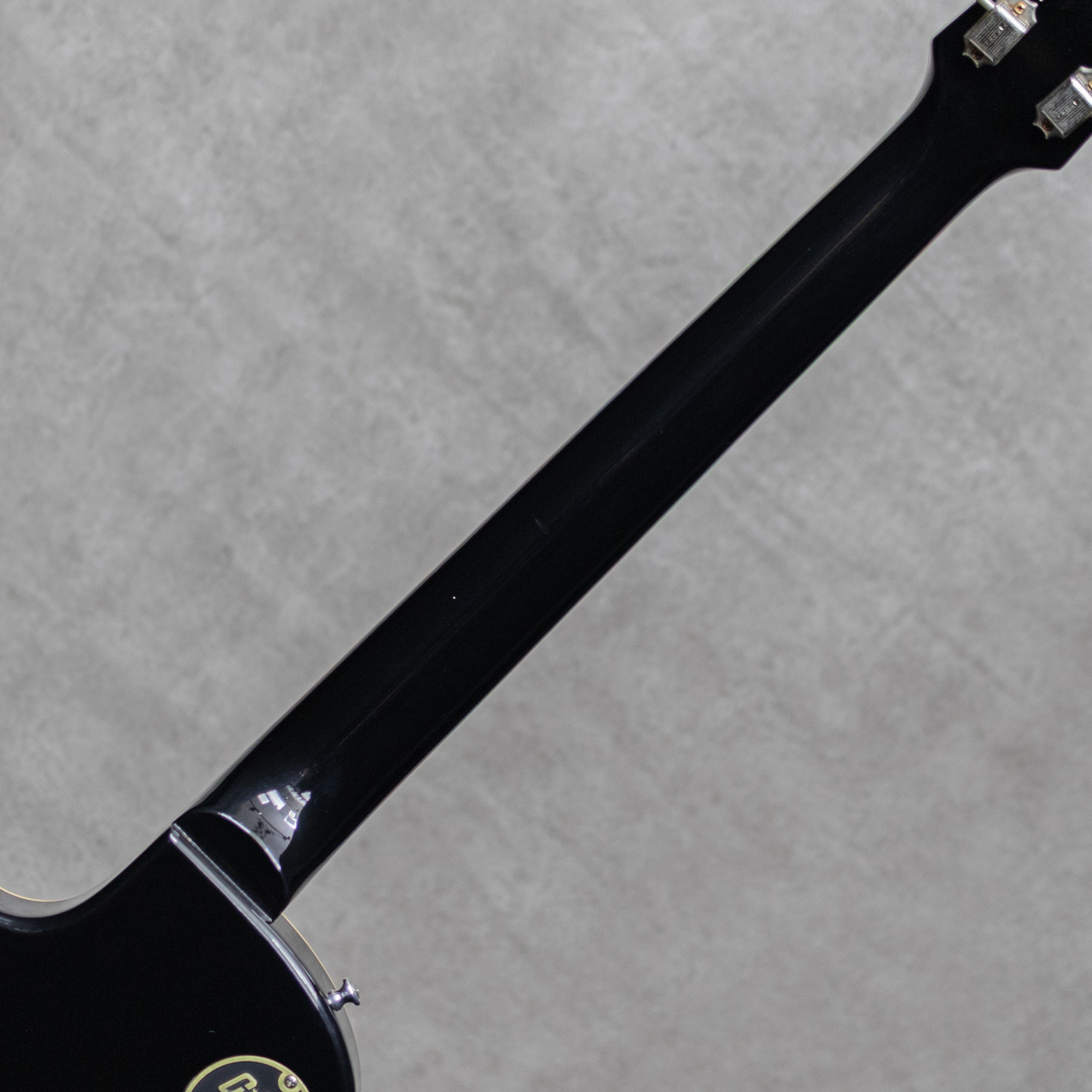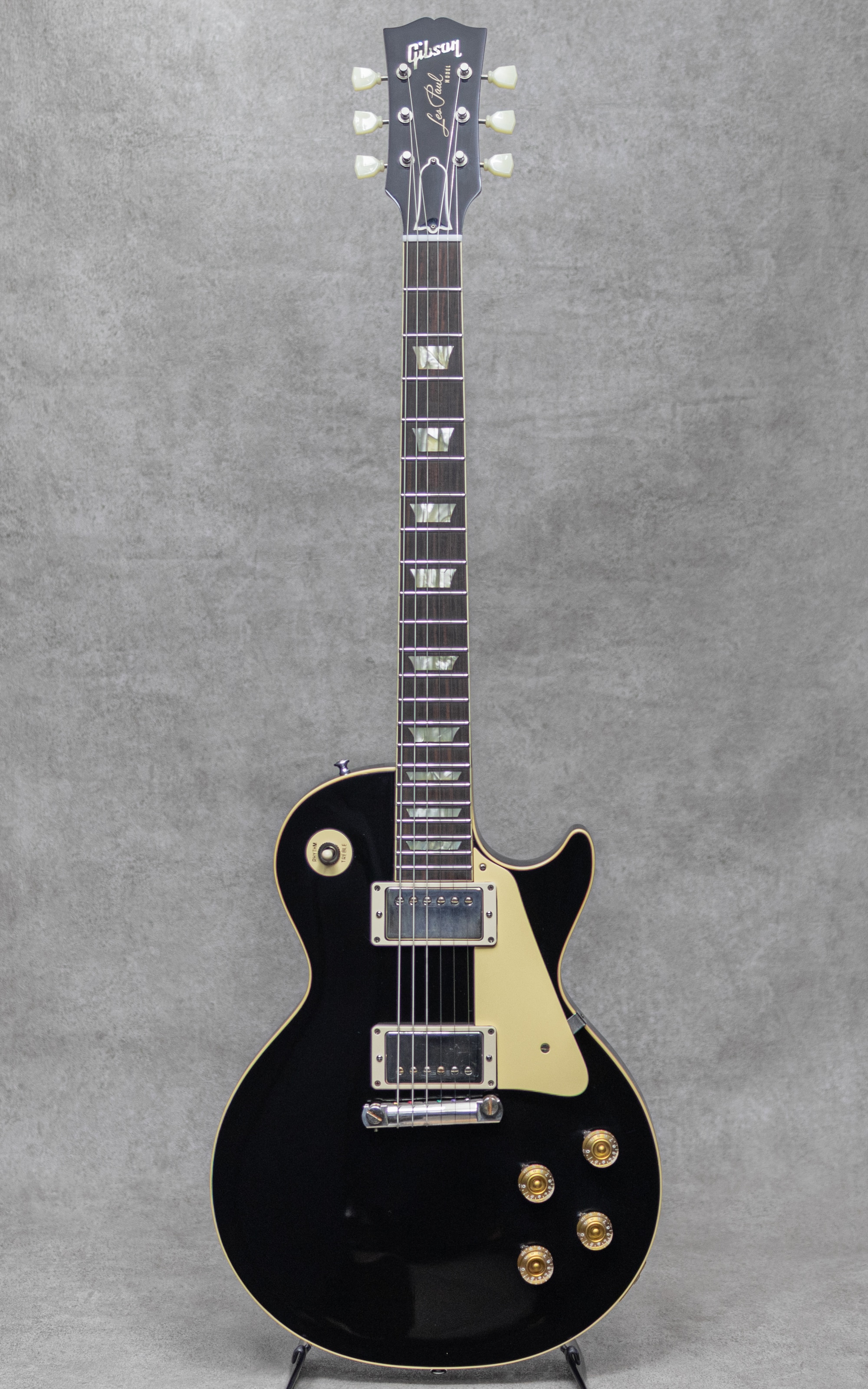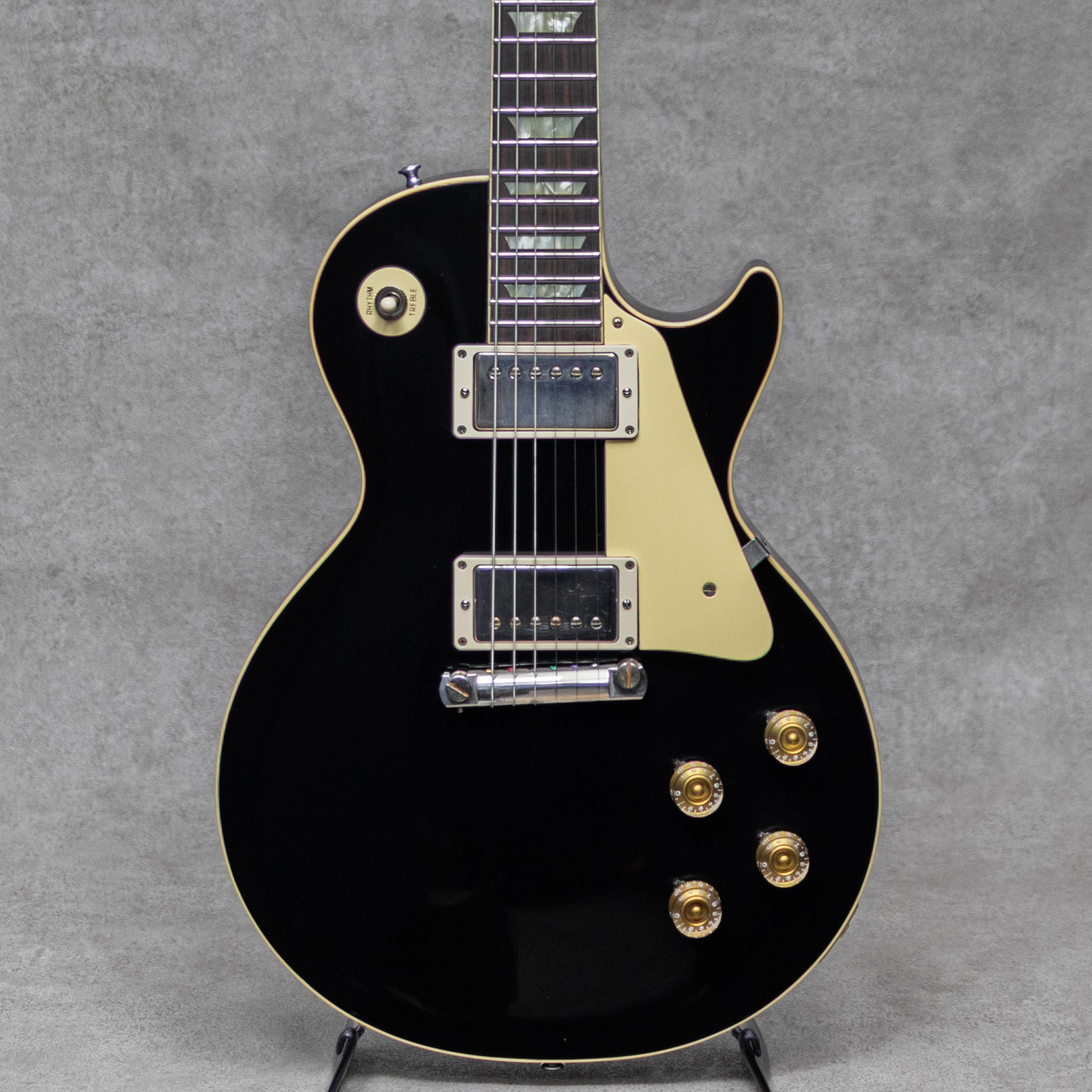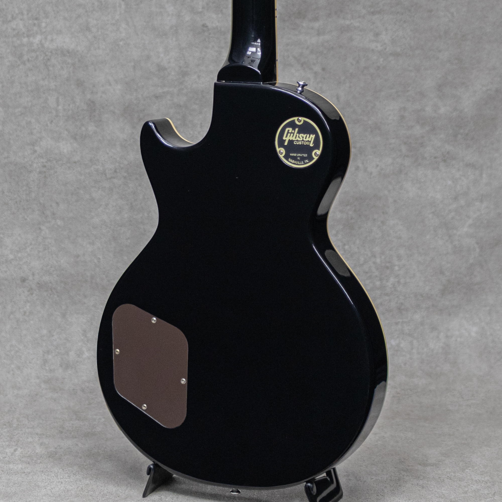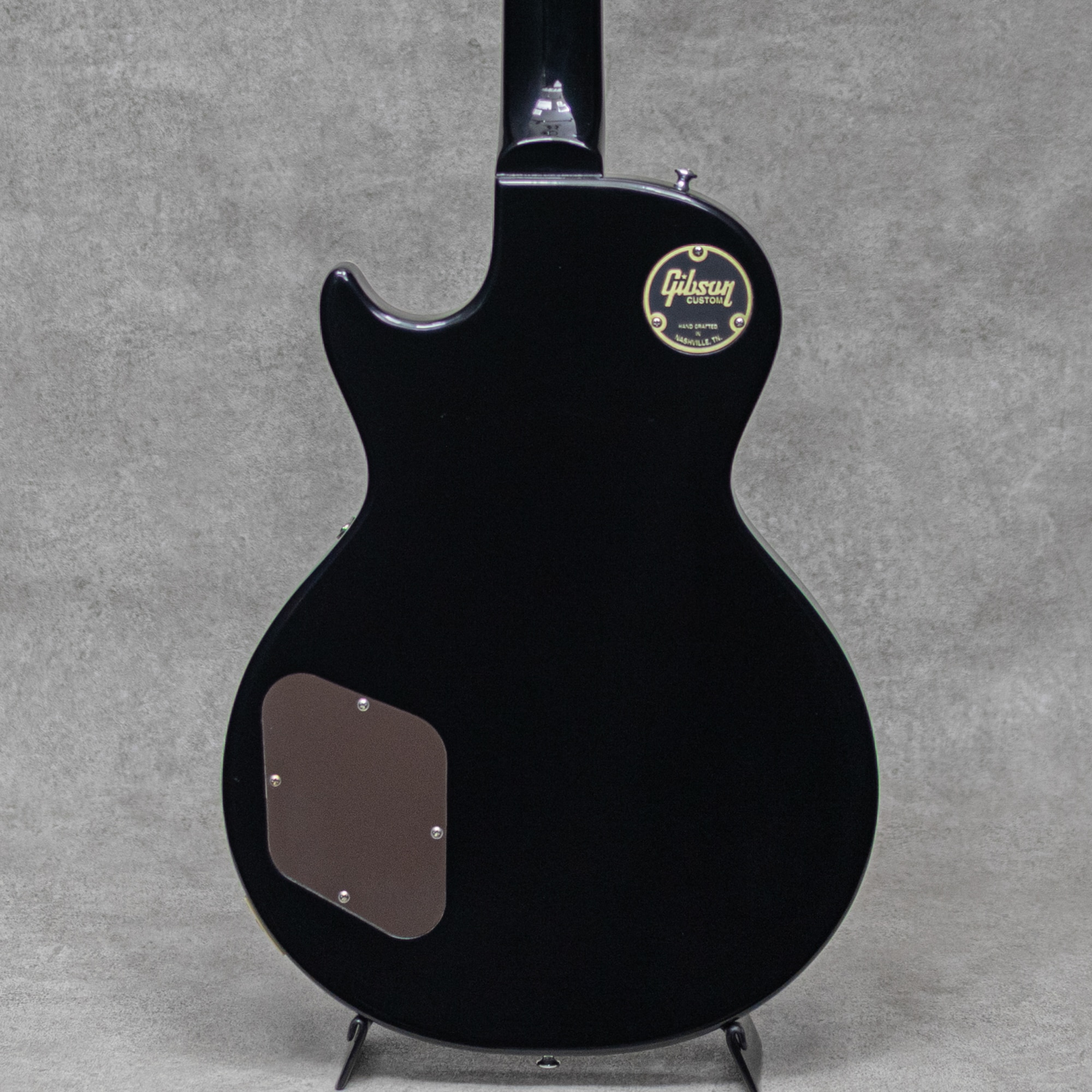 1990年代初頭に設立された"GIbson Custom shop"とフラッグシップモデルの"1959 Les Paul Standard Reissue"を筆頭に往年の名モデルを復刻する"Historic Collection"のシリーズ。細かなブラッシュアップをしながら、憧れのヴィンテージモデルを最新のクオリティで現代に蘇らせてきました。本器は2024年製"1954 Les Paul Wraparound 2 Humbuckers All Ebony VOS"。本来はゴールドトップにP-90×2を搭載する"Historic Collection"の"1954 Les Paul (R4)"ですが、こちらは国内ディーラー限定企画でオーダーがされたハムバッカー搭載スタイル。その他ヘッドストックの"Gibson"ロゴを当時存在した"Lower Logo"低い位置に配した仕様の他、ボディとネック、全体をエボニーカラーでまとったシンプルかつスタイリッシュな内容。ネックシェイプとフレットのスペックは通常の"R4"同様の"50s Rounded Medium C"と"Historic Gibson Narrow/Tall"を採用。元々の"1954 Les Paul"のユニークなキャラクターを持ちつつ、ハムバッカー搭載でよりオールラウンダーな扱いやすさを手に入れた魅力的なスペックです。ラップアラウンドブリッジによる豊かなサスティーンとダイレクトな鳴感、握り応えのある丸いネックシェイプと少し細めのフレットから生み出されるウッディでふくよかなトーン。チューン-O-マチックに比べシンプルな倍音構成で手元のニュアンスもしっかりと汲み取ってくれる挙動で、ついつい弾き続けてしまう面白みが特徴的な魅力です。勿論近年ヒストリックモデルの仕様であるチューブレストラスロッドやニカワ接着、ポッティング作業を施さないCustombucker等による、レスポンシブルで開放感のあるポテンシャルも存分にお楽しみいただけます。こちらボディバック等の極細かな小傷、極細かな当て傷、ネックとボディエンドに軽いスタンド負けがある他、VOSフィニッシュの為、元より全体的なヘアラインや塗装ポリッシングのムラがありますが、顕著に目立ったダメージはなく演奏上の妨げになるものはございません。フレットの使用感もさほど感じず、ロッドの調整を含め良好なネックコンディション。現状弾きやすいローアクションでのセッティングができております。レギュラーのカタログラインナップにはない1954 Les Paulのハムバッカーコンバート仕様。ぜひお見逃しなく。オリジナルハードケース、認定書、タグ類が付属。