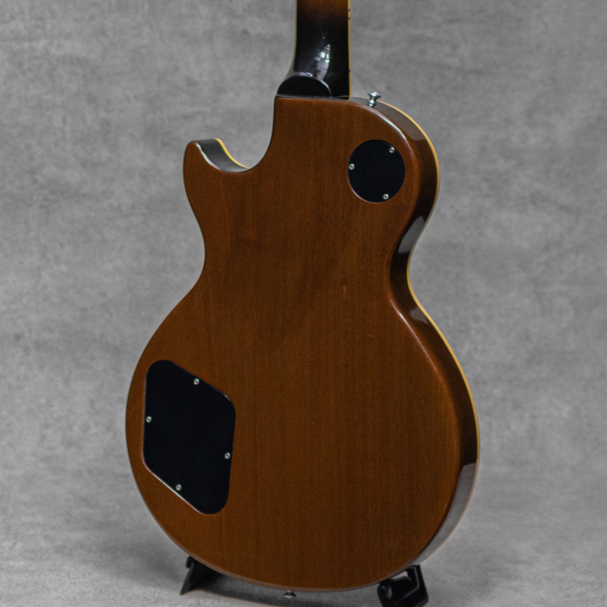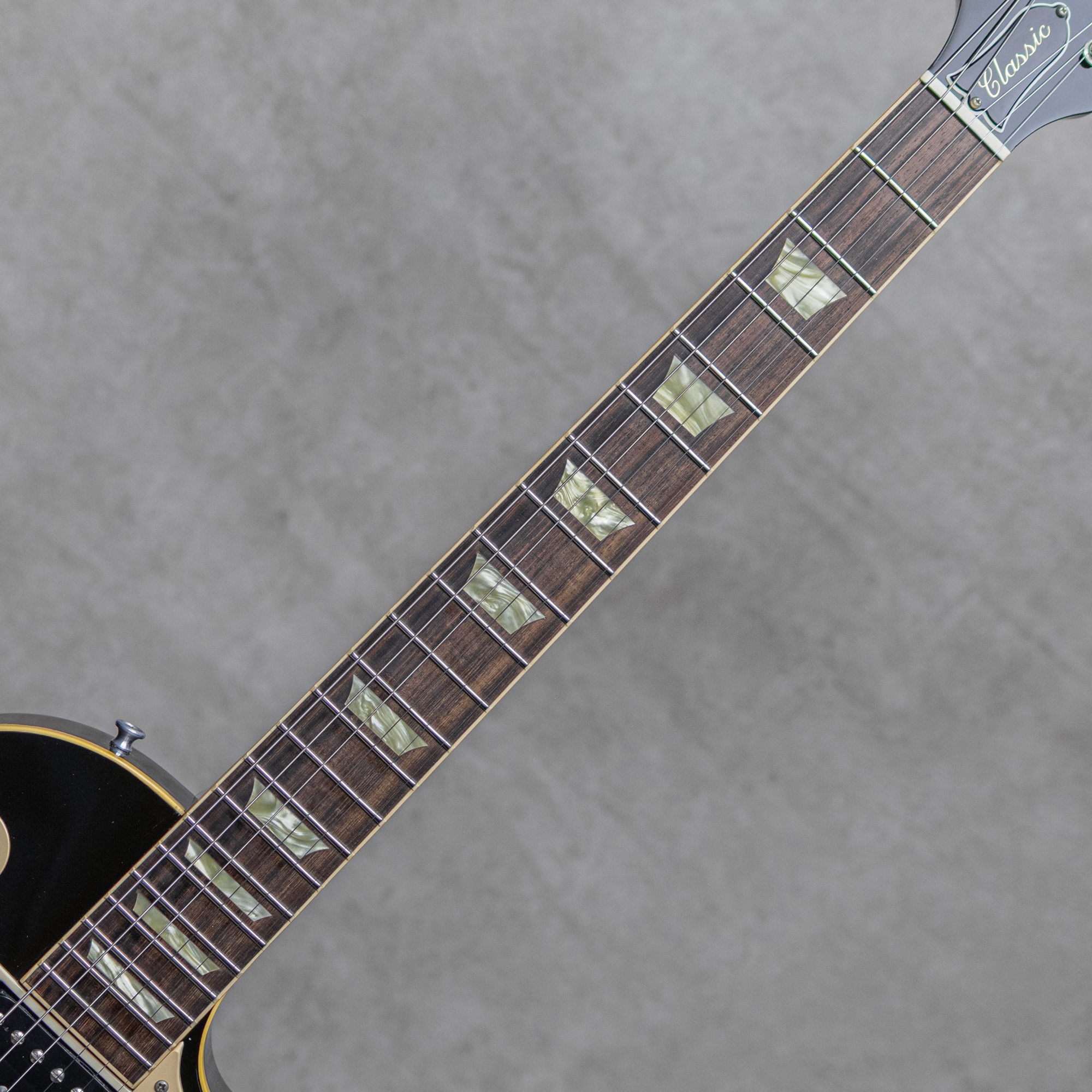1990年発売開始の"Les Paul Classic"は"Historic Collection"の前身にあたる"Les Paul Reissue"に準ずる形で登場、並行して販売されていた"Les Paul Standard"がLate70's以降の系譜、"ナッシュビル製Les Paul"然とした仕様であったものに対し、"Les Paul Classic"ではニッケルパーツの採用などヴィンテージフィールなスペックが魅力。本器は展開初期の1993年製"Les Paul Classic Plus"、雰囲気の良いVintage Sunburstカラー。この時期までの初期スペックではヘッドストックのシルクスクリーン表記が"Les Paul Model"となっている点が人気の仕様です。加えてフィギュアドメイプルトップが魅力の"Plus"。その他クルーソンスタイルペグ、ビンテージスタイルのABR-1チューンOマチックブリッジ、ニッケルハードウェア。"Les Paul Standard”との差別化として1960年モチーフのスリムテーパーネックシェイプとハイパワーなセラミックマグネットピックアップの496R/500Tのコンビネーション。各所でリイシューモデル的な主張をしつつ、プレイヤビリティとサウンドにおいてはむしろモダンな要素を持ち、"HR/HM向けなLes Paul"という評価がされた二面性もまた、本器の魅力的なキャラクターと言えます。ふくよかな低音を持ち分厚く太いサウンドのフロントに、グッと出力が上がりタイトでソリッドなリアは深いドライブにも耐える歯切れの良さが魅力。アイコニックな薄いネックシェイプのプレイヤビリティも言わずもがなです。こちら全体的に細かな擦り傷、ラッカー塗装の引け等はあるものの、顕著に外観を損なうダメージはなく、経年を鑑みると比較的綺麗な外観。ロッドの調整を含めネックのコンディションも良く、現状ローアクションのセッティングでも抜群のプレイヤビリティです。人気の初期スペック、ぜひお見逃しなく。オリジナルのハードケースが付属。