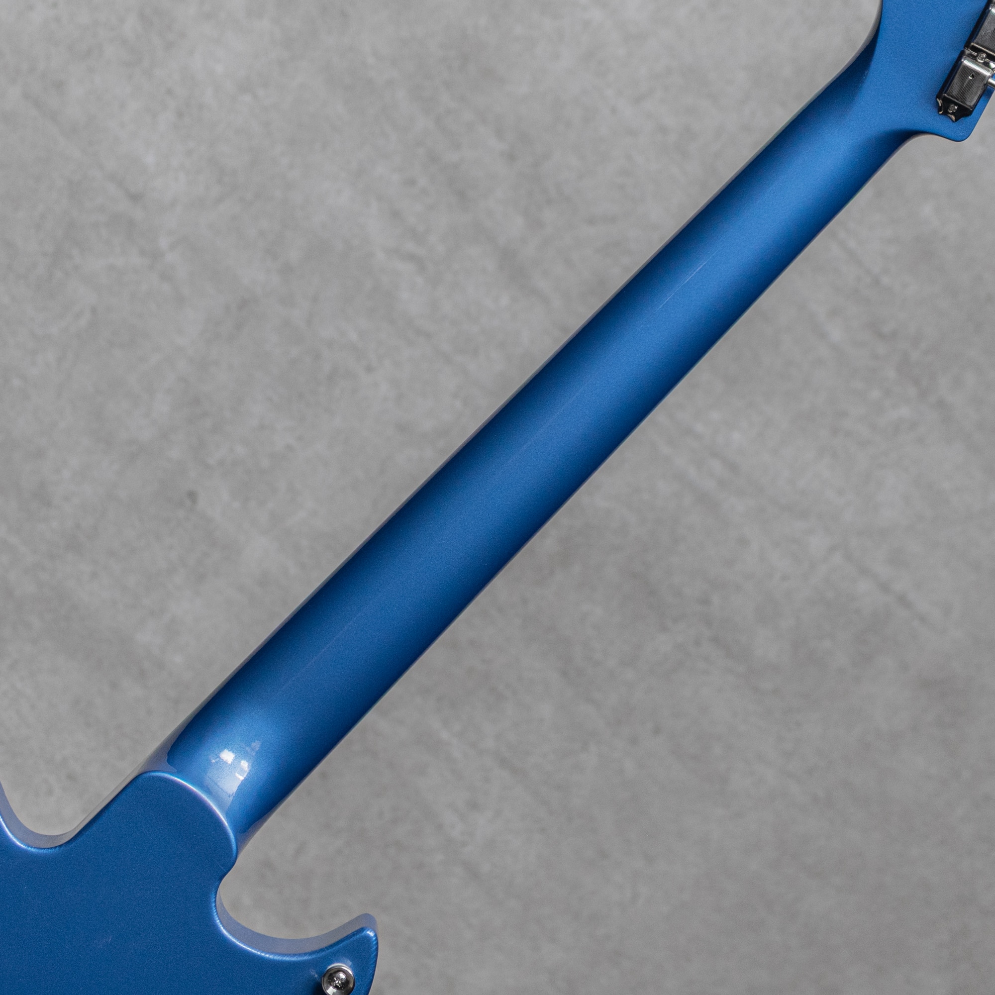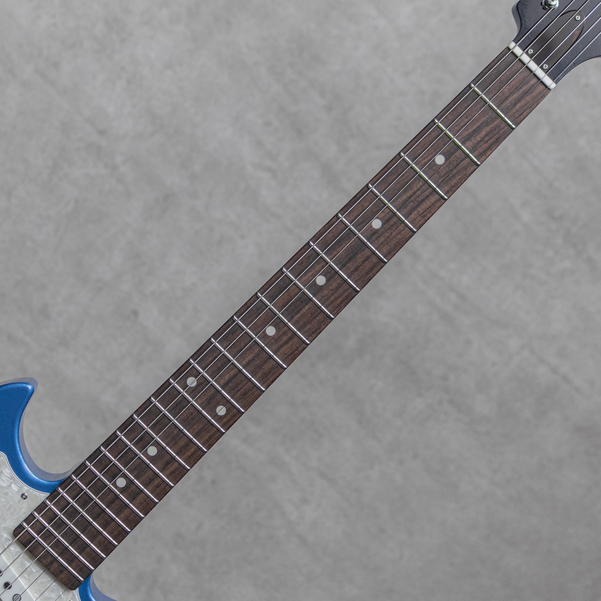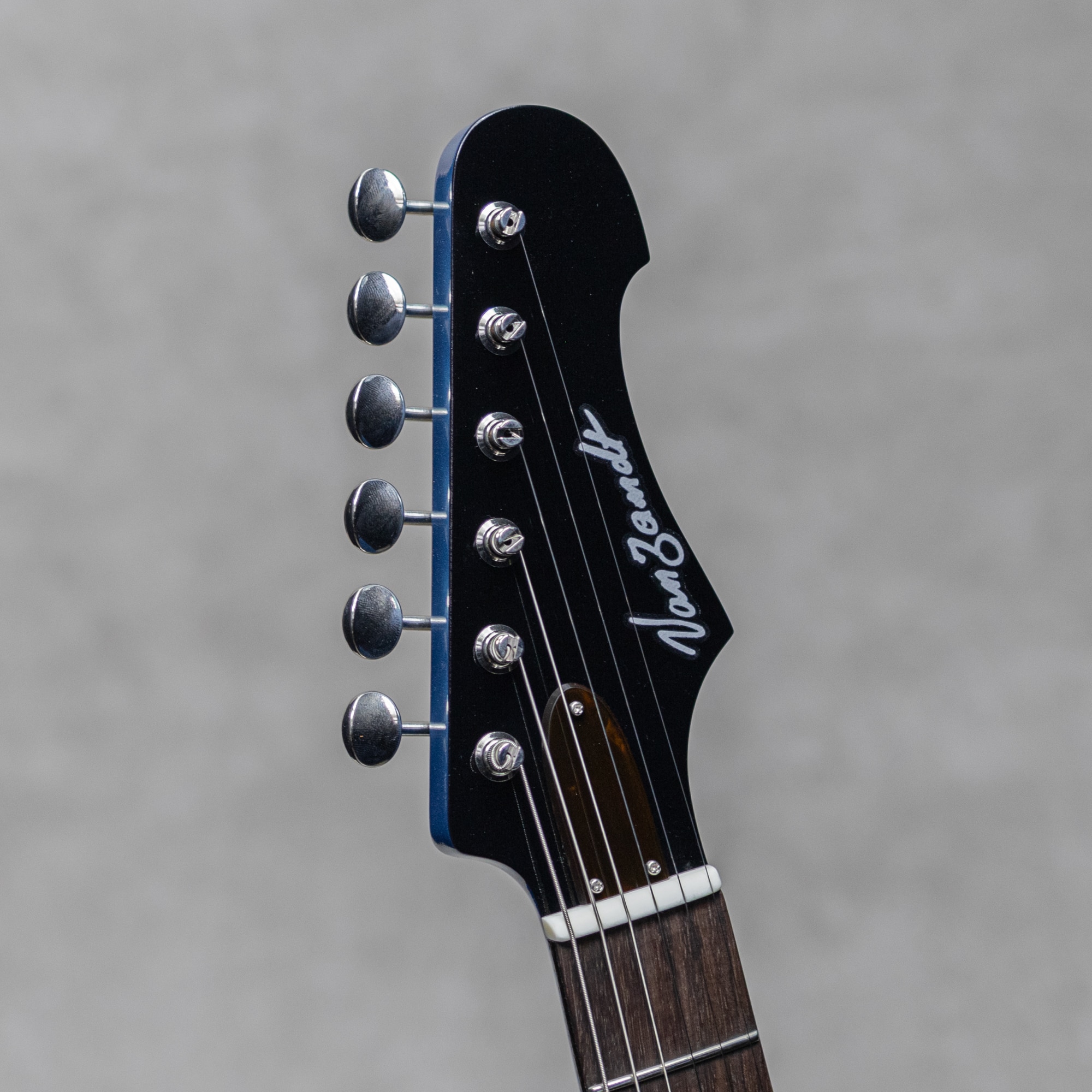“Neo Vintage”を感じさせる”Vanzandt”。数多くのミュージシャンから愛されたテキサス生まれの”Van Zandt”ピックアップを搭載し、国産の確かな技術で作り上げられるギターは、その価格以上のクオリティを感じずにはいられない実力派ギター。本器は新ラインナップ"Hybrid Series"より"Bronson V "。628㎜スケールのメイプルセットネック、インディアンローズウッドスラブ指板、ヘムロックボディ、ピックアップにはこのモデル専用に開発された70年代ロックテイストを意識した"VZ-V"シングルコイルピックアップ2基搭載。一見トラッドなスチューデントモデルを想起させるアッセンブリながら、セットネック構造の628㎜スケールやスプルースにも近いヘムロック材の採用など、オリジナリティとセンスに溢れたマッシュアップで楽しませてくれるNewモデル。ユニークかつ機能的なスペックを少しビザーリーでレトロ、それでもどこかモダンなルックスに落とし込んだまさに"Neo Vintage"を実感させてくれる納得のデザイン。子気味良くクリスピーに乾いた弾き心地と明るくキレのあるレスポンスながら、ガッツのある出力でまったく軽薄さを感じさせないミッドの太さをしっかりと持ったグッドサウンド。バランス良く軽い取り回しと、心地良い弦のテンションとトルク感でいつまでも弾き続けたくなる完成度。パッと手に取れるカジュアルさを持ちつつ、しっかりとした弾き応えが楽しいがっつりと弾きこんでいいただきたい1本です。