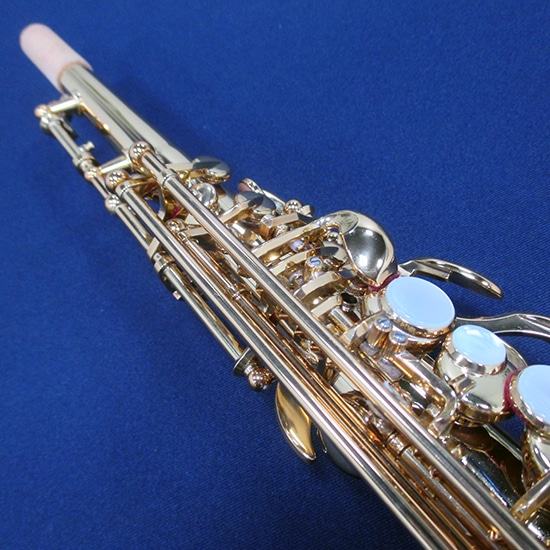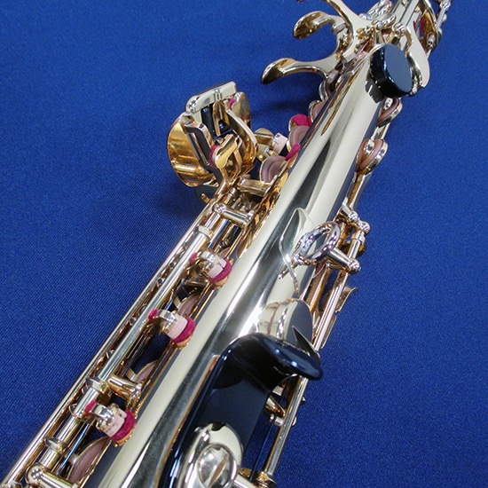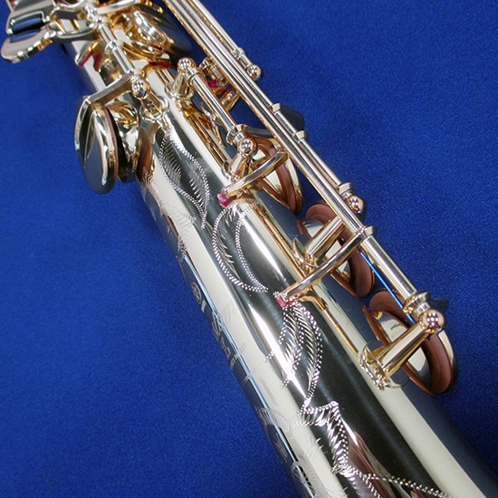 管体、ネックは一体式。管体との接合部が無く完全な1ピース。輪郭のはっきりとした明るい音色が特長のストレートネックモデルです。ネックからベルまでイチョウ型から成型するハンドメイド。1枚の板のみで製作された管体が持つその自由な吹奏感と鳴りは特にジャズシーンで活躍すること間違いなしです。
