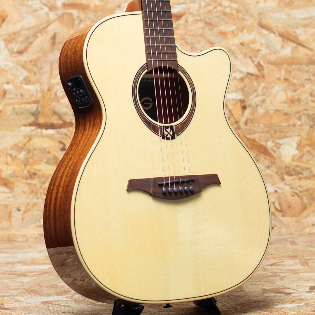 Tramontaneギターは、フランスのエスプリを感じさせるシャープな美しさと職人技をあわせ持つLAG Guitarsの代表的モデルです。 厳選された美しい木材に始まり、乾燥から組み立て、装飾など細部に至るまでこだわりを持ったこれらのギターは、フランスの国境を越え、世界中で脚光を浴びています。 T88ACE は、すでに名を馳せているT88シリーズの主力となるモデルです。要求の厳しいミュージシャンのニーズを満たせるよう最高級のエングルマン・スプルース・トップとグロス仕上げを採用し、バランスの取れた順応性の高いトーンを実現するオーディトリアムのボディ形状を採用しています。