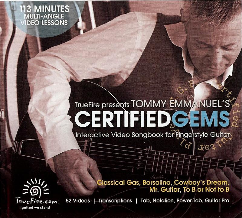 トミー・エマニュエルのコンサートでの定番で非常に人気の高い5曲を選び、トミー自身が丁寧に解説。全113分。いずれの曲も「パフォーマンス」と「ブレイクダウン」に分かれており、最後まで完奏したあと、1曲を幾つかのパートに分けて順番に弾きながら更に詳細に彼のテクニックやフレーズを解説。幾つものビデオカメラを使ったマルチアングルで撮影されていて、全体の姿だけでなく、右手のアップ、左手のアップ、それに左手を後ろから撮った映像まではっきりと見ることができます。トミーのテクニックの細部まで分かる、こんな教則モノが欲しかったと思っていらっしゃったトミー・ファンも多かったことでしょう。