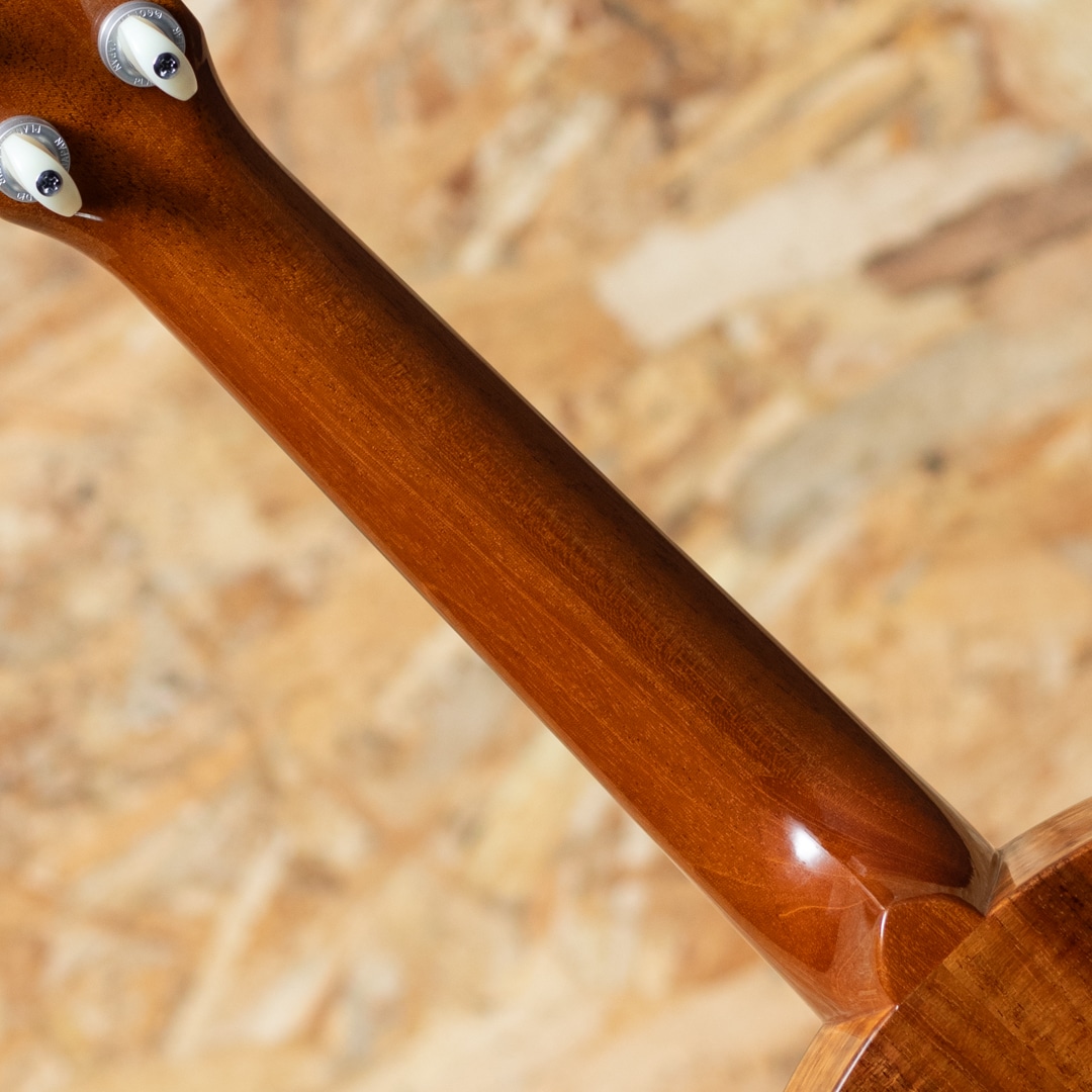 山梨県に工房を構え、オーセンティックなマーチンスタイルのギターやウクレレなど多数の楽器製作をするSakata Guitars。当器はマーチンのStyle-1Kをモチーフに製作された"UC-1K"。2020年代USED品。コンサートサイズボディーにハワイアンコア材を使用。べっ甲セルバインディングをトップに、ロゼッタにもべっ甲セルを装飾した美しい仕上がり。マホガニーネック、指板とブリッジにはハカランダ材を使用しています。ペグはGOTOHのUPTギアペグを採用。やや厚めのあるしっかりとしたグリップ感のあるネックは操作感もよく快適な演奏性を確保しています。音量豊富でコア材らしいコロコロとかわいい響きとハイポジションまでヤセを感じさせず実音がしっかり前に出る印象です。サイド米粒サイズの打痕がございますがそれ以外は大変きれいな状態です。ハードケース付属