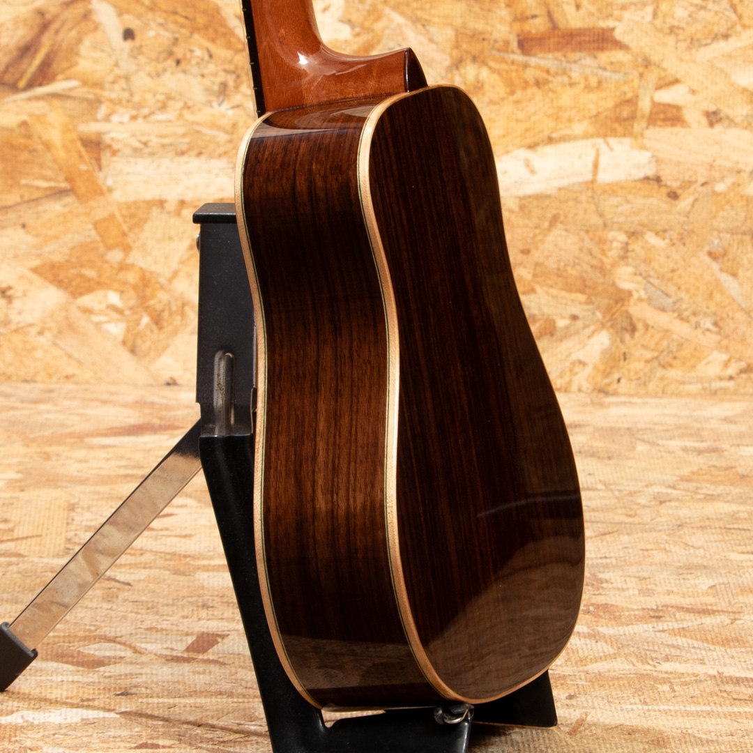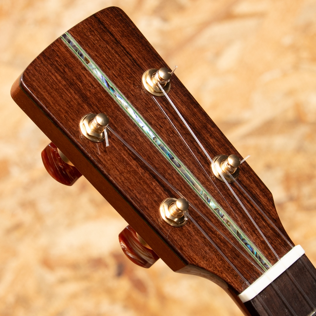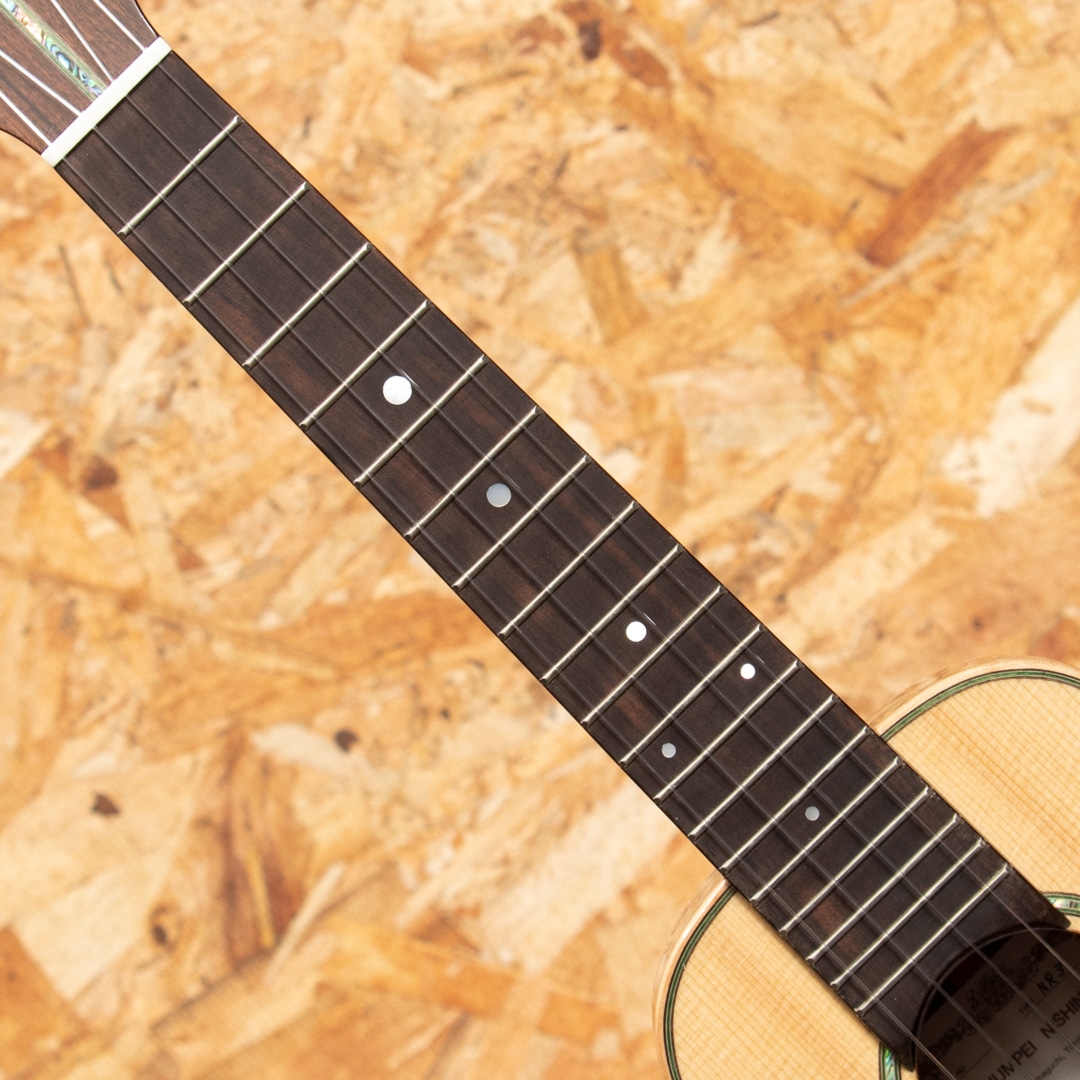 1947年茨城県の日立市生まれ。10代よりギターの製作を始め、1969年には独立して所沢に工房を設立。今や日本を代表する製作家の一人です。本器は西野春平氏が手掛けるベルシェイプコンサートウクレレ”NR3”。ジャーマンスプルーストップ、ローズウッドサイド&バック、ローズウッド&アバロンインレイヘッド化粧板、マザーオブパールドット指板インレイ、エボニー指板、ホンジュラスマホガニーネック、ハカランダブリッジ、アヴァロンロゼッタインレイ、メイプルバインディング、ゴトープラネタリーペグ。クラシックギターにも通ずる材の組み合わせを採用したこちらのウクレレはベルシェイプボディからなる音の太さも相まって非常に豊かで伸びやかな音像と豊かな余韻をお楽しみいただけます。また、ブリッジ形状や氏自らが深碧色に染め上げたパーフリング材によるバインディングの飾りがクラシカルかつ高級感のある趣に仕上がっており、音も見た目も楽しめる一品です。ソロウクレレや1音1音を大切にしたいプレイヤーにおすすめです。ギグケースが付属いたします。