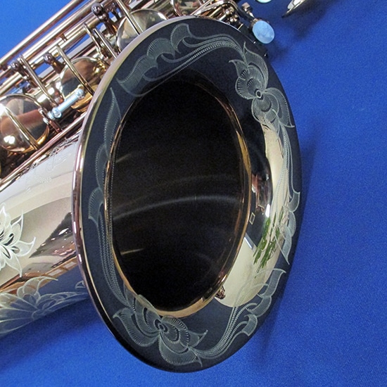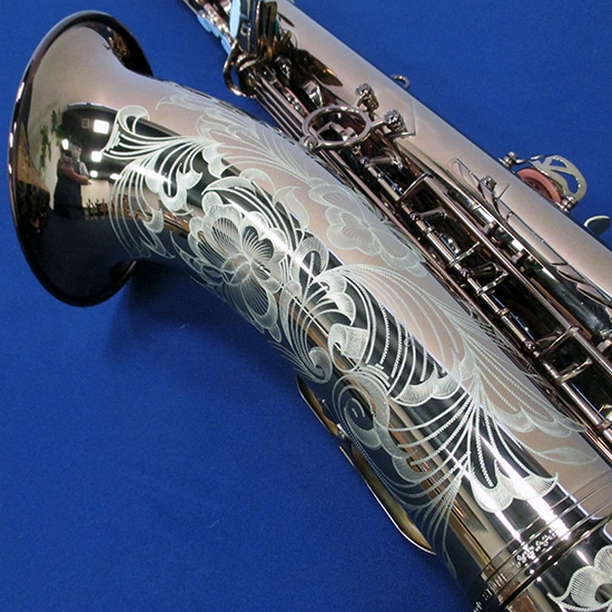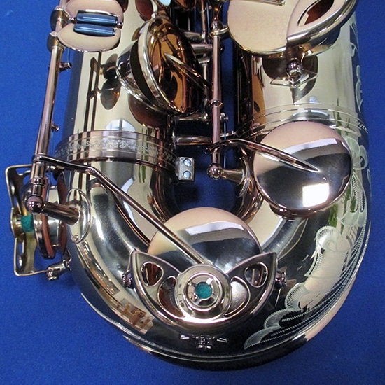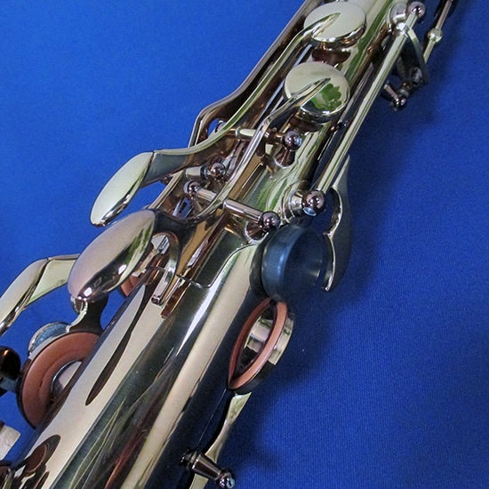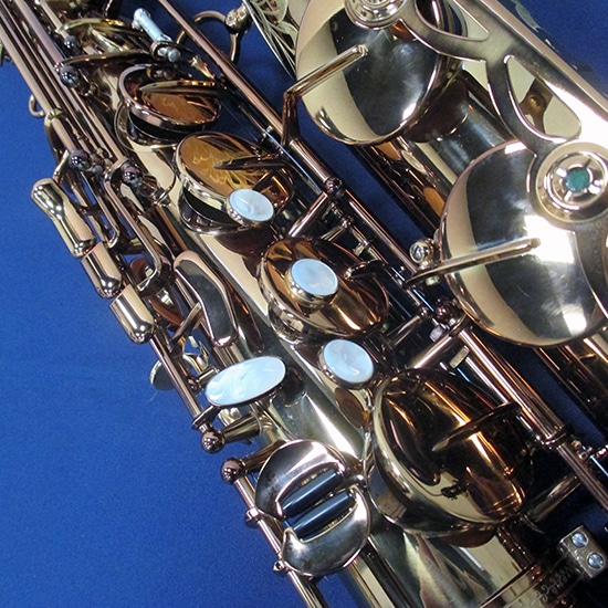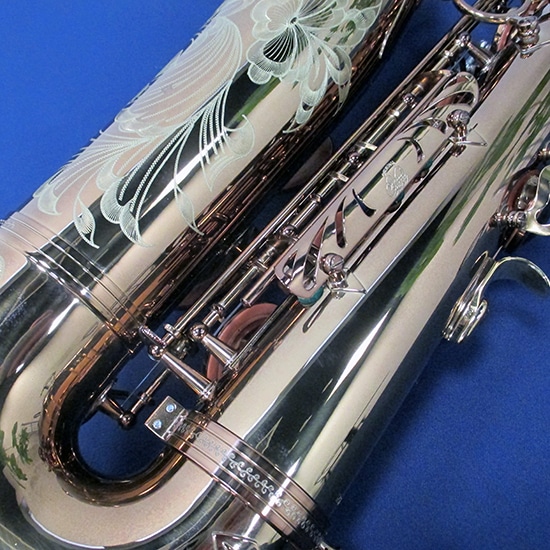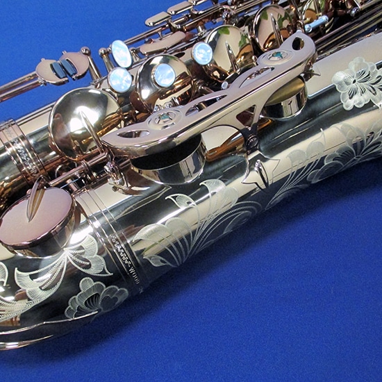 ・ブラス製サムフック:独自の設計により管体とサムフックの接触面を極力抑え、低音域から高音域まで幅広い音量調節が可能となっています。また、サックスではこもりやすい音域のD、E、Fの音質も改善されます。 ■【U字管、2番管接合】 ・現在のサックスは生産性向上や修理時の分解をする為に、通常、接着剤で接合されていますが、ハンダ溶接で接合。ネックから吹き込んだ息をダイレクトにベルまで振動させると共に、振動効率が良くなり、音量も向上させています。 ■【彫刻】 ・熟練の職人の手によって一本一本丁寧に彫られた彫刻は、昔の古き良き時代を彷彿とさせる豪華な彫刻となっています。 ■【ケース・付属品】 ・ケースはGL社製ケースが付属。持ち運びが楽で大切な楽器を衝撃や振動から守ります。 ・その他付属品に、ボディキャップ、スムースパッド、マイクロファイバークロス、ボディスワブが付属。(マウスピース、リガチャー、キャップは付属しません) ●VL(ヴィンテージラッカー)モデル