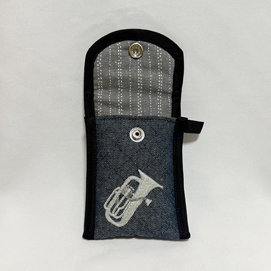 ユーフォニアムマウスピースポーチ 羊毛フェルト刺繍入り<デニム>