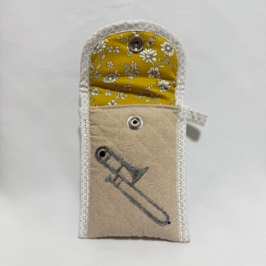 トロンボーンマウスピースポーチ 羊毛フェルト刺繍入り<ベージュ>
