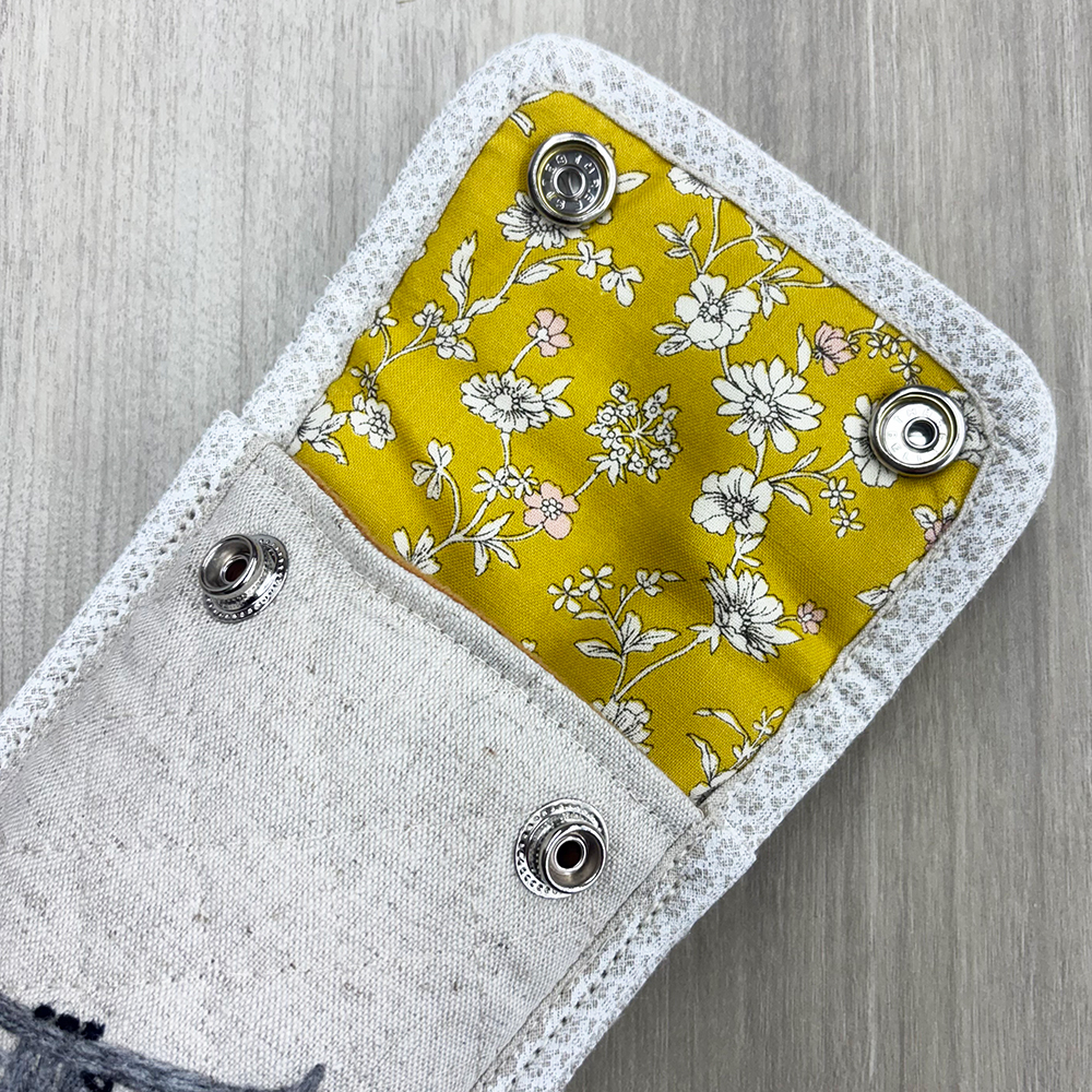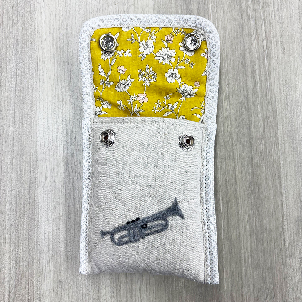 立体的な刺繍がかわいい、ハンドメイドのマウスピースポーチです。