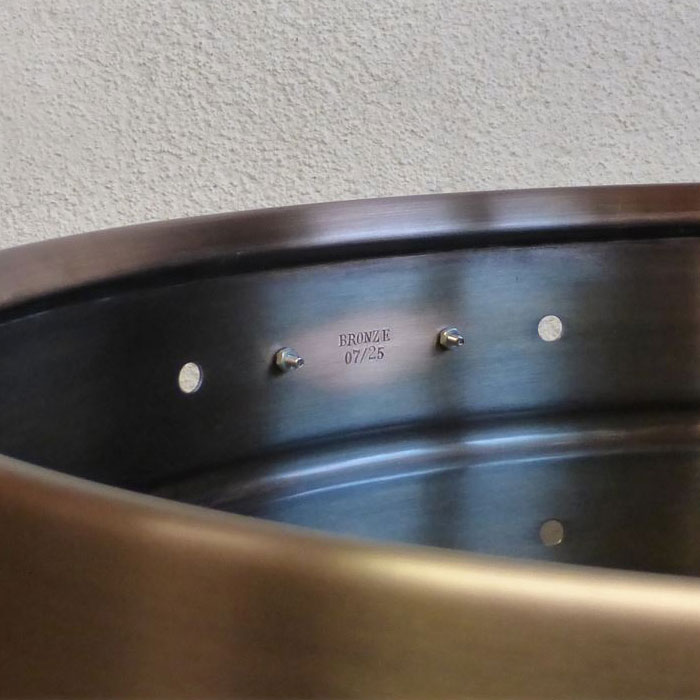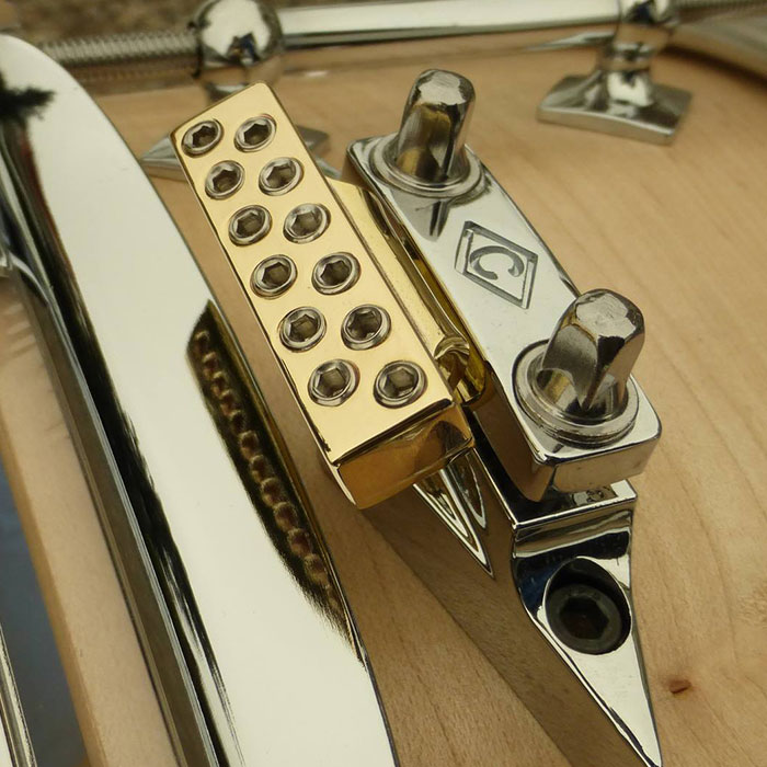 - standard Dresdner type bearing edges (round-over with 5mm brass rod inlay) & snare beds
