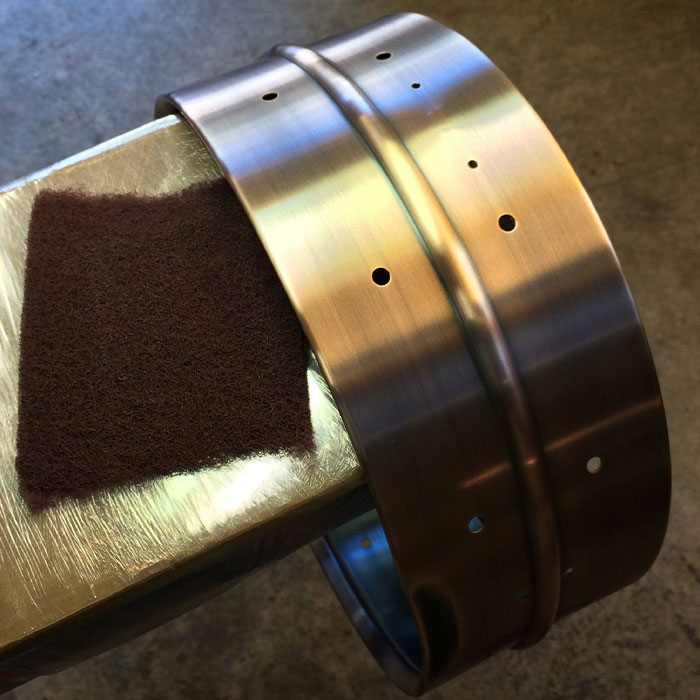 "brushed patina" / oil sealed / hand engraved "Triumphal Scrolls" pattern - hardware finish: