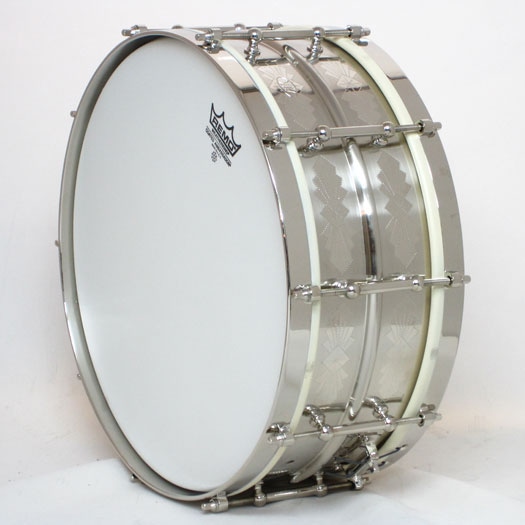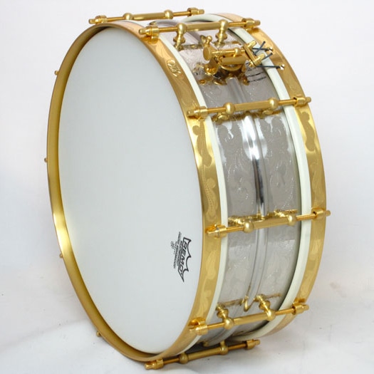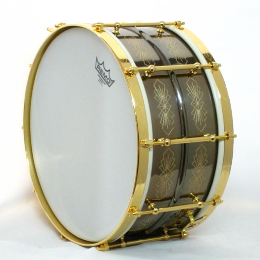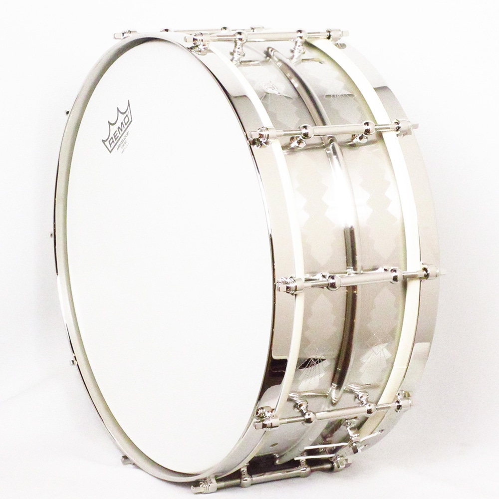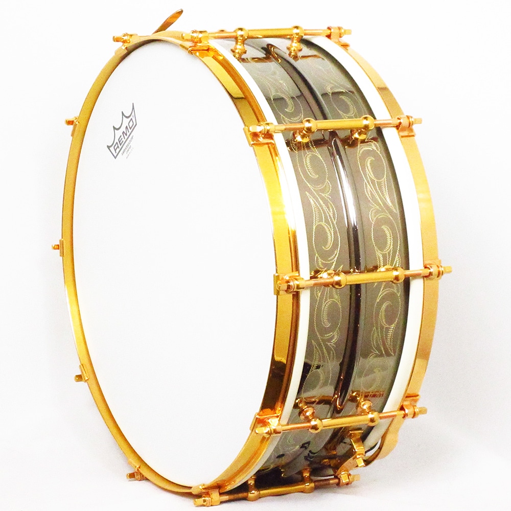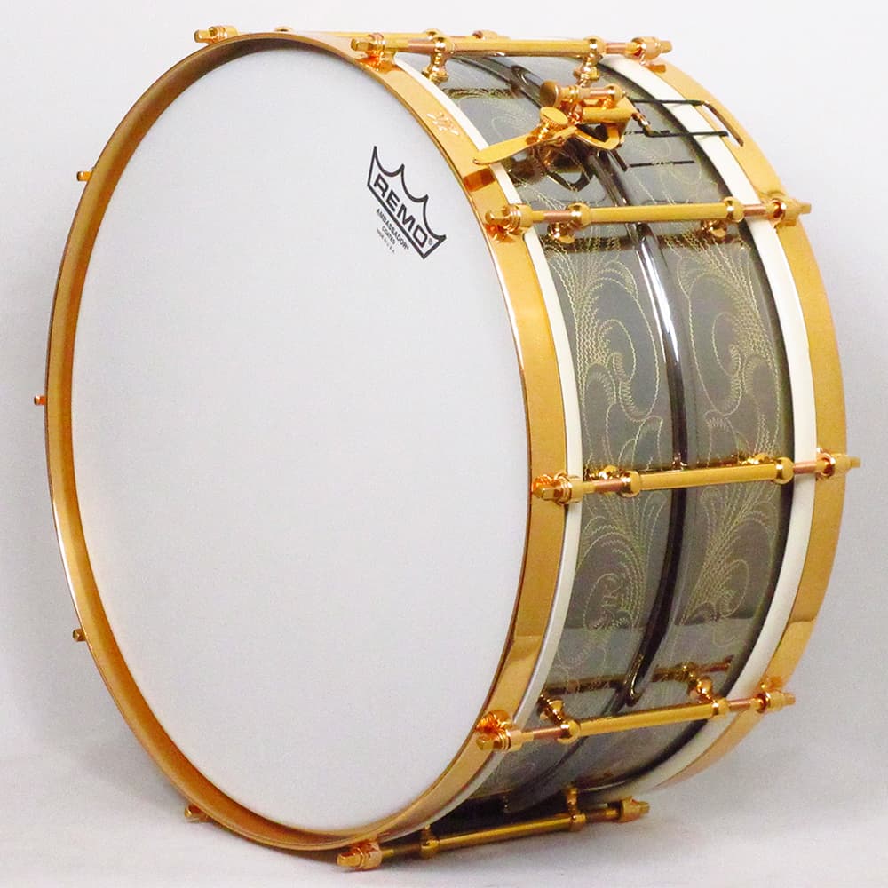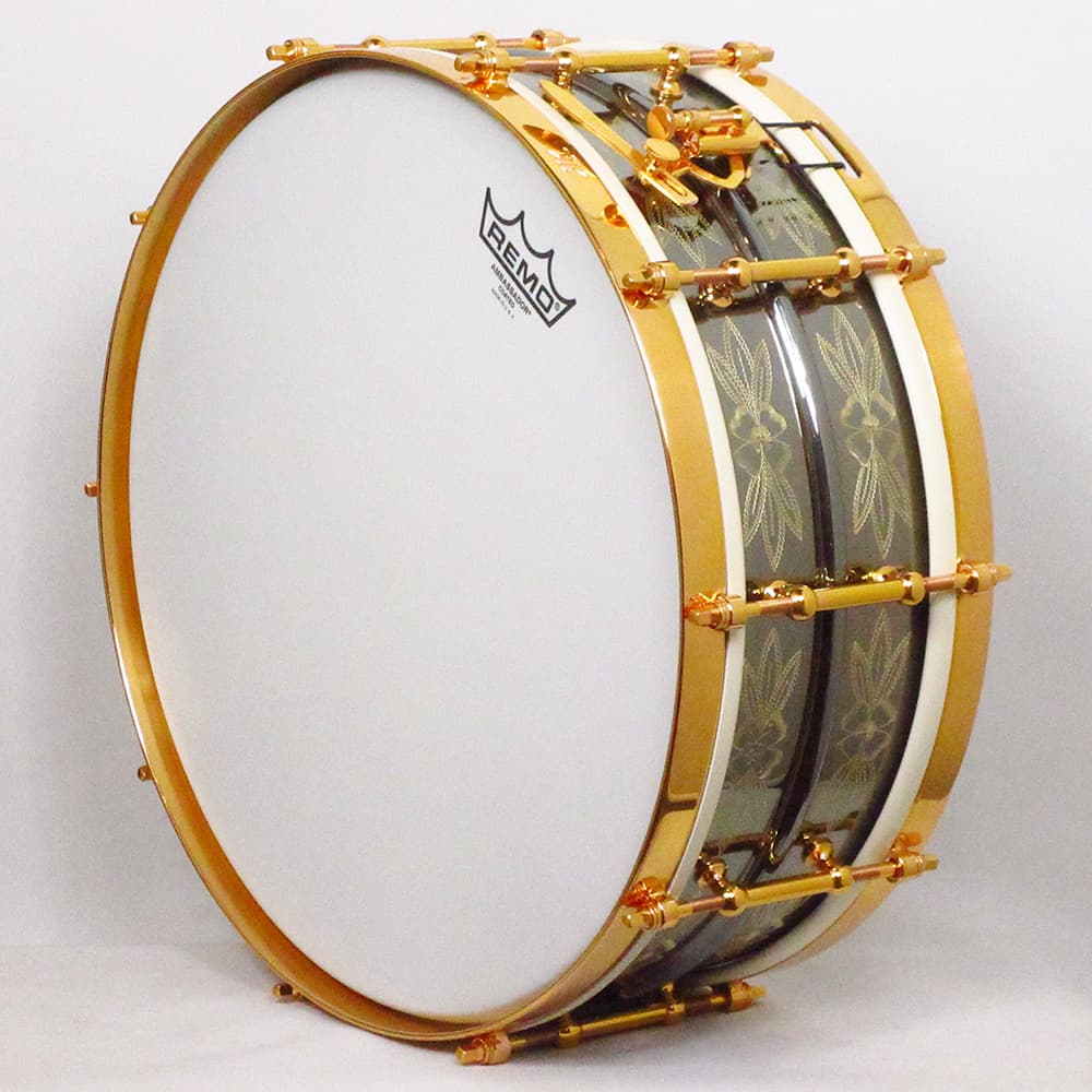 その1年半後にジョニーから1本の電話が入り、それはビジネスの依頼でした。この依頼をきっかけに、ダイヤモンド彫刻を施したニッケルオーバーブラスダイヤモンドシリーズスネアが誕生し、その豪華な仕上がりは世界中のドラマーを魅了し瞬く間に売り切れ、大きなビジネスとなりました。