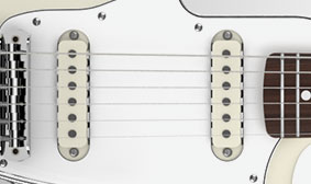 カスタムワウンドのBare Knuckle Johnny Marr Single-Coilピックアップを2基搭載し、バンドサウンドに埋もれない密度の高い、鋭いサウンドを生み出します。4ポジションピックアップスイッチングには、高出力で芯のあるトーンを得るためのシリーズ配線オプションが用意されており、アッパーホーンには、全ピックアップポジション、もしくはポジション4でローを絞りブライトにする、ローエンドロールオフスイッチを装備しています。