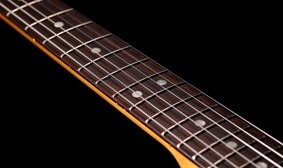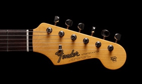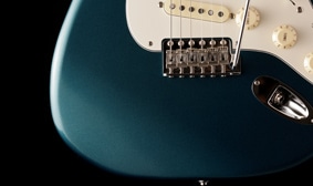 ボディーを覆う”Paradise Blue”はLake Placid Blueが経年変化で深みを増した特有の色味を再現しながらメタリックを強めたこだわりのオリジナルカラー。トップコートのニトロセルロースラッカーは最小限に抑えられ、ヴィンテージのような鳴りとルックスをより早く楽しめる仕様となっています。 本人実機からプロファイルされたネックは7.25インチラディアスのラウンドローズ指板に約41mmのナット幅と薄めの1965 “C”シェイプとなっており、ヴィンテージの握り心地を忠実に再現しつつNarrow Tallフレットによりスムーズな演奏性を実現しています。