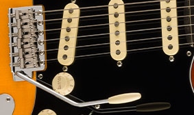 フェンダーの最も革新的なデザインの1つである6点支持トレモロによって、適切なイントネーション、フルアジャスタビリティ、そしてクールなビブラートサウンドへ簡単にアクセスすることができます。ベントスチールサドルとコールドロールドスチールブロックが、最もピュアなフェンダートーンとパフォーマンスを約束します。