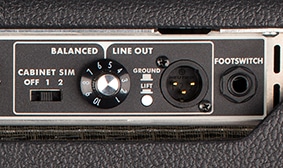 ・バランスの取れたXLRライン出力とインパルスレスポンス (IR) キャビネットシュミレーター、レベルコントロール、グランドスイッチ付き
