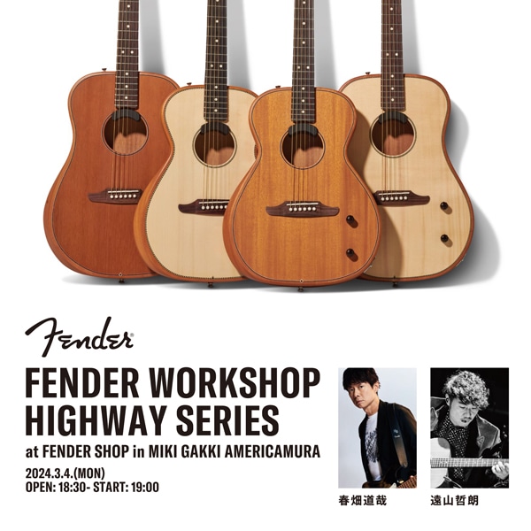 昨年10月に発表されたフェンダー新製品「Highwayシリーズ」を用いたスペシャルライブ&トークイベントに、日本屈指のテクニカルプレイヤーであり、TUBEのギタリストとして活躍する春畑道哉氏と、氏のライブサポートも務めるセッションギタリスト、遠山哲朗氏が登場。