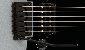 高出力ハムバッカー、12インチラジアスのローズウッド指板とジャンボフレットを装備したMedium Cシェイプネック、ブラックフィニッシュのヘッドストックにブラックハードウェアと言った個性的なスペックを装備