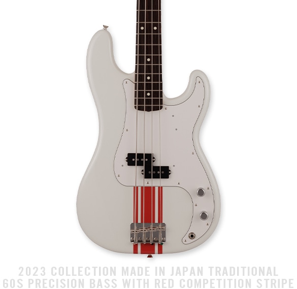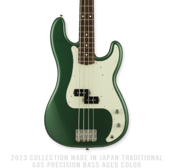2023 Collection, MIJ Traditional 60s Precision Bassはグロスフィニッシュのバスウッドボディに、ヴィンテージスタイルの20フレットを採用し、9.5インチラジアスの”U” シェイプメイプルネックがTraditionalシリーズならではのクラシカルな演奏製を提供します。4サドル式ヴィンテージスタイルブリッジ、そしてTraditionalシリーズのために選定されたオリジナルピックアップはリアルで音楽的なヴィンテージトーンを奏でます。