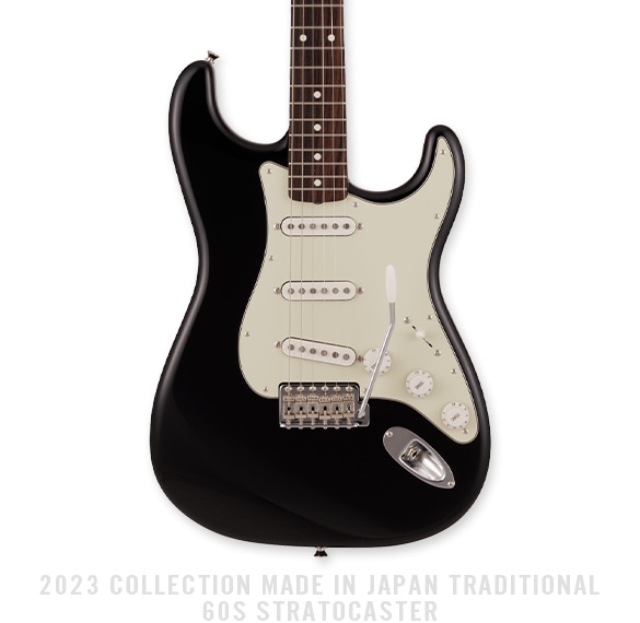2023 Collection MIJ Traditional 60s Stratocasterはグロスフィニッシュのバスウッドボディに、ヴィンテージスタイルの21フレットを採用し、9.5インチラジアスの”U” シェイプメイプルネックがTraditionalシリーズならではのクラシカルな演奏製を提供します。6サドル式ヴィンテージスタイルSynchronized Tremoloブリッジ、そしてTraditionalシリーズのために選定されたオリジナルピ ックアップはリアルで音楽的なヴィンテージトーンを奏でます。細めに設計されたナット幅は日本のプレイヤーにも弾きやすい仕様となっています。