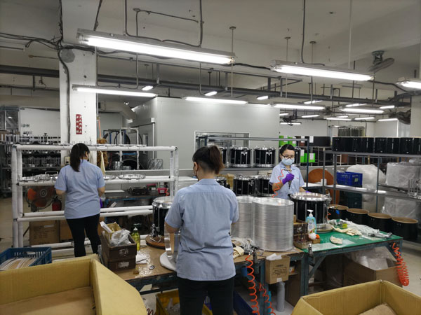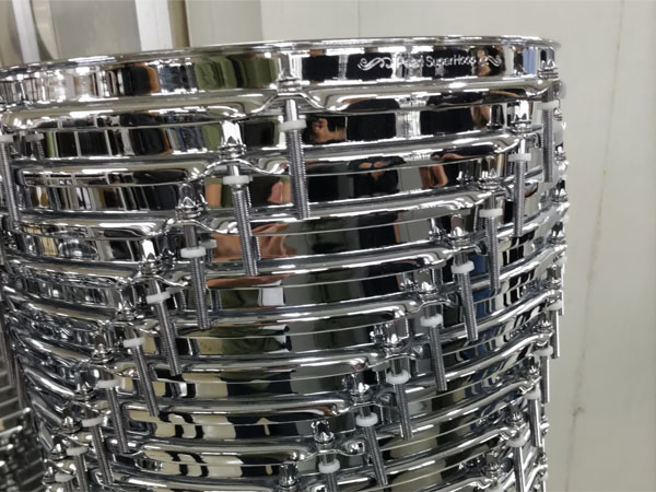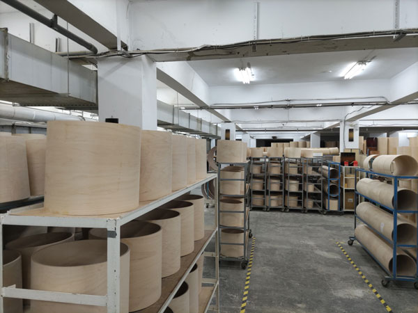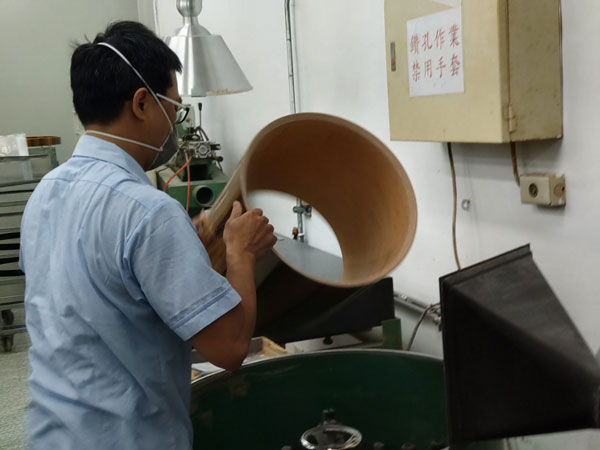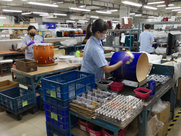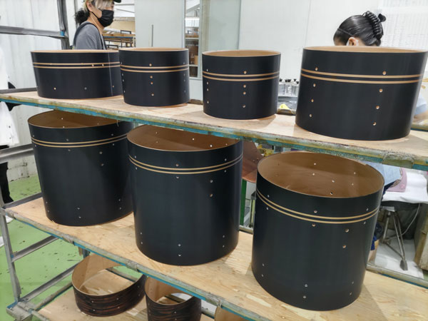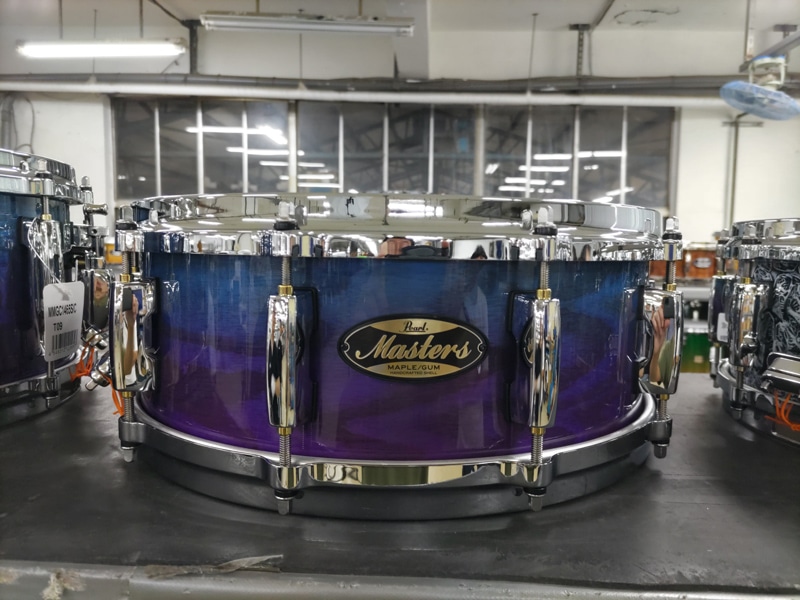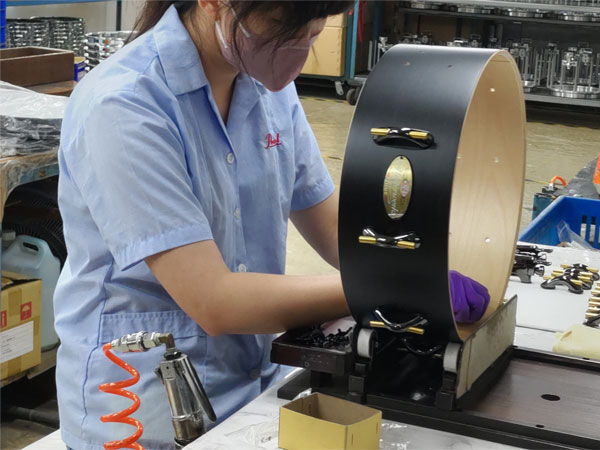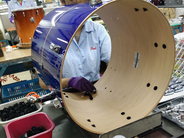 こちらの台湾工場では、LM系ドラムの他、コンサートドラム、マーチングドラム、フルートまで製造。ドラムはミドルクラスから上位機種までがこちらの工場にて製造されています。