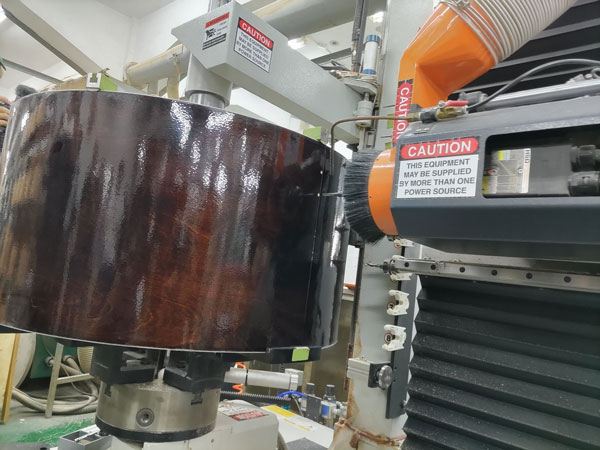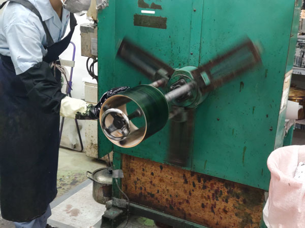 上塗り後もさらに専用機械にてバフ掛けをして光沢を出していきます。