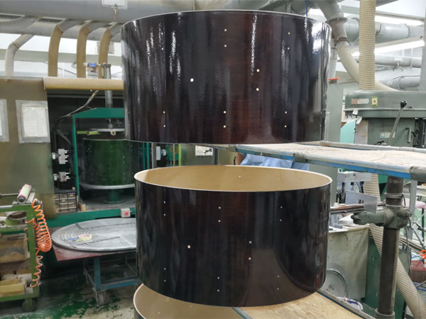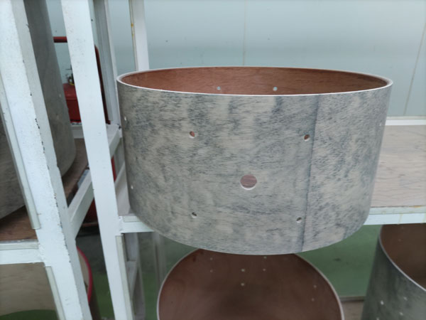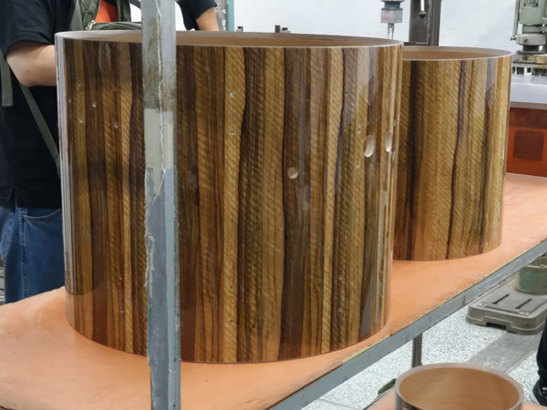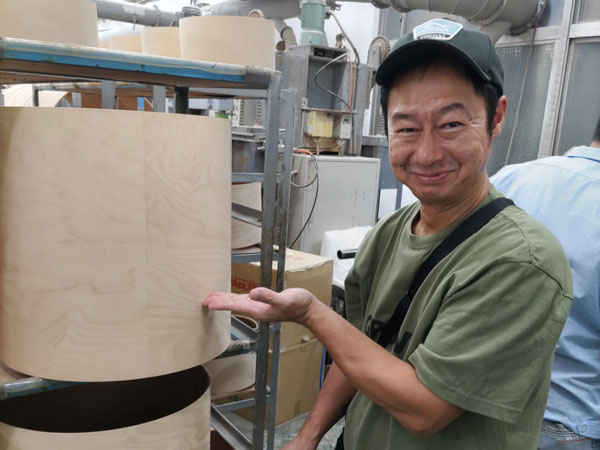 ドラムはご存知の通り丸い形をしています。元は平らな木材(合板)なのですよ。