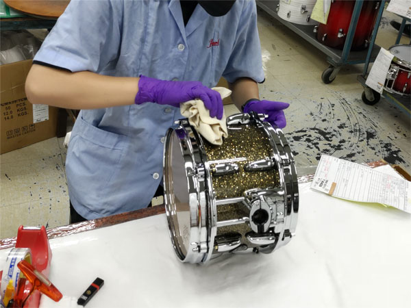 今まであらゆるドラム工場を見学してきましたが商品の工場の規模、従業員の数、完全分業制による徹底した商品管理、検品、チェックの精度はさすが『世界のパール』という感じで改めて感動しました。