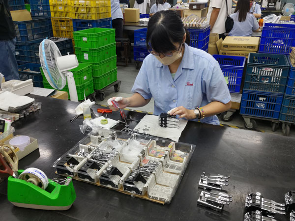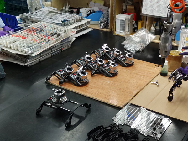オプティマウントの組立てやラグナットの取り付けなどこちらの工場にて完全分業制にて行っております。