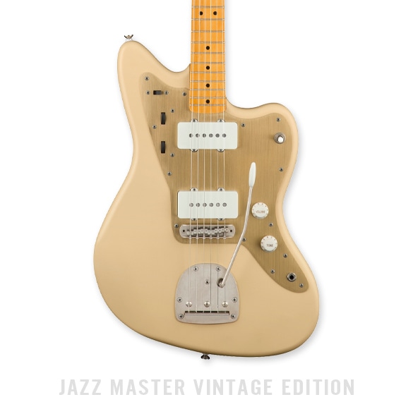 どんなプレイヤーでも楽に演奏できるスリムで快適な「C」シェイプネックをはじめ、この記念モデルには洗練されたプレイヤーフレンドリーな仕様が凝縮されています。ヴィンテージスタイルのチューニングマシン、そしておなじみのフェンダートーンを響かせるアルニコ5マグネットを備えた、フェンダー設計のシングルコイルピックアップを搭載しています。エイジド加工されたクロムハードウェア、ヴィンテージカラーのメイプルネック、サテン仕上げのこのモデルは、Squierが誇るこれまでの数々の名機のレガシーを称えています。