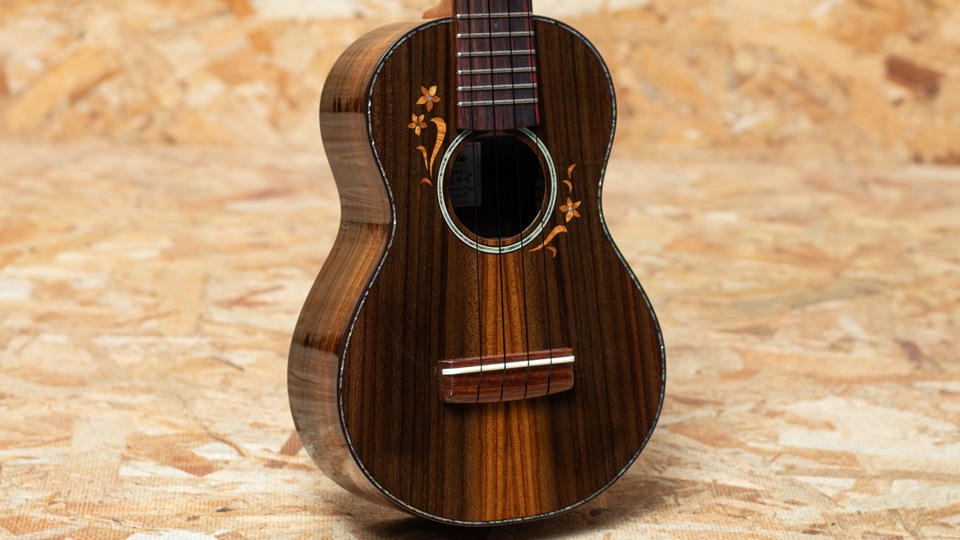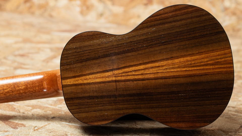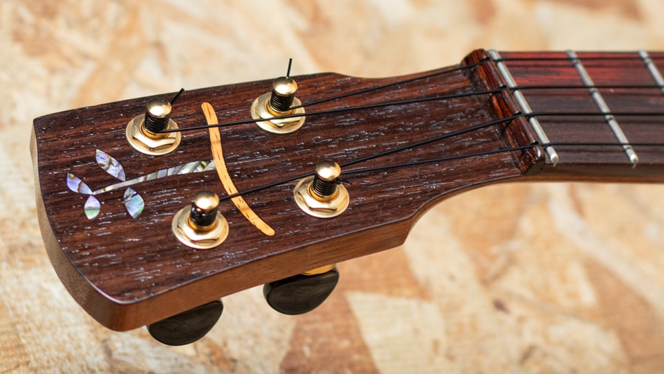 響かせるのが難しいとされるオールローズウッドボディですが、本器では木材の質量や厚みが職人ならでは感覚で丁寧に調整されており、重たくなりすぎず、芯のある音にウクレレらしい軽快さ・甘さ・深みが同居する絶妙なバランスに仕上がっています。また、一般的なコンサートネックよりわずかに長めのスケールを採用することにより、安定感のあるサウンドと高い演奏性を両立。多様な演奏スタイルにフィットする設計となっています。