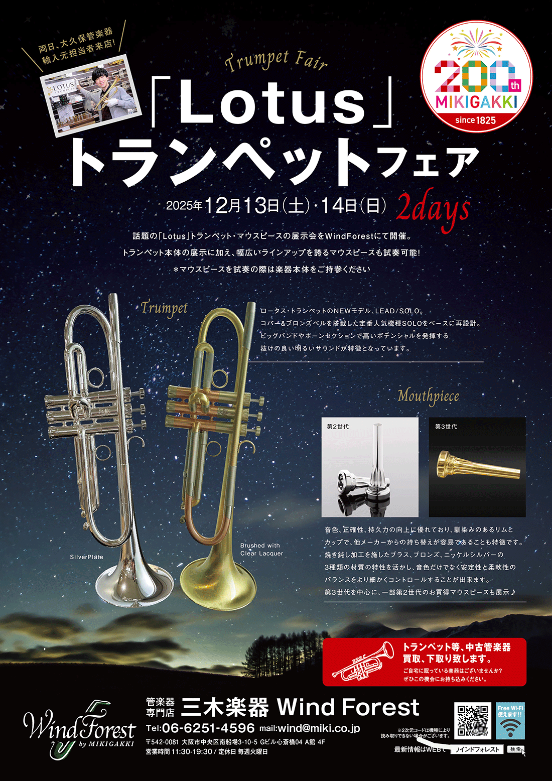 両日とも輸入元大久保管楽器の中村さんがご来店。楽器の詳細やマウスピースのフィッティングについてもご案内いたします。