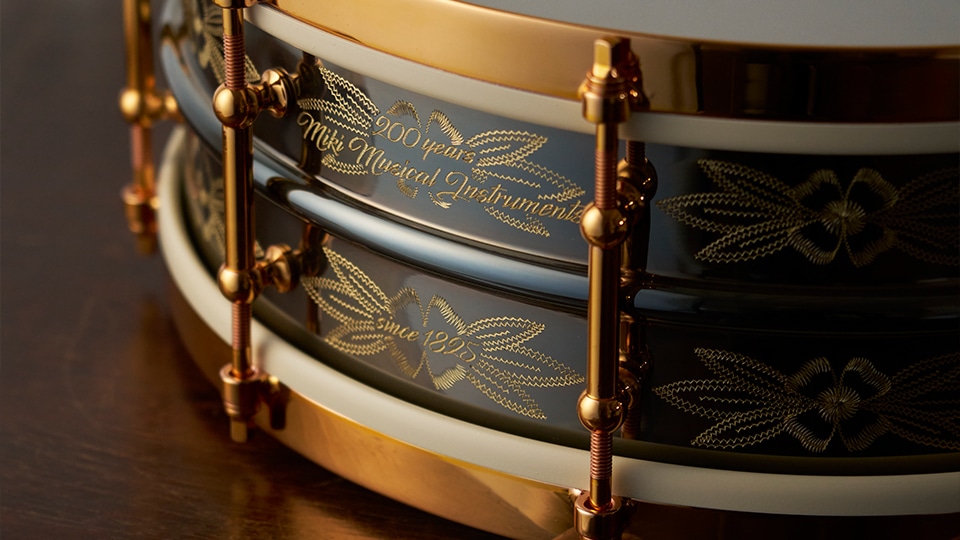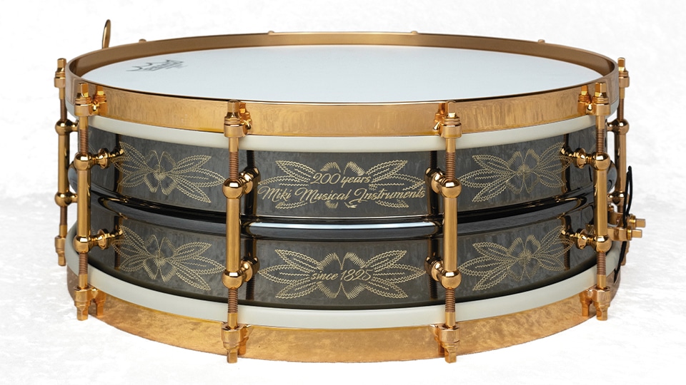 AK Drums Black Beauty Model / GunMetal Hand Engraved "flower" Pattern 14"x5" Miki Musical Instruments 200TH ANNIVERSARY