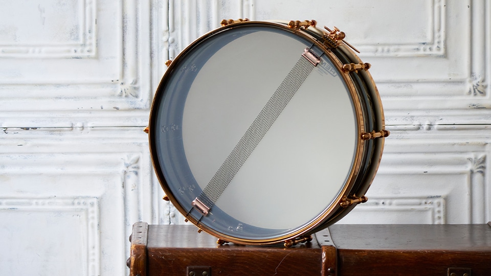 0.8mmのブラスシェルを採用し高い剛性を可能にしています。3mm厚のソリッドブラスフープを搭載することにより、シェル本来の持ち味を最大限まで存分に引き出し、ブラス特有の華やかさを露呈させます。またサイドヘッドが共鳴しワイヤーを振動させるまでの一連の流れに滞りはなく、ピアニッシモからフォルテッシモまで全てその通りに奏でます。
