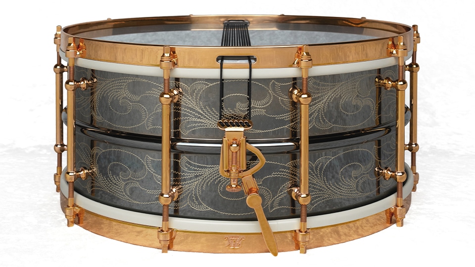 Ludwig社の名器「Black Beauty Deluxe」の”scroll”デザインをイメージした手彫り彫刻が施されており、まさに芸術品といえる1台に仕上がっております。