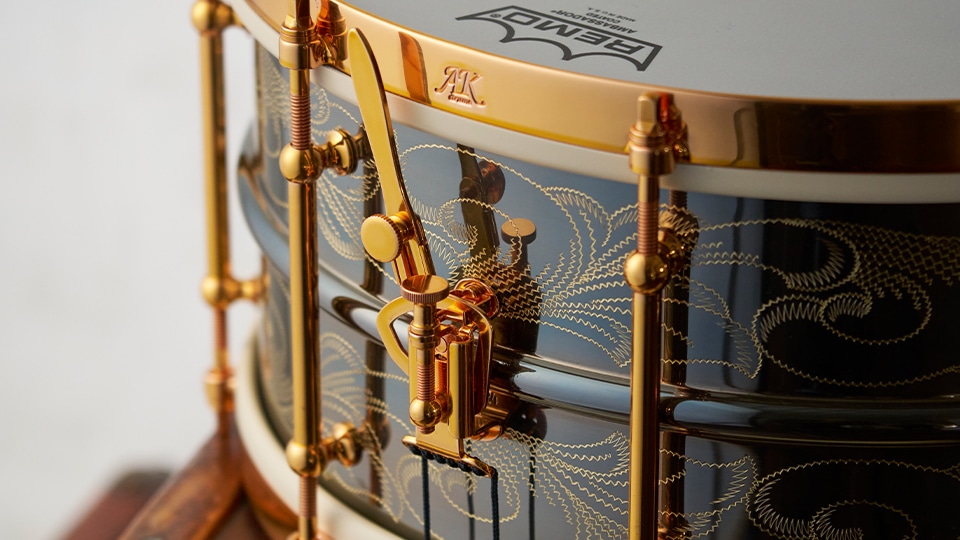 Craviottoで数々のコラボレーションモデルやアニバーサリーモデル、Ludwig 100周年記念モデルのゴールド・トライアンファルスネアドラムにも携わり成功を収めたAK drums。主にブラスやコパーといったメタルマテリアルを巧みに操る「エイドリアン・キルヒラー氏」は、ハイエンドクラスのメタルスネアを生み出します。