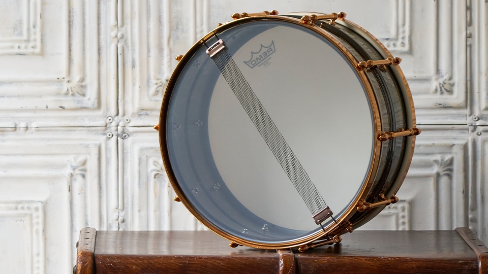 0.8mmのブラスシェルを採用し高い剛性を可能にしています。3mm厚のソリッドブラスフープを搭載することにより、シェル本来の持ち味を最大限まで存分に引き出し、ブラス特有の華やかさを露呈させます。またサイドヘッドが共鳴しワイヤーを振動させるまでの一連の流れに滞りはなく、ピアニッシモからフォルテッシモまで全てその通りに奏でます。